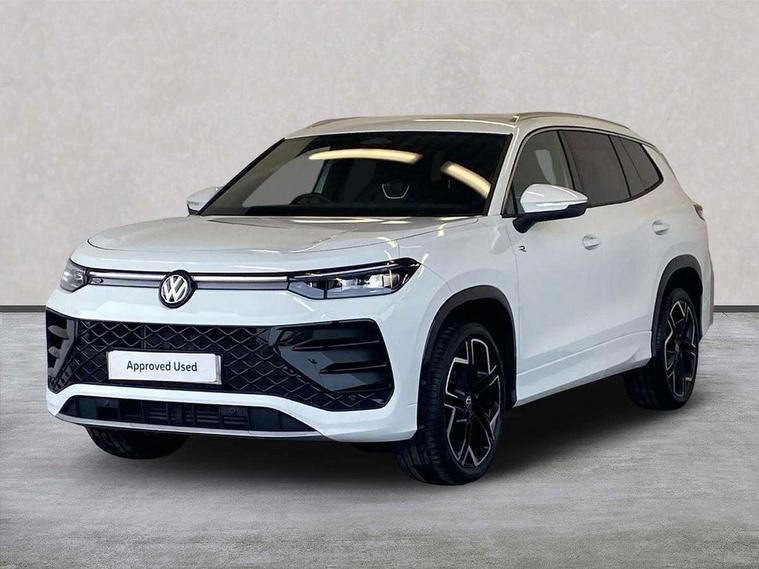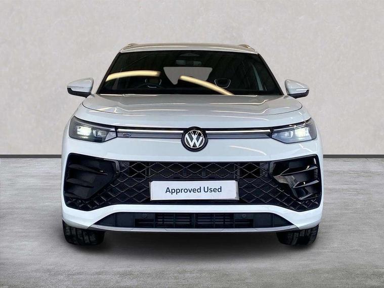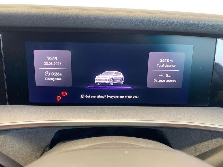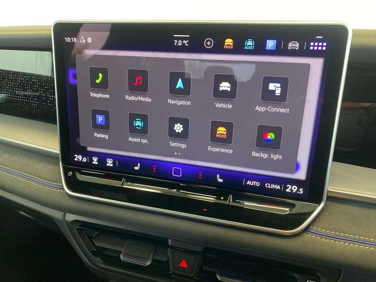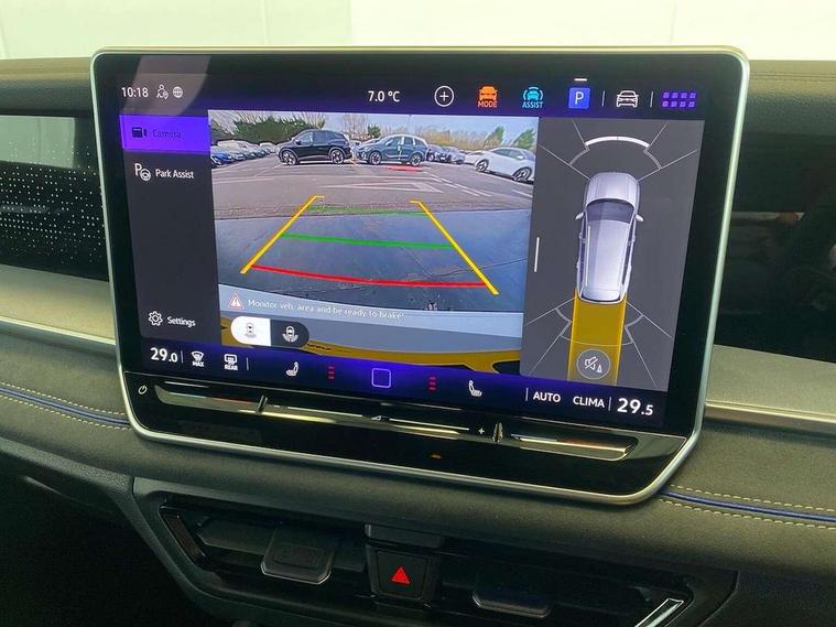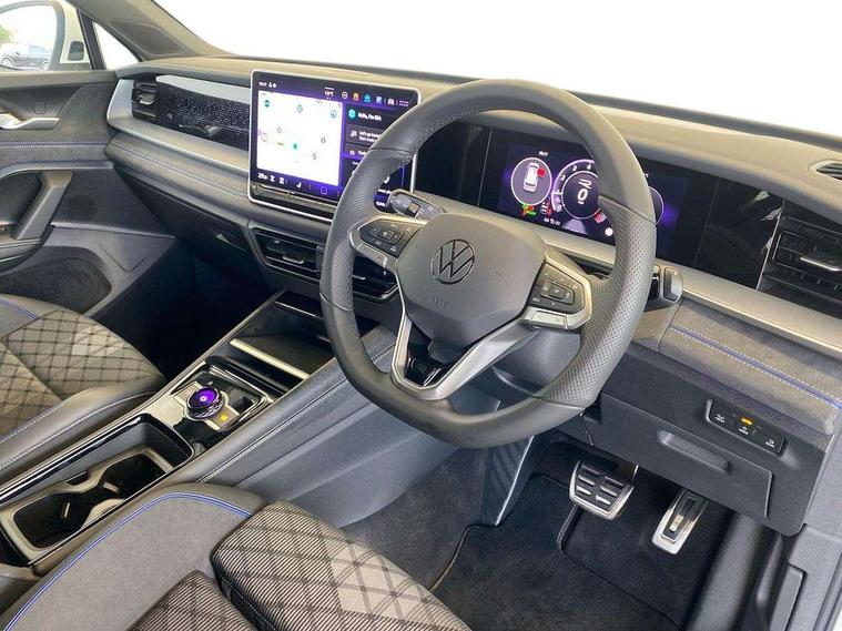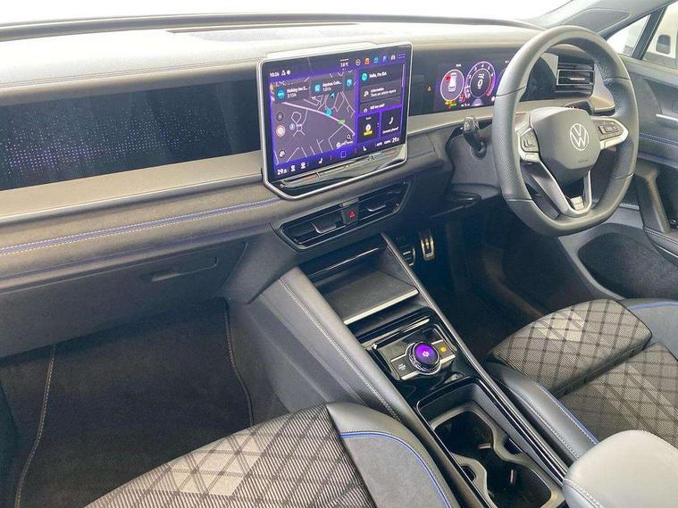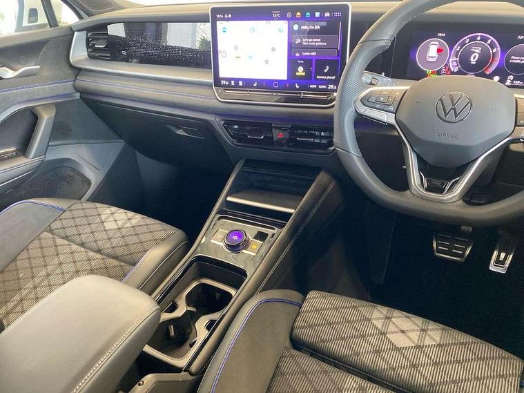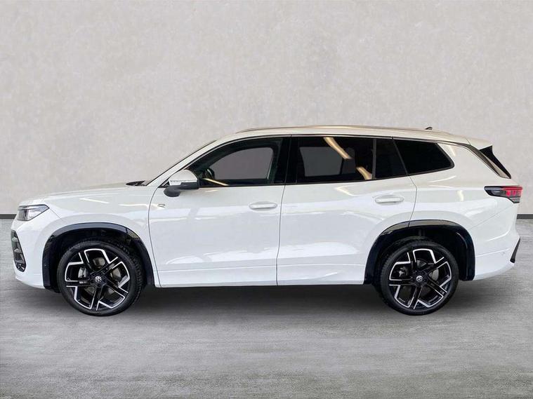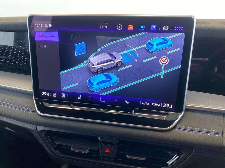 Adaptive cruise control (ACC), Digital Cockpit Pro - 10.25" high resolution dash display screen with customisable menus and information, Driver alert system, Driver attention monitoring system, Driving profile selection, Dynamic road sign display, E-Sim card for online connectivity, Easy Open and Close Electric tailgate with virtual pedal activation, eCall emergency call system, IDA voice assistance with ChatGPT, Lane change system, Side assist, Rear traffic alert and Exit warning system, Lane keeping system, Multifunction front facing camera, Navigation system, Oncoming vehicle braking when turning including swerve support, Park assist plus with park distance control, Power assisted steering with speed sensitive, Sports steering system, Start/stop system with regenerative braking, Voice activation spoken voice commands for telephone and navigation system, Warning signal and warning light for front and rear seatbelts not fastened, Wireless App-Connect, Front shock absorption G01, Front wheel drive, 12.9" infotainment display, Digital radio reception (DAB), Diversity antenna for FM reception, Air intake with Chrome trim, Auto dimming interior rear view mirror, Automatic headlight control system, Body colour door handles, Chrome moldings on the side windows, Coming/leaving home lighting function, Dynamic headlight range control with dynamic cornering light, Exterior mirrors convex on the left and aspherical on the right, Heat insulating glass in side and rear windows, High Beam Assist, automatic sensing for switching between dipped and main beam, Illuminated Volkswagen logo in front and rear, Laminated safety glass windshield, heat insulating, LED 3rd brake light, LED headlamps, LED separate signature day time running light, Poor weather light, Puddle lights, Rain sensor windscreen wipers, Rear combination lamps with special signal pattern, Rear fog light on one side, reversing light on both sides, Rear side wing doors, Rear wiper, Reverse activated passenger's door mirror, Sound insulating laminated safety glass from B-pillar backwards 90% tinted, Surround lighting with welcome light, Volkswagen logo in front, illuminated lighting animation with wake up/goodbye scenario and illuminated door handles, 12V outlet in center console rear and in luggage compartment, 12V socket in centre console, 2 USB-C ports in the front, 2 USB-C charging sockets on the centre console in rear, charging capacity up to 45 W, 230V socket in luggage compartment, 3 rear headrests, 3 rear seat bench in 2nd row, backrest split folding with centre armrest and 2 seats in 3rd row of seats, 3 zone air care climatronic with rear air conditioning control panel, 30 colours options interior ambient lighting, Art velours cloth upholstery, Black roof lining, Brushed stainless steel pedals, Carpet mats, front and rear, Centre console with illuminated storage compartment with sliding cover and two drinks holders, Chrome elements on the mirror switch and power window switches and door pulls, Door and side trim panel insert in Art velour, Drivers seat with manual adjustment of seat travel and height and backrest angle with thigh support longitudinally sliding, Flat luggage compartment floor, Front centre armrest, Front massage seats, Front scuff plates in aluminium, Inductive smartphone charging, ISOFIX anchors for child seats on outer rear seats and front passenger seat compatible with i-Size, Leather wrapped multifunction heated steering wheel with paddle shift, Manual height adjustable front passenger seat, Mechanical rear seat release, Power adjustable lumbar support in front, Safety optimised front integrated head restraints, Single front passenger seat, Sports comfort seats in front, Sun visors with illuminated vanity mirrors, Touch control steering wheel, 3 Point seat belts in front with pretensioners, 3 point seatbelts in outer rear with ECE label, Autonomous emergency braking front assist with pedestrian and cyclist monitoring, Driver and front passenger airbag with front passenger airbag deactivation, Electronic parking brake with auto hold, First aid kit with warning triangle and safety vest, Front and rear curtain airbags, Front and rear side airbags, Front centre airbag, Hill start assist, Manual rear child locks, Proactive passenger protection system, Two tone horn, Tyre pressure monitoring system, Alarm with interior protection, Central locking system keyless entry, Decorative material set R-Line, Interior door handle in matte chrome,