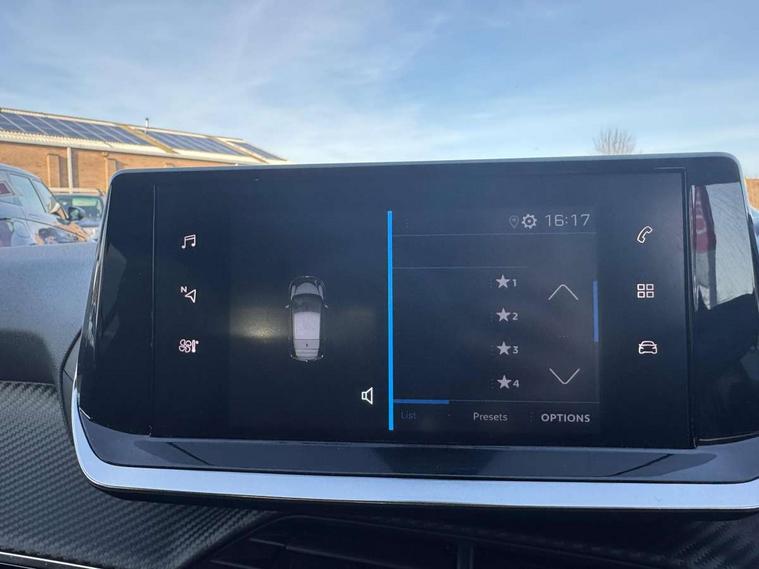 Bluetooth telephone facility, Driver attention warning, Emergency call service, Exterior temperature indicator with ice warning, Lane keep assist, Mirror screen with mirror link, apple carplay and android auto, Multi function trip computer, PEUGEOT i-Cockpit with 3.5" instrument panel display, PEUGEOT i-Cockpit with compact steering wheel, Programmable cruise control and speed limiter, Push button start, Rear parking sensors, Smart phone docking station, Speed limit recognition and recommendation, Start/stop system, 1x USB socket in front, 6 speakers radio with mp3 compatible, DAB Digital radio, Voice recognition for radio, navigation and telephony features, 2 X Rear number plate lights, Automatic hazard light activation upon heavy brake application, Automatic lights, Automatic windscreen wipers, Body coloured exterior door handles, Dark tinted rear side and tailgate windows, Diamond black rear spoiler (roof), Eco LED headlights, Electric front windows + one touch + anti-pinch, Electric rear windows with one touch/anti-pinch, Electrically adjustable, heated and power folding door mirrors, Electrochrome rear view mirror, Follow me home headlights, Gloss black rear cluster connecting strip, Headlights left on audible warning, LED daytime running lights with distinctive tooth design, LED third brake light, Model designation badges front and rear, Nera black door mirror shells, Radiator grille chrome chequered, Rear reversing lights, Rear side wing doors, Rear windscreen wiper triggered automatically in reverse gear, Roof mounted aerial, Roof spoiler, Single exhaust tailpipe, Tailgate with heated rear windscreen and wiper blade, Variable front intermittent wipers, 1/3 to 2/3 split folding rear seats, 12V socket, 3 seat bench in 2nd row, Automatic air conditioning, Driver and front passenger comfort seats, Driver and front passenger seat manual adjustment in longitudinal and back rest angle, Driver seat mechanical height adjustment, Electric power steering with reach and rake adjustable steering column, Front interior light with 2 reading spotlights, Gear shift indicator, Leather steering wheel, Low centre console, Map pockets on the backs of the front seats, Piano keys gloss black plated toggle switches to access main functions of the vehicle, Rear centre headrest, Roof lining - light grey, Seatbelt unfastened on the move audible and visual alert for front and rear seats, Single front passenger seat, Tri material cloth upholstery, 2x Isofix child seat fitting on outer rear seats, 3 rear 3 point seatbelts, ABS (Anti-lock Braking System) with EBD (Electronic Brakeforce Distribution) and EBA (Emergency Braking Assistance), Adaptive driver and front passenger airbags with passenger airbag deactivation function, Child locking functionality on rear doors, Driver/front passenger side airbags, ESP with Hill Assist, Front and rear curtain airbags, Front and rear disc brakes, Front optimised safety headrests and 3 x rear retractable headrests with height adjustable, Front three point retractable seatbelts with force limiters, Manual parking brake, Pedestrians active safety brake, Tyre pressure sensor, Acoustic vehicle alert system (AVAS), Automatic door locking when moving off, Deadlock, Electronic code immobiliser, Remote central locking, Thatcham cat. 1 alarm with anti lift sensor, Carbon effect Dashboard, front and rear door panel finish, 16" Soho diamond cut alloy wheels,