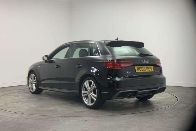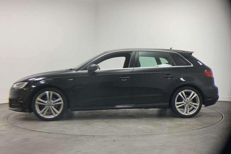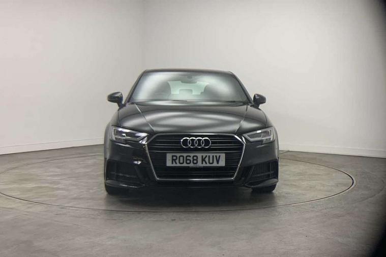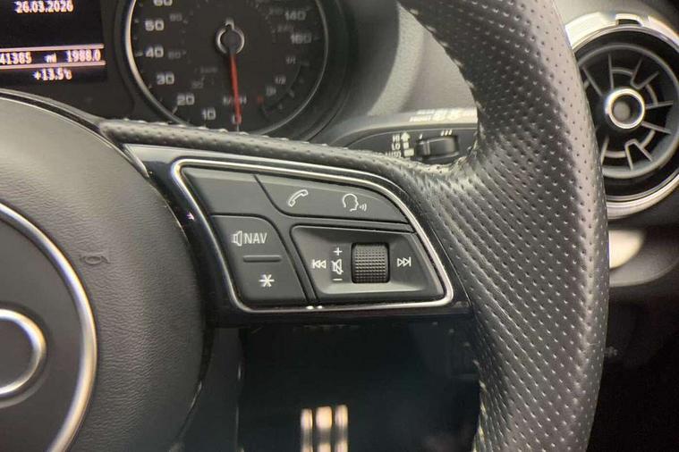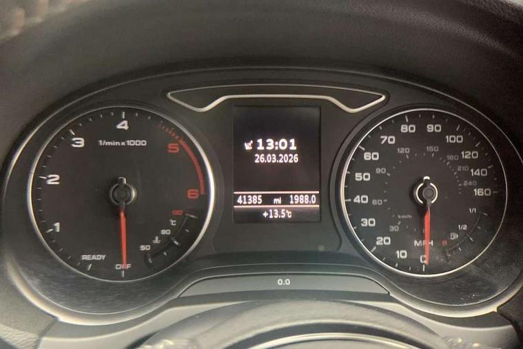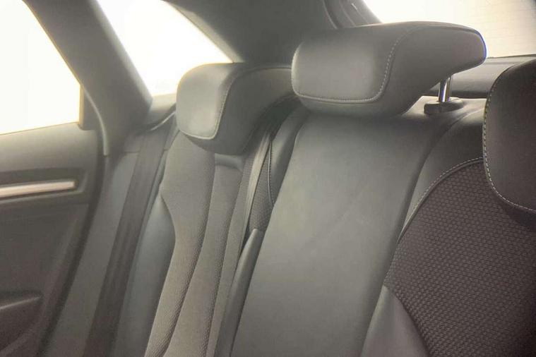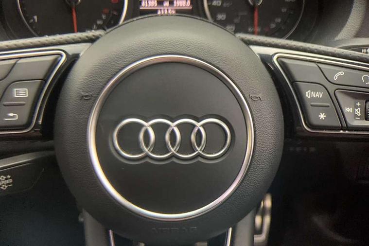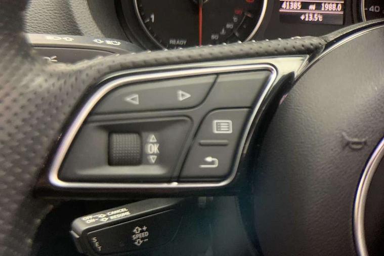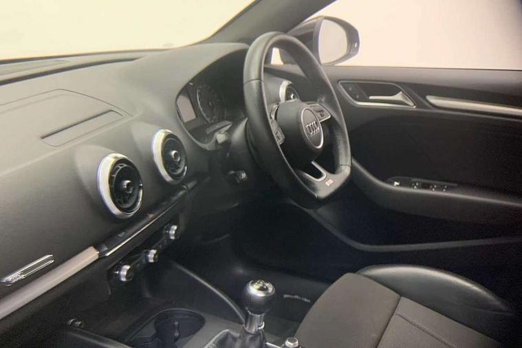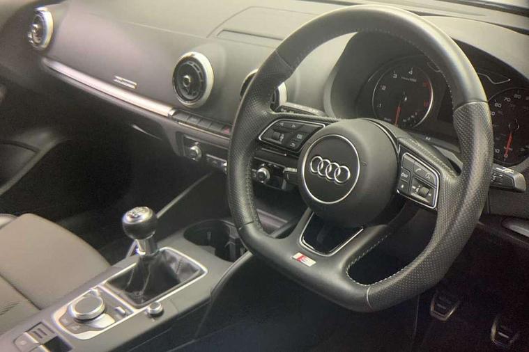 Audi connect, Audi drive select, Audi smartphone interface, Automatic start/stop system, Colour driver's information system display, Electro - mechanical power assisted steering, Mobile telephone preparation - bluetooth interface, SD card based satellite navigation system, Service interval indicator, Speed limit display, Voice control system, Voice recognition for navigation system, Diesel particulate filter, 2 USB interfaces and Aux-In jack, Audi music interface, CD player, DAB Digital radio, MMI radio plus with 7" colour MMI screen and MMI controller, Aluminium window trim, Auto dimming rear view mirror with light and rain sensors, Body colour door mirrors, Chrome exhaust tailpipes, Electric front windows, Electric rear windows, Electrically adjustable and heated door mirrors with integrated LED side indicators, Heated windscreen washer jets, LED daytime running lights, Matt black radiator grille, Rear wiper, S line badges on front wings, S Line body styling with front & rear bumpers and side skirts, radiator grille and rear diffuser insert, roof spoiler, Sport specific side air inlet grille and diffuser insert, 3 adjustable rear headrests, 3 spoke flat bottomed multi-function leather steering wheel, 4 lashing points to secure luggage, Adjustable front centre armrest, Black cloth headlining, Dual zone electronic climate control, Front and rear interior lights with delay, Front sports seats with S embossed logo, Front/rear floor mats, Glovebox light, Height/depth adjustable steering column, Illuminated door sill trims with S logo, Isofix child seat preparation for front passenger/outer rear seats inc passenger airbag deactivation, Stainless steel pedals, Storage compartments in doors side trims, centre console and under front drivers seat, LED interior light pack - A3/RS3, Non smoking pack - A3, Storage and luggage pack - A3/RS3, 3 point seatbelts on all seats, ABS/EBD, Active bonnet, Active front headrests, Airbags - front driver/passenger, front & rear side, curtain, drivers knee, ASR, EDL, Electromechanical parking brake, ESC - Electronic Stability Control + traction control, Front passenger airbag deactivation, Hill hold assist, Manual rear child locks, Multi-Collision braking, Seatbelt warning, Tyre pressure warning, Warning triangle and first aid kit, Anti theft alarm, Anti-theft wheel bolts, Remote control central locking, Thatcham category 1 alarm + immobiliser, Aluminium air vent surrounds, Aluminium trim elements, Matt brushed aluminium inlays,
