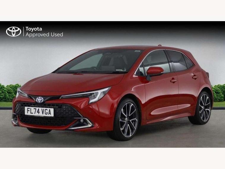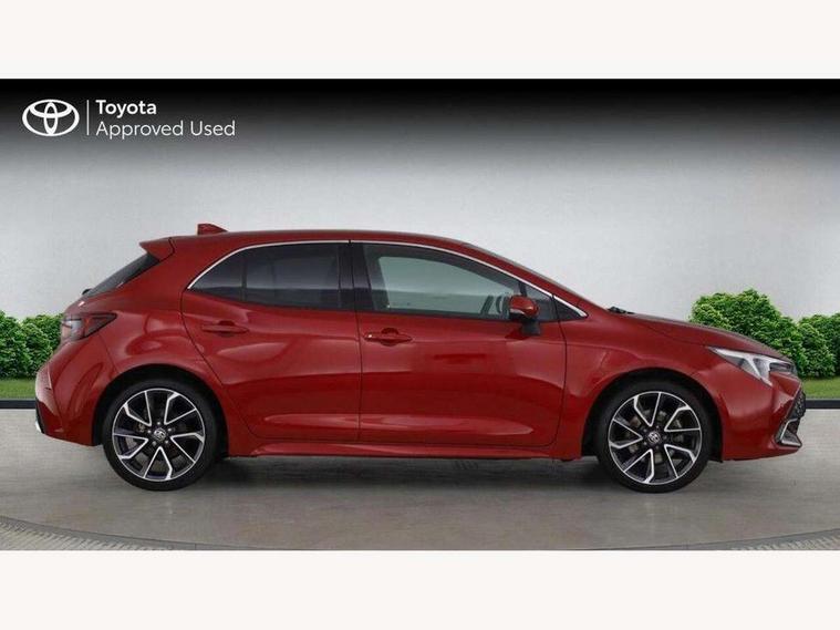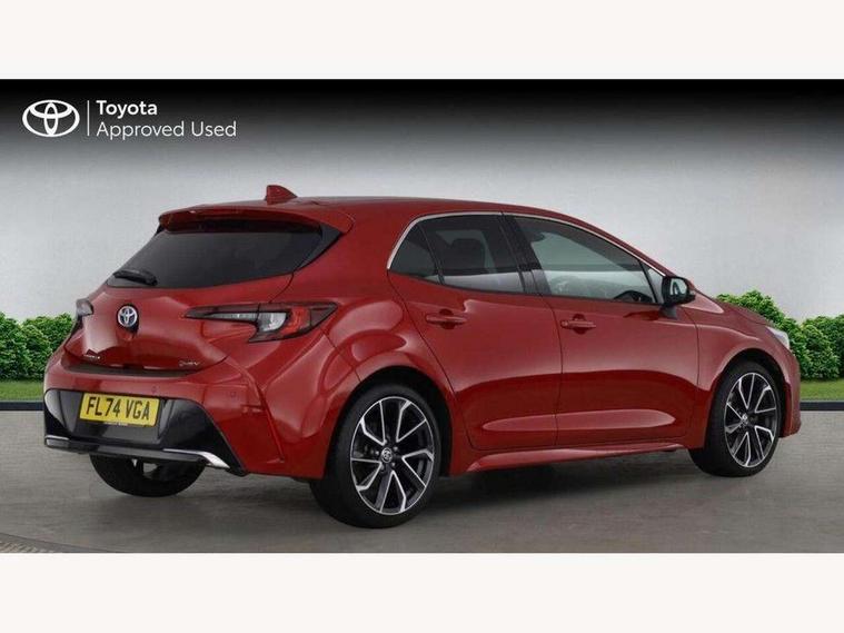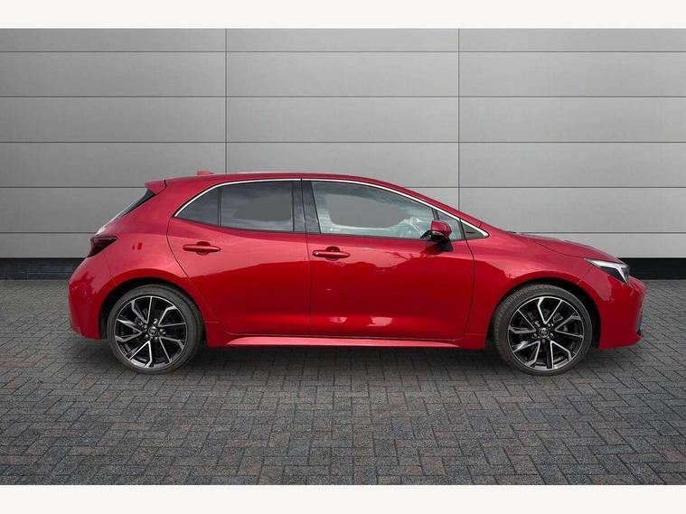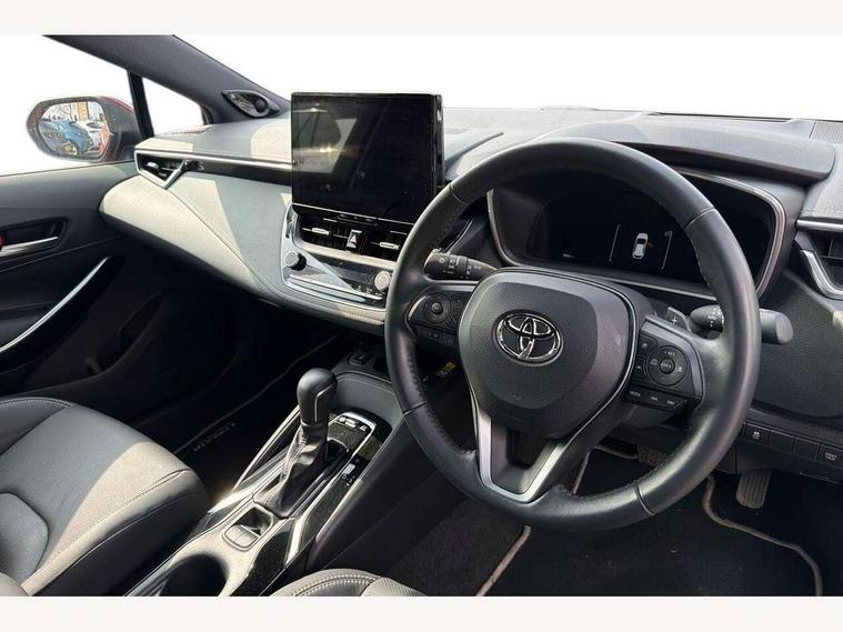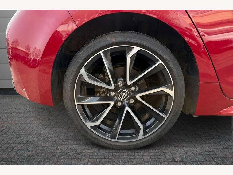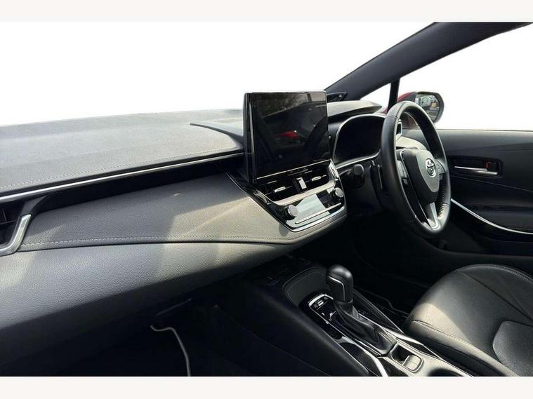 10.5" Multimedia display screen, Blind spot monitor and safe exit assist, Bluetooth telephone connectivity, Connected car functionality upgrade, tracker, remote status and e-care, Drive mode select (Eco, Normal), E-call, Electrically assisted power steering, EV drive indicator, Front and rear parking sensors with auto brake, Full Digital 12.3" TFT Digital Combimeter, Head up Display, Key reminder warning, Lane Departure Alert (LDA) switch on steering wheel, Memory on adjustable speed limiter, MyT connected services, Proactive driving assist (PDA), Rear cross traffic alert, Reversing camera, Smart entry and push button start, Smartphone integration with Apple CarPlay and wired android auto, Tailgate, Toyota remote services, Toyota smart connect navigation, Wireless charger, Gasoline particulate filter, Vehicle Stability Control (VSC), AM/FM radio, DAB Digital radio, Front USB-C in centre console, Front USB-C in dashboard, JBL Premium sound system with 8 speakers, Rear USB-C device charger, Smart voice assist/ Voice recognition, USB and Aux in connectors + 12V front outlet, Adaptive high beam system (AHS), Anti-jam protection on power windows, Auto headlight levelling system, Auto up and down function on all power windows, Automatic folding mirrors, Automatic headlights with high beam assist, Black centre and side air vents, Black metallic meshed front grille, Black toyota logo in front, Body coloured bumpers, Body coloured door mirrors, Body coloured front spoiler, Body coloured outside door handles, COROLLA alloy door scuff plates, Electrochromatic mirror, Follow me home headlights, LED daytime running lights, LED front fog lights, LED High mounted stop light, LED multi beam headlights, LED rear combi lights with LED lightguide, Noise reduction layer on windscreen, Piano black diffuser, Power adjustable heated door mirrors, Power front windows, Power rear windows, Privacy glass with UV filter, Rain sensing wipers, Rear bumper decoration with chrome plated inserts, Rear side wing doors, Rear under guard with chrome ornament, Rear window defogger, Rear window wiper, Reverse tilting door mirrors, Roof spoiler, Satin chrome insert on front air vents, Satin chrome insert on front door assist grips, Satin chrome inserts on rear passenger air vents, Shark fin antenna, Tailgate release with push button, Time adjustment on intermittent wiper, Turning signal integrated indicators in door mirrors, Unique grille pattern, Unique lower skirt, Unique side rocker with black insert, UV-filter on driver and passenger windows, 2 Shopping bag hooks in luggage compartment, 3 rear headrests, 3 seat bench in 2nd row, 3 spoke leather steering wheel with satin insert + gear knob, 4 tie down hooks in luggage compartment, 60/40 split folding rear seat, Adaptive cruise control (ACC) switch on steering wheel, Adjustable speed limiter switch on steering wheel, Audio, multimedia and telephone switches on steering wheel, Black armrest on centre console box, Black gear shift console, Boot light, Boot underfloor storage, Centre room light, Driver and front passenger personal light, Driver and passenger assist grip, Driver and passenger seatback pockets, Driver and passenger sun visor with mirror and light, Dual zone automatic air conditioning with ECO mode switch, Front and rear cup and bottle holders, Front door pockets, Front head restraints, Front passenger seat, Front sliding synthetic leather armrest, Heated seats, Illuminated entry system in room lamp, ISOFIX seat fixing (2 fixings on rear outer seats), Leather gear shift with satin chrome on gear shift console, Manual height adjustable for driver and front passenger seat, Manually tilt with sliding driver and front passenger seat, Nanoe-X air purifier, Paddle shifts, Parcel shelf, Perforated leather upholstery, Pollen filter, Power window switches with satin chrome inserts, Rear air conditioning, Rear armrest with 2 cupholders, Rear passenger coat hooks (2), Remote air conditioning, Satin chrome inside door handles, Satin chrome surround on heater control panel, Satin chrome surround on speedometer, Sliding armrest on centre console box, Slow opening glovebox with lights, Sports seats, Textile floor mats, Tilt/telescopic steering column, Voice recognition switch on steering wheel, Whiplash Injury Lessening (WIL) feature (active headrest) for seats, White ambient lighting on open tray and front cup holder, Toyota safety sense 3 pack - Corolla, 3x3 point rear seatbelts, Adjustable driver and front passenger seat belt extender to top anchor point, Anti lock braking system + Electronic brake force distribution, Brake assist function, Child locks on rear doors, Downhill Assist Control (DAC), Electronic parking brake, Emergency brake light signal (EBS), Front passenger airbag on/off switch, Front seatbelt reminder, HAC - Hill start assist control, Rear seat belt reminder, Seatbelt pretensioners and force limiters, Supplemental restraint system (SRS) 7 airbags - dual driver, dual side curtain, side impact and driver knee airbags, Traction control, Tyre pressure warning system, Acoustic vehicle alert system (AVAS), Alarm with motion sensor and immobilizer, Power passenger window lock, Remote central locking + deadlocks, Satin chrome dash trim, Soft touch texture on upper dashboard, Stitching on lower dashboard, Stitching on upper dashboard, 18" Dark grey machined face 5 double spoke alloy wheels, Tyre repair kit, Unique wheel finish with red wheel cap,