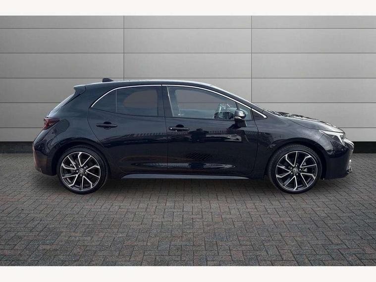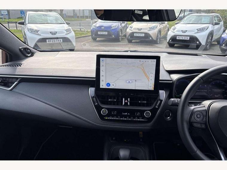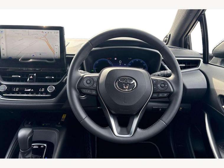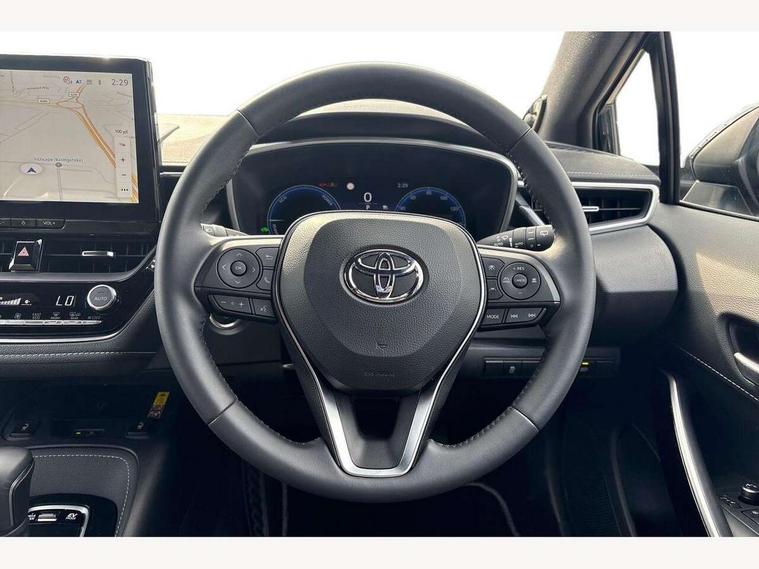 10.5" Multimedia display screen, Blind spot monitor and safe exit assist, Bluetooth telephone connectivity, Connected car functionality upgrade, tracker, remote status and e-care, Drive mode select (Eco, Normal), E-call, Electrically assisted power steering, EV drive indicator, Front and rear parking sensors, Full Digital 12.3" TFT Digital Combimeter, Head up Display, Intelligent clearance sonar, Key reminder warning, Lane Departure Alert (LDA) switch on steering wheel, Memory on adjustable speed limiter, MyT connected services, Proactive driving assist (PDA), Rear cross traffic alert, Reversing camera, Smart entry and push button start, Smartphone integration with Apple CarPlay and wired android auto, Tailgate, Toyota remote services, Toyota smart connect navigation, Wireless charger, Gasoline particulate filter, Vehicle Stability Control (VSC), AM/FM radio, DAB Digital radio, Front USB-C in centre console, Front USB-C in dashboard, JBL Premium sound system with 8 speakers, Rear USB-C device charger, Smart voice assist/ Voice recognition, USB and Aux in connectors + 12V front outlet, Adaptive headlights, Anti-jam protection on power windows, Auto headlight levelling system, Auto up and down function on all power windows, Automatic folding mirrors, Automatic headlights with high beam assist, Black centre and side air vents, Black metallic meshed front grille, Black toyota logo in front, Body coloured bumpers, Body coloured door mirrors, Body coloured front spoiler, Body coloured outside door handles, COROLLA alloy door scuff plates, Electrochromatic mirror, Follow me home headlights, LED daytime running lights, LED front fog lights, LED High mounted stop light, LED multi beam headlights, LED rear combi lights with LED lightguide, Noise reduction layer on windscreen, Piano black diffuser, Power adjustable heated door mirrors, Power front windows, Power rear windows, Privacy glass with UV filter, Rain sensing wipers, Rear bumper decoration with chrome plated inserts, Rear side wing doors, Rear under guard with chrome ornament, Rear window defogger, Rear window wiper, Reverse tilting door mirrors, Roof spoiler, Satin chrome insert on front air vents, Satin chrome insert on front door assist grips, Satin chrome inserts on rear passenger air vents, Shark fin antenna, Tailgate release with push button, Time adjustment on intermittent wiper, Turning signal integrated indicators in door mirrors, Unique grille pattern, Unique lower skirt, Unique side rocker with black insert, UV-filter on driver and passenger windows, 2 Shopping bag hooks in luggage compartment, 3 rear headrests, 3 seat bench in 2nd row, 3 spoke steering wheel with satin insert, 4 tie down hooks in luggage compartment, 60/40 split folding rear seat, Adaptive cruise control (ACC) switch on steering wheel, Adjustable speed limiter switch on steering wheel, Audio, multimedia and telephone switches on steering wheel, Black armrest on centre console box, Black gear shift console, Boot light, Centre room light, Driver and front passenger personal light, Driver and passenger assist grip, Driver and passenger seatback pockets, Driver and passenger sun visor with mirror and light, Dual zone automatic air conditioning with ECO mode switch, Electric lumbar support for passenger, Front and rear cup and bottle holders, Front door pockets, Front head restraints, Front passenger seat, Front sliding synthetic leather armrest, Front sports seats, Gear knob, Heated front seats, Illuminated entry system in room lamp, ISOFIX seat fixing (2 fixings on rear outer seats), Leather gear shift with satin chrome on gear shift console, Manual height adjustable for driver and front passenger seat, Manually tilt with sliding driver and front passenger seat, Nanoe-X air purifier, Parcel shelf, Perforated leather upholstery, Pollen filter, Power adjustable lumbar support on driver seat, Power window switches with satin chrome inserts, Rear air conditioning, Rear armrest with 2 cupholders, Rear passenger coat hooks (2), Remote air conditioning, Satin chrome inside door handles, Satin chrome surround on heater control panel, Satin chrome surround on speedometer, Sliding armrest on centre console box, Slow opening glovebox with lights, Textile floor mats, Tilt/telescopic steering column, Voice recognition switch on steering wheel, Whiplash Injury Lessening (WIL) feature (active headrest) for seats, White ambient lighting on open tray and front cup holder, Toyota safety sense 3 pack - Corolla, 3x3 point rear seatbelts, Adjustable driver and front passenger seat belt extender to top anchor point, Anti lock braking system + Electronic brake force distribution, Brake assist function, Child locks on rear doors, Downhill Assist Control (DAC), Electronic parking brake, Emergency brake light signal (EBS), Front passenger airbag on/off switch, Front seatbelt reminder, HAC - Hill start assist control, Rear seat belt reminder, Seatbelt pretensioners and force limiters, Supplemental restraint system (SRS) 7 airbags - dual driver, dual side curtain, side impact and driver knee airbags, Traction control, Tyre pressure warning system, Acoustic vehicle alert system (AVAS), Alarm with motion sensor and immobilizer, Power passenger window lock, Remote central locking + deadlocks, Satin chrome dash trim, Soft touch texture on upper dashboard, Stitching on lower dashboard, Stitching on upper dashboard, 18" 10 double spoke dark grey machined face alloy wheels, Tyre repair kit, Unique wheel finish with red wheel cap,
