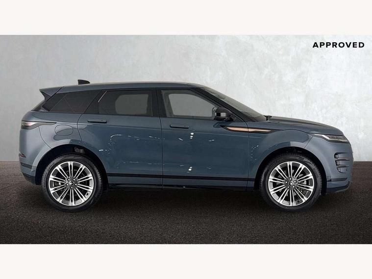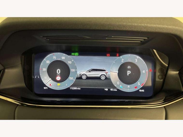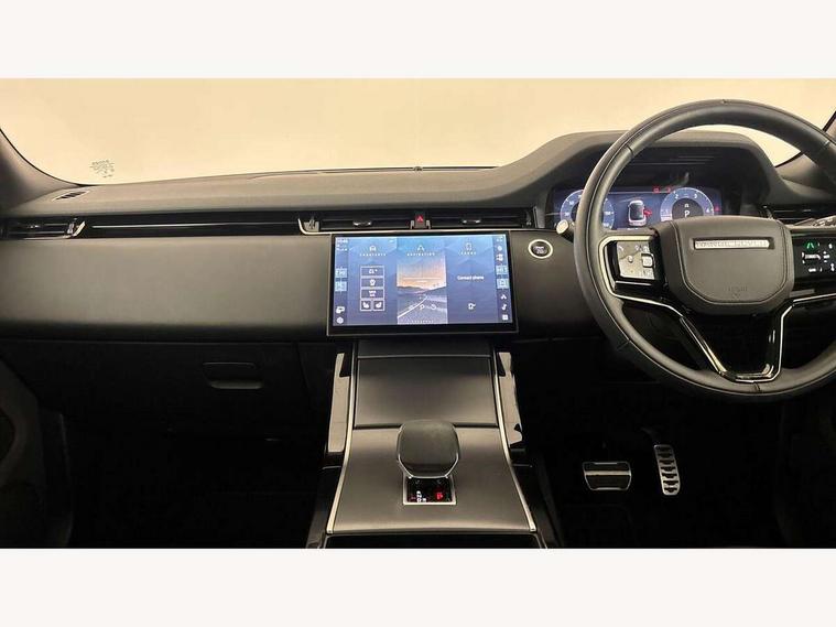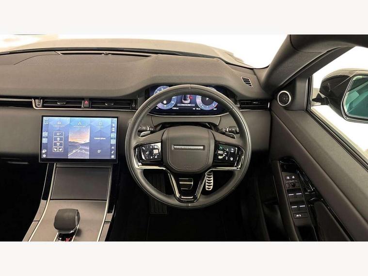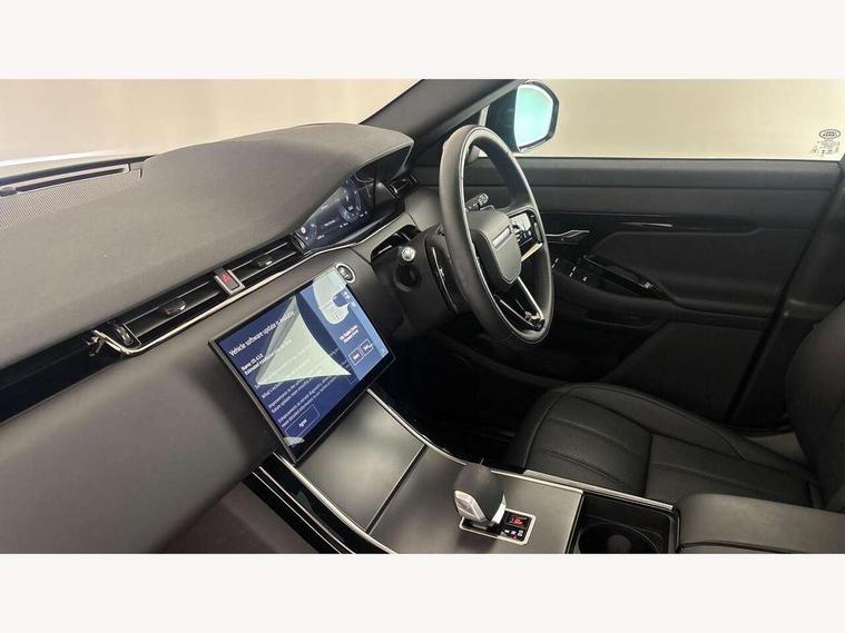 11.4" touch screen, Adaptive cruise control, Android Auto, Apple car play, Blind spot assist, Bluetooth connectivity, Brake pad wear indicator warning light, Driver condition monitor, eCall emergency system, Eco mode, Electronic power assisted steering (EPAS), Front and rear parking aid, InControl remote, Interactive driver display, Land Rover InControl apps, Lane keep assist, Pivi pro connected includes diamond pivi variant, smart settings, connected navigation pro, nuance speech licence, Powered tailgate/boot lid, Rear collision monitor, Rear traffic monitor, Traffic sign recognition with adaptive speed limiter, Voice control system, Wireless device charging, All terrain progress control, Diesel exhaust fluid (DEF) large tank, Efficient Driveline, Large fuel tank, Passive suspension, Terrain Response 2, Digital Audio Broadcast radio-DAB, Steering wheel mounted controls, Acoustic laminated windscreen, Auto headlights, Automatic headlight levelling, Electric windows with one touch open/close and anti trap, Flush deployable exterior door handles, Front and rear recovery eyes, Heated rear window with timer, Heated washer jets, Heated windscreen, Pixel LED headlights with signature DRL and LED tail Lights, Power fold, auto-dimming, heated door mirrors with approach lights and auto dimming driver side, Rain sensing windscreen wipers, Rear animated directional indicators, Rear fog lights, Rear side wing doors, Rear wiper, Side repeater indicators in mirror, Tailgate spoiler, Third brake light, Winter wiper park position, 14 way driver memory electric front seats with 2 way manual headrests + 4 way lumbar support, bolsters, 40:20:40 split folding rear seats with centre headrest and armrest, Ambient interior lighting, Bright metal pedals, Carpet mats, Chrome tread plates with range rover branding Includes stainless steel loadspace scuff plate with etched graphic, Customer configurable single point entry, Electrically adjustable steering column with memory function and easy entry/exit, Front and rear cupholders, Heated steering wheel, Isofix system on outer rear seats, Overhead lighting console, Overhead stowage for sunglasses, Passive front head restraints, Rear air vents, Rear head restraints, Satin chrome gearshift paddles, Single passenger seat, Sunvisors with illuminated vanity mirrors, Twin sliding front centre armrest, Online pack with data plan - Evoque, Power socket pack 2 - Evoque, 3 rear 3 point seatbelts, Anti-lock braking system (ABS), Brake hold function, Customer configurable autolock, DSC - Dynamic Stability Control, Electronic brake force distribution, Electronic parking brake, Electronic traction control, Emergency braking, Front and rear seatbelt reminder, Hill descent control, Hill launch assist, Low traction launch, Occupant protection assist, Passenger seat occupant detector, Power operated child locks, Roll stability control, Six airbags - Driver and passenger airbags/driver knee airbag/front side airbag and curtain airbags, Torque vectoring brake, Tyre pressure monitoring system, Alarm, Immobiliser, Intrusion sensor, Keyless entry, Locking wheel nuts,