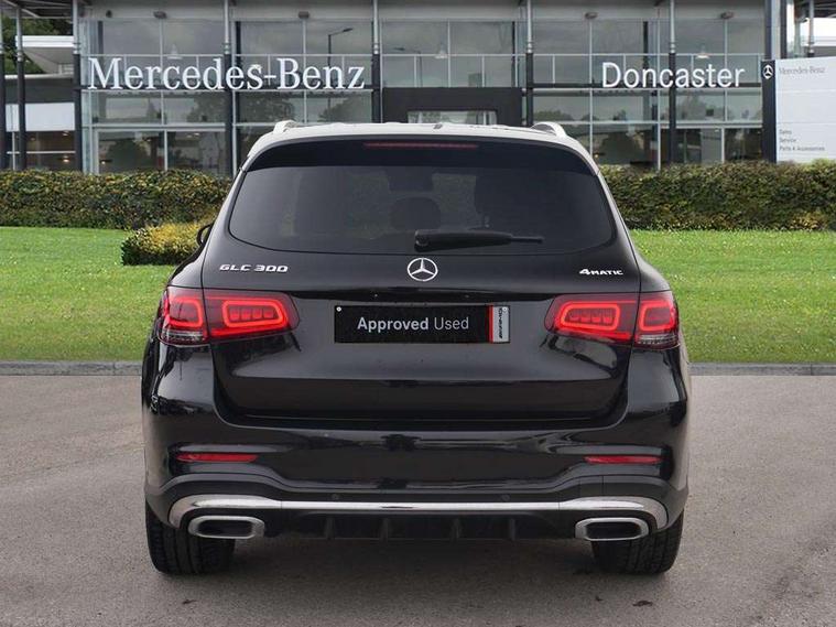 360 degree view camera, Active parking assist with parktronic system, Attention assist, Bluetooth interface for hands free telephone, Collision prevention assist plus, DYNAMIC SELECT with a choice of driving modes (ECO, Comfort, Sport, Sport+ and Individual), Easy pack automatic powered tailgate, eCall emergency call system, ECO start/stop function, Hard disk navigation, Hey Mercedes Voice activation, Instrument cluster with12.3-inch digital instrument cluster display. High resolution instrument cluster screen with choice of three display styles, MBUX Interior assistant, Mercedes connect me with remote online services, Multi function trip computer, Outside temperature display, rear seatbelt status indicator, Remote boot release, Service indicator (ASSYST), Smartphone integration with Apple CarPlay and Android auto, Traffic sign assist, 4MATIC permanent four wheel drive, 66 litre fuel tank, 9G TRONIC plus automatic transmission with steering column gear selector, DIRECT SELECT steering wheel gearshift paddles, Petrol Particulate Filter (PPF), Sports suspension tuned for improved handling and driving dynamics, 5 speakers, Frontbass loudspeakers, MBUX multimedia system with DAB digital radio and touchpad, Media display 10.25-inch touchscreen display, Pre installation for Mercedes Benz Link, USB ports x 2 in centre console, Adaptive brake lights, Aluminium roof rails, AMG bodystyling - AMG front apron with sporty air intakes and chrome trim element, AMG diffuser-look rear apron with insert in black, Body colour door mirrors, Body coloured bumpers, Electric panoramic glass sunroof, Electric windows one touch open/close, Electrically adjustable and heated door mirrors, Front, side and rear exterior chrome trim, Headlamp assist automatic headlamp activation, High level LED brake light, LED high performance headlamps with integrated LED daytime running lights, LED tail lamp, Motor way mode function and locator lighting, Privacy glass with dark glass from B pillar backwards, Radiator diamond grille, Rain sensor windscreen wipers, Range adjustable headlights, Rear side wing doors, Rear wiper, Roof spoiler, Running boards, Tinted glass all round with single layer safety glass, Tinted rear windows, Two chrome plated tailpipe trim elements, Variable front intermittent wipers, 2 way rear head restraints, 3-spoke multifunction sport AMG steering wheel in black nappa leather with flattened bottom section, chrome insert and perforated leather in grip area, 40:20:40 split folding rear seats, Ambient lighting, AMG floor mats with edging and embroidered AMG lettering, AMG sports seats, Artico man-made leather upper dashboard with contrast topstitching, Automatic child seat recognition sensor, Black roof lining, Dividing net - rear, Double cup holder in centre console, Easy-pack removable load compartment cover, Front armrest with storage box, Front door sills with Mercedes Benz lettering, Front head restraints, Front passenger seat, Heated front seats, Illuminated and lockable glove compartment, Leather upholstery, Rear top tether child seat ISOFIX attachment, Sports pedals with stainless steel surfaces and rubber studs, Steering wheel with touch control buttons, THERMOTRONIC 3 zone automatic climate control, Interior lighting pack - GLC, Memory pack - GLC, Mirror pack - GLC, Storage pack - GLC, 3 rear 3 point seatbelts, Active bonnet, Adaptive brake system with HOLD function and brake drying in the wet, ASR, Black seat belts, Brake calipers with Mercedes-Benz lettering + perforated brake discs, Child proof door locks, Dual-stage airbags - driver and front passenger, driver knee bag and window bags for driver, front passenger and rear passengers, Electronic parking brake, Electronic stability programme (ESP) with curve dynamic assist and cross wind assist, Front and rear seatbelt reminder, Front passenger seat occupancy sensor, Hill hold function, Tyre pressure monitoring system, Warning triangle and first aid kit, Alarm system/interior protection/immobiliser, Automatic door locking, Keyless Go entry and starting function, Remote central locking, Anthracite open pore oak wood trim, 20" AMG 5 twin spoke alloy wheels painted in titanium grey with high sheen finish, Run flat tyres, Summer tyres,