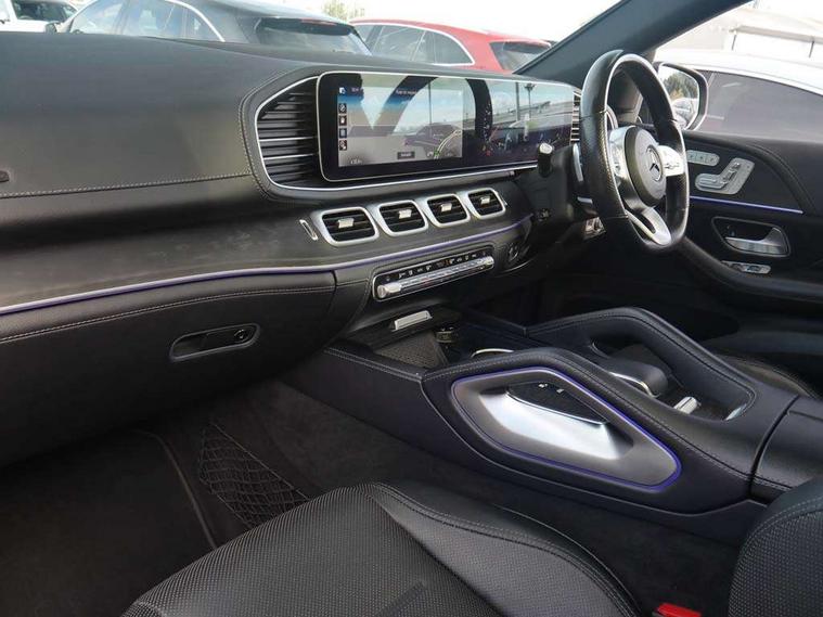 Attention assist, Cockpit display 12.3" widescreen digital instrument cluster, Crosswind Assist, Cruise control, Direct steer speed sensitive steering, DYNAMIC SELECT with a choice of driving modes (ECO, Comfort, Sport and Individual), Easy-pack tailgate - Powered opening/closing automatically, ECO start/stop function, Head up Display, Lane keeping assistant (LKA), Mercedes me connect including emergency call system, accident recovery, breakdown and maintenance management, Outside temperature display, rear seatbelt status indicator, Parking pilot with 360 degree camera, Reversing camera, Service indicator (ASSYST), Smartphone integration with Apple CarPlay and Android auto, Sports direct steer system with speed sensitive power assistance, Traffic Sign Assist, Traffic sign recognition including wrong way warning function and display of posted speed limits in the instrument cluster, Wireless charging system for mobile devices, 4MATIC permanent four wheel drive, 85 litre fuel tank, 9G TRONIC automatic transmission with steering column gear selector, DIRECT SELECT steering wheel gearshift paddles, Airmatic air suspension with adaptive damping system, Charging cable for household sock (mode 2) - 8m, 8A, Charging cable for wallbox and public charging stations (mode 3) - 8m, 16A, Diesel particulate filter (DPF), Bluetooth interface for hands free and audio streaming, Burmester surround sound system, DAB Digital radio, Hard disk navigation with MBUX multimedia system, Adaptive brake lights, Adaptive high beam assist plus, Aluminium look, illuminated running boards with rubber studs, AMG bodystyling front and rear bumpers, Body colour door mirrors, Body coloured bumpers, Electric panoramic sunroof with sunblind, Electric windows with one touch opening/closing and obstruction sensors, Exhaust system - twin pipe with two integrated chrome tailpipe trims, Front and rear underbody protection with chrome look finish, LED tail lamp, Magic vision control with adaptive windscreen wiper system, Multi beam LED headlights, Privacy glass - heat insulating dark tinted glass, Radiator grille with integrated star and single louvre in matt iridium silver with chrome trim, Rain sensing windscreen wipers, Rear wash/wipe, Top surround of side windows in polished aluminium, 2 cup holders in front and rear, 2 rear head restraints, 3 spoke AMG multifunction steering wheel with touch control buttons, trimmed in black nappa leather with flattened bottom section, 4 way adjustable front head restraints and 2 way rear head restraints, 40:20:40 split folding rear seats, AMG floor mats with AMG lettering, Artico man-made leather upper dash trim, Automatic child seat recognition sensor, Climatised front seats, Courtesy lights in rear grab handles with reading light functionality, Driver and front passenger cup holders temperature controller, Electric adjust front headrests, Electrically adjustable front seats, Electrically height and reach adjustable steering column with memory, Folding rear armrest, Front centre armrest with stowage compartment and illuminated grab handles, Glasses compartment in overhead control panel, Glove compartment - lockable, air conditioned and illuminated, Heated front seats, Illuminated stainless steel door sill panels with Mercedes-Benz lettering, Interior lighting - 64 colour Ambient lighting, Luggage compartment cover, Nappa leather upholstery, Sports pedals with stainless steel surfaces and rubber studs, Sunvisors with illuminated vanity mirrors, Thermotronic automatic 4 zone climate control, Touchpad, Two (type C) USB ports in centre console, Acoustic comfort pack - GLE Coupe, Driving assistance pack - GLE Coupe, Energizing comfort package - GLE Coupe, Interior chrome package - GLE, KEYLESS-GO Comfort package - GLE Coupe, Memory package - GLE Coupe, Mirror package - GLE Coupe, Parking package - GLE Coupe, 3x3 point rear seatbelts, Active bonnet, Active braking assist, Airbags - windowbags, Anti-lock braking system (ABS), Child proof door locks, Downhill speed regulation (DSR) with switch and variable speed control, Driver/front passenger airbag, Drivers knee airbag, Electronic four wheel traction control, Electronic parking brake, Electronic stability programme with acceleration skid control, First aid kit, warning triangle and high visibility jacket, Front side airbags, Hill hold function, Hill start assist, ISOFIX child seat attachment points two outer rear seats, Perforated front brake discs and brake calipers with Mercedes-Benz lettering, Pre-Safe anticipatory safety system, Tyre pressure monitoring system, Alarm system/interior protection/immobiliser, Chrome surround in electric key, Remote central locking, Urban guard vehicle protection, Dashboard and door, anthracite open pore oak wood trim, 22" AMG 5 twin spoke tremolite grey with high sheen finish light alloy wheels, Summer tyres with noise reducing absorber, TIREFIT with tyre inflation compressor,