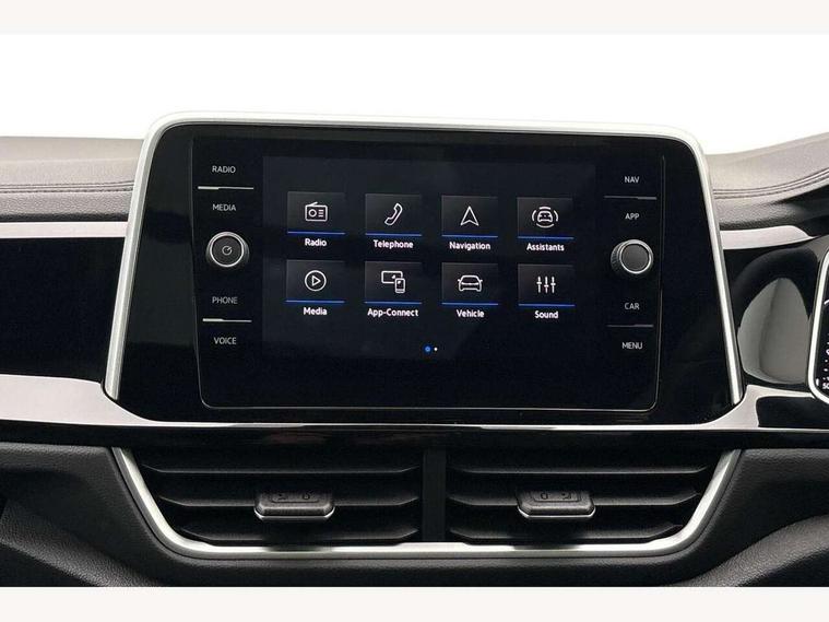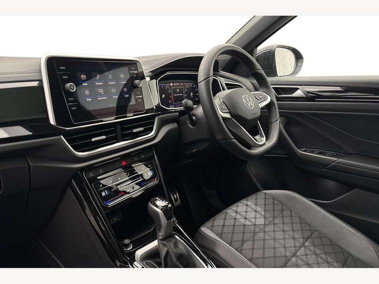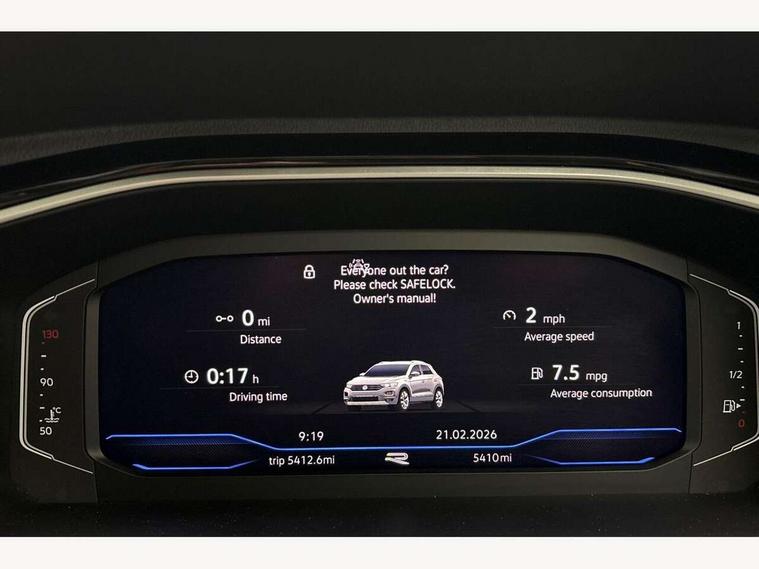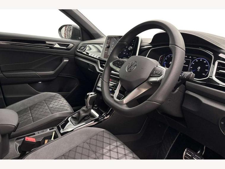 10.25" Digital cockpit pro, Advanced driver attention and drowsiness monitor, Emergency call service, Lane keeping system Lane Assist, Mobile phone interface, Modified key software - reduce switch off time for key status change to Long no motion, Online services, Park assist including front and rear parking sensors, Service interval indicator, Tailgate/trunk lid release from outside, Think blue trainer driver tips and journey analysis, Warning sound and light for front seatbelts unfastened, Wireless app connect, Battery regeneration during braking, Start/stop function with battery regeneration, DAB Digital radio, Diversity antenna for FM reception, Front and rear 6 speakers, Music playback - MP3, WMA and AAC files, Premium USB cable in choice of either Apple or Android smartphone compatibility, SD card slot, Simultaneous pairing of 2 compatible mobile devices, Title and cover art display, We Connect and We Connect Plus functionality, Auto dimming interior rear view mirror, Automatic hazard lights activation under emergency braking, Automatic headlight control with LED separate daytime running lights with coming/leaving home function, Body coloured exterior mirror housings and door handles, Electrically adjustable and heated door mirrors, Extended roof spoiler, Exterior mirrors aspherical on driver side, convex on front passenger side, External USB type C socket and charging sockets, Front windscreen wiper with intermittent wipe and 4 position delay, Heated rear window, LED 3rd brake light, LED rear combination lamps, LED rear number plate lights, Power windows with comfort operation and circuit breaker, Privacy glass for rear side windows and rear window, R-Line design body coloured bumpers, Rain sensor, Rear exhaust tailpipe, Rear fog light on one side and reversing lights on both sides, Rear side wing doors, Rear wash/wipe with intermittent wipe setting, Remote electrically foldable door mirrors, puddle lights and reverse activated passenger's door mirror, 12V power socket in centre console, 3 rear head restraints, 3 seat bench in 2nd row, 4 load lashing points in luggage compartment, Air care climatronic air conditoning system with active combination filter and 2-zone temperature control, Black roof lining, Chrome plated decorative trims, Chrome plated radiator grille inserts, air vent surrounds and light switch surrounds, Door and side trim panel with leatherette insert, Front + rear carpet mats, Front centre armrest, Front cupholders x 2, Front footwell illumination, Front reading light, Front scuff plates with R Line logo, Front seat back storage pockets, Glove compartment door with light, Instrument lighting, white adjustable panel illumination, Interior ambient lighting and surround lighting, Interior light delay, Isofix child seat preparation, Leather gearshift handle, Load-through provision with cup holder when folded down ('Unsplit rear seat bench, split folding backrest, with centre armrest), Luggage compartment lighting, Single front passenger seat, Stainless steel pedals, Storage compartment in left and right luggage area, Storage compartment in rear doors, Storage compartments in driver and front passenger doors, Sunvisors with illuminated vanity mirrors, Variable boot floor, height adjustable and removable, Driver assistance pack without proactive passenger protection - T-Roc, 3 point height adj front seatbelts + pretensioners, 3 point seatbelts in outer rear with ECE label, ABS, Child locks on rear doors, City emergency braking and pedestrian monitoring, Driver and front passenger airbag with front passenger airbag deactivation, Driver and front passenger safety-optimised head restraints, Drivers seatbelt reminder, Electronic parking brake, Electronic Stability Control (ESC) inc EDL (Electronic Differential Lock) and ASR (Traction Control), Front and rear passengers curtain airbag system including front side airbags, Hill start assist, Predictive pedestrian protection, Rear disc brakes, Two tone horn, Tyre pressure loss indicator, Volkswagen roadside assistance, Piano black decorative inserts in dashboard and front door trim panels, Trims for alloy wheels,