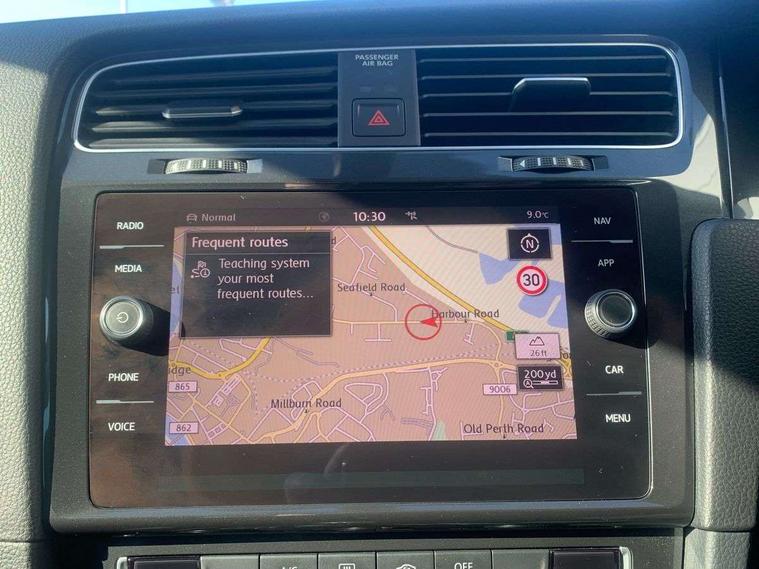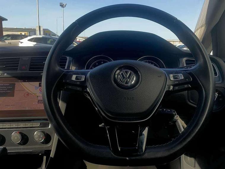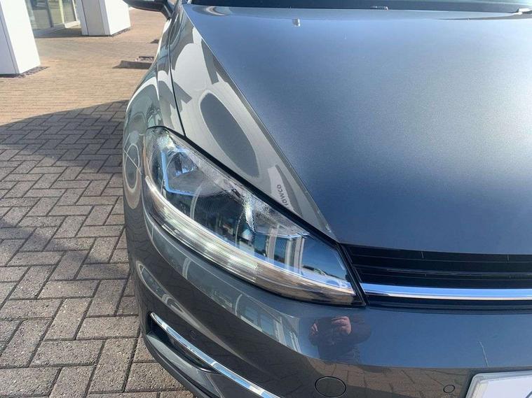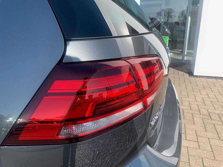 'Lights On' Reminder warning buzzer, ACC - Adaptive cruise control with front assist, forward collision warning, distance monitoring, city emergency brake and speed limiter, Bluetooth telephone and audio connection for compatible devices, Brake pad wear indicator warning light, Driver alert system, Driver profile selection, Driving Mode Selection with four preset modes - Eco, normal, sport or individual modes, Instrument cluster in white, Multifunction computer with visual gear change recommendation for fuel consumption, Power assisted speed sensitive electro-mechanical steering, Push tank flap, Speed limit display, Speedo, rev counter, electronic odometer, trip, service interval display, exterior temperature and fuel gauge, Stop/start system, Warning buzzer and light for front seatbelts unfastened, Battery regeneration during braking, XDS electronic differential lock, Composition media system, DAB Digital radio receiver, Driver Personalisation profile selection, MP3/WMA compatability, Multi device interface (MDI) with USB connection, Personalisation 1.1 profile for media, Premium USB cable in choice of either Apple or Android smartphone compatibility, SD card slot, SMS Functionality, USB and SD card connectivity, Black front air intake and radiator grille with chrome insert, Black rear diffuser, Body colour bumpers, Body colour door handles, Body colour door mirrors with integrated indicators, Dusk sensor + automatic driving lights, Electric front windows, Electric rear windows, Electrically adjustable and heated door mirrors, Fully galvanised body, Heated rear windscreen, Hidden exhaust pipe, High level 3rd brake light incorporating LED Technology, LED daytime running lights, LED front fog lights with static cornering light function, Rear fog lamp, Rear tinted glass 65% light absorbing from B pillar backwards, Rear window aerial, Rear window wash/wipe with intermittent wipe, Reflectors in all doors, Tailgate with integrated rear roof spoiler, Windscreen wipers/ intermittent wipe + 4 position delay, 12V socket in luggage compartment, 3 rear headrests, 4 load lashing points in luggage compartment, 60/40 split folding rear seat backrest, Auto fold down lever in rear seat backrest, Bag hook in luggage compartment x 2, Cooled glovebox, Cupholder cover, Dust/pollen filter, Front and rear reading lights incorporating LED technology, Front centre armrest with storage compartment and two rear air vents, Front seat back storage pockets, Grab handles front x 2, rear x 2 with integrated coat hooks, Height and reach adjustable steering wheel, Illuminated vanity mirrors, Instrument lighting white adjustable panel illumination, Interior light delay, Isofix preparation for 2 rear child seats, Load through provision with rear centre armrest and cupholders x2, Luggage compartment lighting, Overhead storage box, Passenger underseat drawer, Pearl grey headlining, Storage box in luggage compartment, Storage compartment in roof console with cover, Storage compartments in centre console, Storage compartments in front doors, Storage compartments in rear doors, Stowable luggage compartment cover, Sun visors, Variable boot floor, height adjustable and removable, Convenience Pack - Golf, Light and Sight pack - Golf, Mirror pack - Golf, 3 rear three point seatbelts, Airbags - Driver's and front passenger's, curtain airbag, Driver's knee, front side impact and passenger's airbag deactivation switch, Anti-lock Braking System (ABS) with Hydraulic Brake Assist (HBA), Automatic post collision braking system, Child locks on rear doors, Driver/Passenger optimised head restraints, Electronic parking brake with auto hold, Electronic stability control (ESC) including Electronic differential lock (EDL) and ASR (Traction control) with deactivation via infotainment system, Front ventilated disc brakes and rear disc brakes, Pre crash preventive occupant protection, Three point height adjustable front seatbelts with tensioners, Tyre pressure loss indicator, Alarm with interior protection and deactivation via infotainment system, Electronic engine immobiliser, Remote central locking with 2 remote folding keys, Brushed dark silver decorative inserts in dash and door panels, Chrome plated air vent surround, Chrome plated electric mirror adjustment light switch surround, Polar night black centre console, Steel space saver spare wheel,