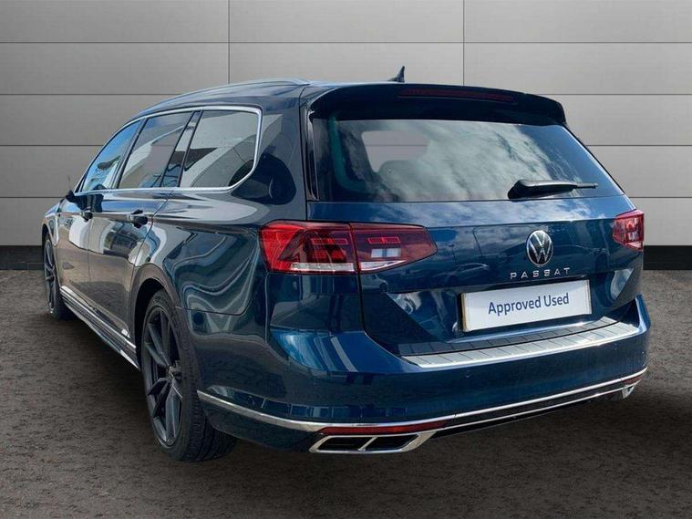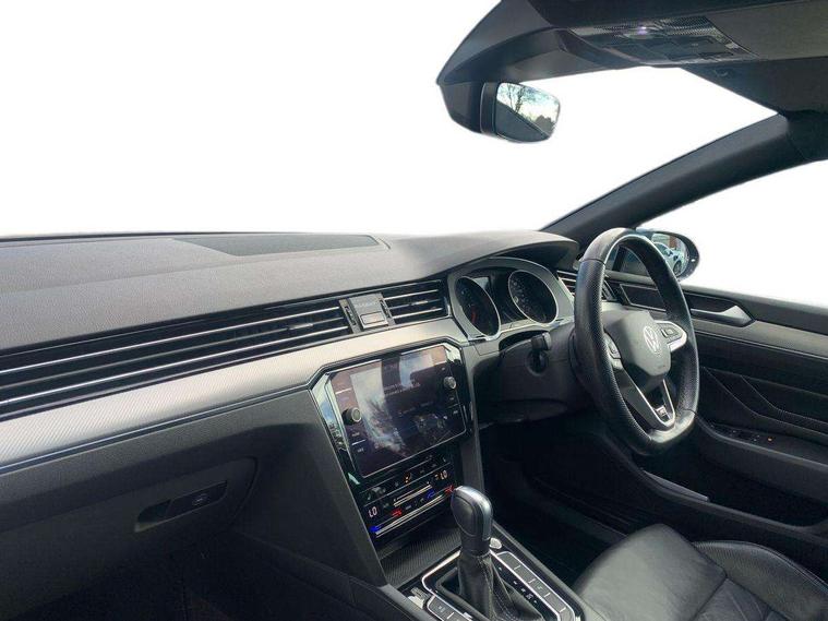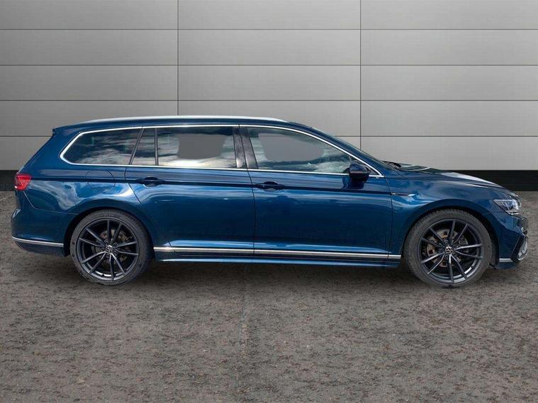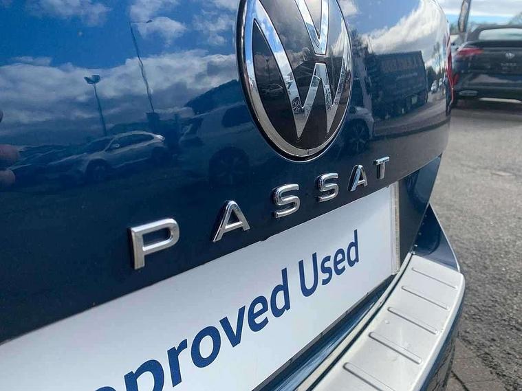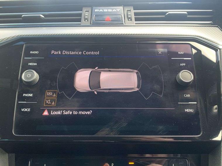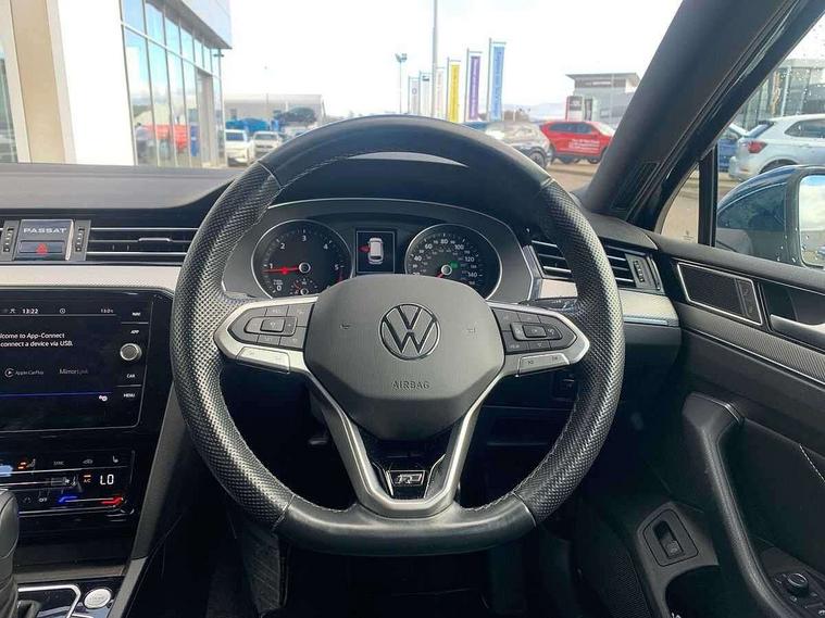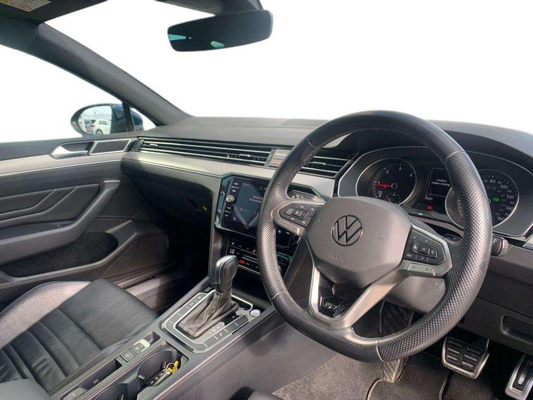 Adaptive cruise control including Front Assist, radar sensor controlled distance monitoring system, City emergency braking system, Driver alert system, Driver profile selection, Exterior temperature gauge with frost alarm, Lane assist, Low washer fluid warning light, Multifunction computer includes visual gear, One touch indicator turn signal, Proactive occupant protection, Security and service including e-call, Speed sensitive power steering, Speedo and rev counter, electronic odometer, trip, service interval display and fuel gauge, Start/Stop function, Traffic jam assist, Voice activation, Warning buzzer and light for front seatbelts unfastened, Battery regeneration during braking, Diesel particulate filter, Misfuel prevention device, Aerial for radio integrated into rear windscreen, DAB Digital radio receiver, Auto dimming interior rear view mirror, Automatic headlights with dusk sensor, Automatic leaving home and manual coming home lighting functions, Black radiator grille with chrome louvres, Body colour bumpers, Body colour door handles, Body coloured door mirrors with intergrated indicators, Chrome side window surrounds, Electric heated windscreen washer jets, Front and rear electric windows, Fully galvanised body, Gloss black finish on B pillar, Heated rear window, High level 3rd brake light, LED rear lights, LED rear number plate lights, Plastic load sill protection, Rain sensor, Rear side wing doors, Rear tinted glass from B pillar backwards, approx 65% tinted, Rear window wash/wipe, Remote electrically adjustable and foldable heated door mirrors including automatic dimming function on drivers side door mirror puddle lights, Silver anodised roof rails, Warning lights for open tailgate and doors, White instrument lighting, Windscreen wipers/ intermittent wipe + 4 position delay, 12V socket in front centre console, 12V socket in luggage compartment, 3 seat bench in 2nd row, 40:20:40 split folding rear seats with backrest, Carbon optic side bolsters, Climate control - 3 Zone electronic air conditioning with automatic air recirculation, Driver's door storage compartment for 1.0 litre bottle, Extending luggage compartment cover with convenience opening, stowable, Front and rear interior lighting with delay and dimming function, Front centre armrest with storage compartment and two rear air vents, Front cupholders x2 with covers, Front passenger storage compartment for 1.5 litre bottle, Front seats with embroidered R Line logo on backrest, Height adjustable and removable variable boot floor, Height adjustable rear seat head restraints (x3), Height/reach adjust steering wheel, Illuminated vanity mirrors, Isofix child seat preparation, outer rear seats, Load lashing points x 4 in luggage compartment, Load through provision, Lockable, illuminated, cooled glovebox, Luggage compartment lighting, Nappa leather upholstery, Rear seat centre armrest with storage compartment, Single front passenger seat, Stainless steel pedals, Storage compartment in rear doors, Storage compartment in roof console with cover, Unique R Line door sill protectors, Unique R Line front and rear carpet mats, Easy open package with full electric tailgate/ boot - Passat (Estate), R line styling pack - Passat (Estate), 3x3 point rear seatbelts, ABS (Anti locking brake system) includes BAS (Brake assist) and EBD (Electronic brake pressure distribution), Automatic post collision braking, Disc brakes front and rear, Door open warning reflectors, Driver/Front Passenger airbags, Drivers and front passengers safety optimised head restraints, longitudinal and height adjustable, Drivers knee airbag, Electronic parking brake with auto hold, First aid kit, Front and rear passenger curtain airbags, Front passenger airbag deactivation switch, Front side impact airbag, Height adjustable front 3 point seatbelts + pretensioners, Hill hold function, Pre crash preventive occupant protection, Rear door child safety locks, Rear seat side impact airbags, Rigid safety cell with front and rear crumple zones, Tyre pressure loss indicator, Volkswagen roadside assistance, Warning light for rear seat belts if unfastened, Alarm with interior protection and deactivation via infotainment system, Electronic engine immobiliser, Chrome air vent and instrument surround, Unique R Line dark diamond flag decorative inserts in dash and door panels,