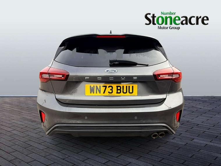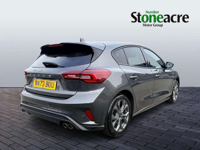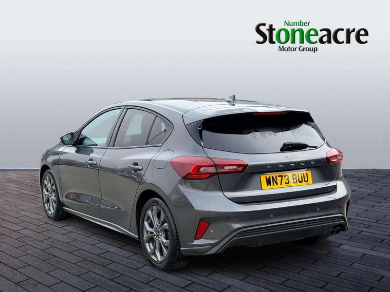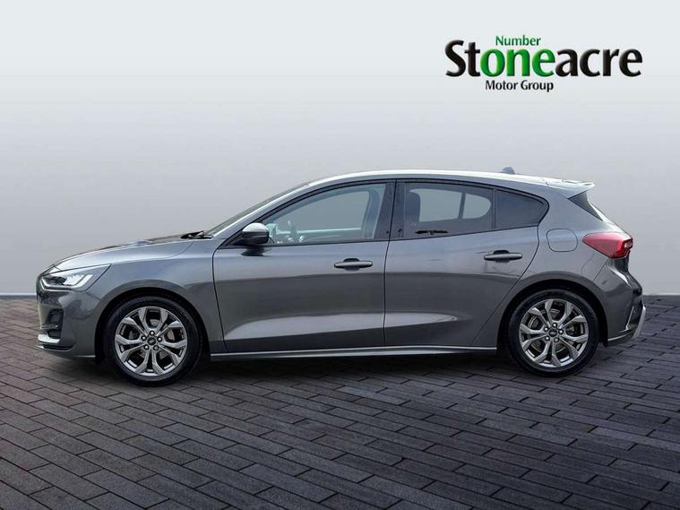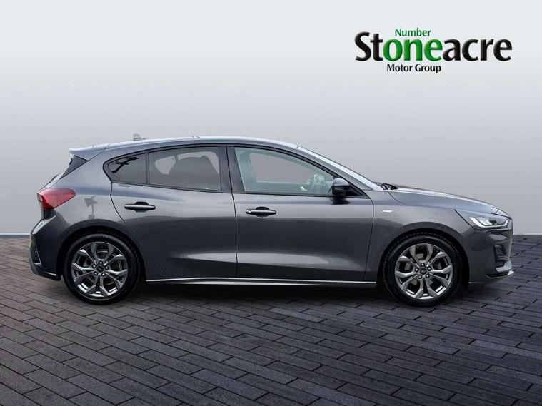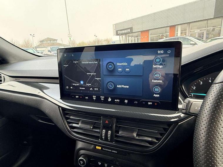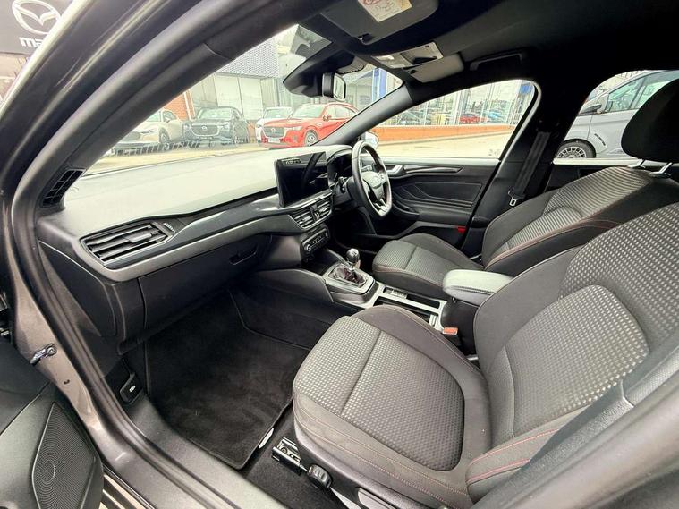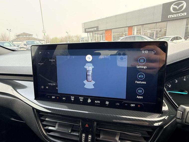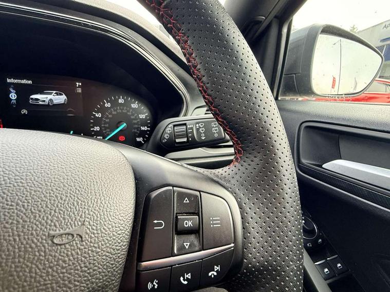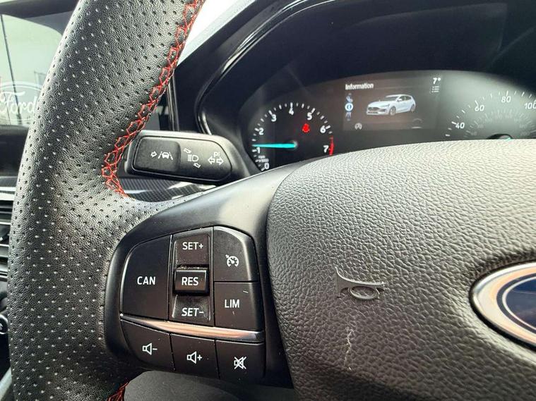 4.2" Colour TFT Ice blue illumination analogue cluster with trip computer, Bluetooth system, Digital clock, Easy fuel capless refuelling system, Eco mode, Ford SYNC 4 Navigation with 13.2'' touchscreen, DAB radio, Emergency Assistance, Apple Carplay & Android Auto, 6 speakers & FordPass Connect, Lane keeping system - lane keeping alert and lane keeping aid, PAS, Rev counter, Selectable drive mode, Service interval indicator, Sports tuned suspension, 2 USB ports, Auto headlamps (on/off), Body coloured door handles, Electrically operated front and rear windows with one touch opening and closing, Electrically operated heated power fold door mirrors with puddle lamp with side indicators, Front variable intermittent wipers with electric wash, Full fixed LED headlamps, Heated rear window, LED daytime running lamp, LED rear lamps, LED third brake light, Polished twin tailpipe, Privacy glass, Quickclear heated windscreen, Rain sensor, Rear side wing doors, Tailgate wash/wipe, Unique ST-Line grille, full bodystyling kit, and large body coloured rear spoiler, 3 rear headrests, 3 seat bench in 2nd row, Cloth upholstery, Dual zone electronic air temperature control, Height adjustable front headrests, Isofix child seat preparation, Reach + rake adjustable steering column, Single front passenger seat, 3x3 point rear seatbelts, ABS+Electronic Brake force Distribution, Auto hold function, Driver airbag, EDL traction control, Electronic parking brake, Electronic stability control, Front and rear seatbelt reminder, Front inertia reel height adjustable seatbelts with pre-tensioners, Front passenger airbag, Front side airbags, Passenger airbag deactivate switch, Post collision braking, Pre collision assist with autonomous emergency braking and pedestrian/cyclist detection, Remote/power child rear door locks, Side curtain airbags, Three rear inertia reel lap/diagonal seatbelts, Tyre pressure monitoring system, Keyless entry and keyless start, MyKey system, Remote central locking & engine immobiliser, Thatcham alarm with power door dead locks, 17" 5 spoke Rock mettalic finish alloy wheels with mini spare wheel,