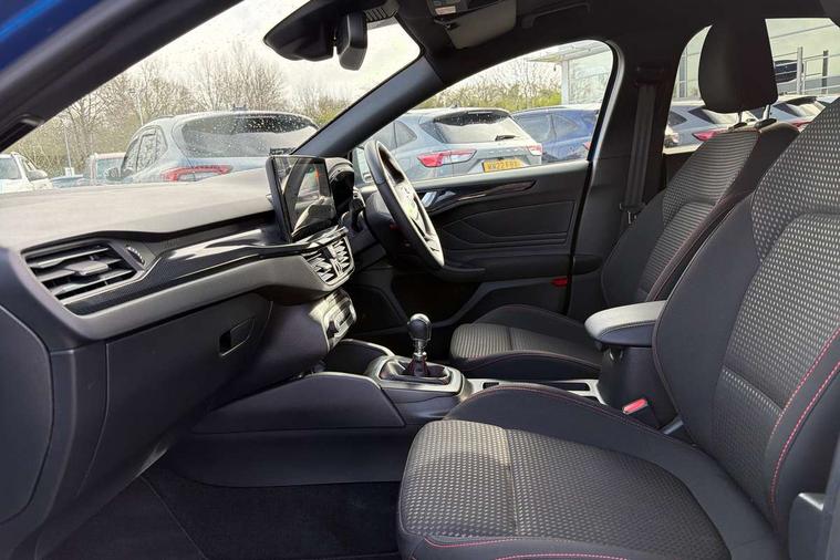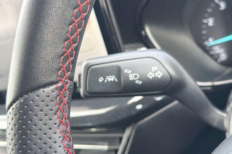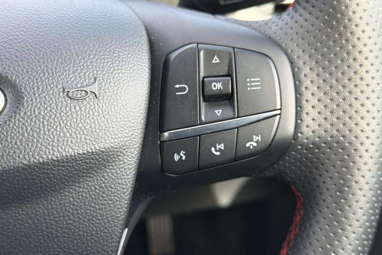 4.2" Colour TFT Ice blue illumination analogue cluster with trip computer, Bluetooth system, Digital clock, Easy fuel capless refuelling system, Eco mode, Ford SYNC 4 Navigation with 13.2'' touchscreen, DAB radio, Emergency Assistance, Apple Carplay & Android Auto, 6 speakers & FordPass Connect, Lane keeping system - lane keeping alert and lane keeping aid, PAS, Rev counter, Selectable drive mode, Service interval indicator, Sports tuned suspension, 2 USB ports, Auto headlamps (on/off), Body coloured door handles, Electrically operated front and rear windows with one touch opening and closing, Electrically operated heated power fold door mirrors with puddle lamp with side indicators, Front variable intermittent wipers with electric wash, Full fixed LED headlamps, Heated rear window, LED daytime running lamp, LED rear lamps, LED third brake light, Polished twin tailpipe, Privacy glass, Quickclear heated windscreen, Rain sensor, Rear side wing doors, Tailgate wash/wipe, Unique ST-Line grille, full bodystyling kit, and large body coloured rear spoiler, 3 rear headrests, 3 seat bench in 2nd row, Cloth upholstery, Dual zone electronic air temperature control, Height adjustable front headrests, Isofix child seat preparation, Reach + rake adjustable steering column, Single front passenger seat, 3x3 point rear seatbelts, ABS+Electronic Brake force Distribution, Auto hold function, Driver airbag, EDL traction control, Electronic parking brake, Electronic stability control, Front and rear seatbelt reminder, Front inertia reel height adjustable seatbelts with pre-tensioners, Front passenger airbag, Front side airbags, Passenger airbag deactivate switch, Post collision braking, Pre collision assist with autonomous emergency braking and pedestrian/cyclist detection, Remote/power child rear door locks, Side curtain airbags, Three rear inertia reel lap/diagonal seatbelts, Tyre pressure monitoring system, Keyless entry and keyless start, MyKey system, Remote central locking & engine immobiliser, Thatcham alarm with power door dead locks, 17" 5 spoke Rock mettalic finish alloy wheels with mini spare wheel,