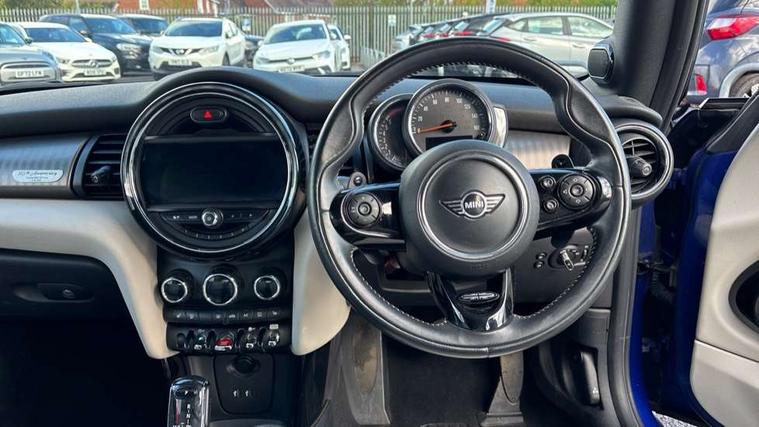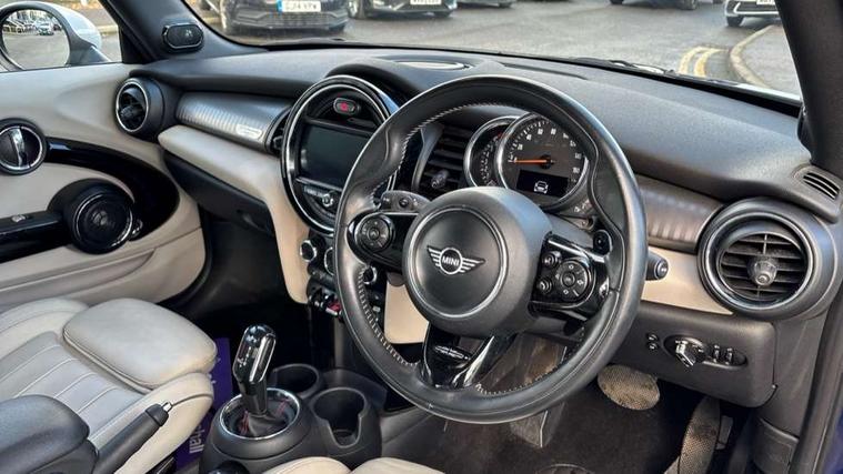 Acoustic seat-belt warning, Apple car play, Bluetooth wireless phone connectivity, Brake fluid level warning light, Brake pad wear indicator warning light, Connected driver, Cruise control with brake assist, DTC - Dynamic traction control, Exterior temperature gauge, Intelligent emergency call, MINI Driving Modes - centre toggle switch to control driving setting (sport, mid and green), MINI remote services, MINI TeleServices, Navigation system XL, Oil level indicator, On board computer, Real time traffic information, Rear park distance control, Service interval indicator, Servotronic PAS, Stop/start button, Electronic differential lock, Performance Control, Auxiliary input socket, DAB digital radio module, Harman Kardon Hi Fi system with amplifier and 12 speakers, MINI Connected XL, Radio visual boost with MINI Connected, Anti dazzle mirror, Anti trapping/one touch open close front windows, Body colour scoop integrated into engine- compartment lid, Body coloured bumpers, Bonnet Stripes - White, Chrome bezels around rear lights and headlights, Chrome door handles, Chrome line exterior, Chrome plated fuel cap, Chrome plated radiator grille, Electric front windows, Electrically adjustable door mirrors, Follow me home headlights, Heated door mirrors, Heated rear window with auto timer, Heated windscreen washer jets, High gloss black tailgate handle, Honeycomb radiator grille, LED fog lights, LED headlight and daytime running lights, LED rear lights, Metal look door sill finishers, Metallic paint, Mini Yours soft top - Black/Union Jack, Rain sensor including auto headlights activation, Twin chromed exhaust pipes, White indicator lights, White mirror caps, 2 rear head restraints, 4 boot load lashing points, 50/50 split folding rear seats, 6-way manually adjustable driver's seat, Active carbon filter, Auxiliary socket in centre console storage compartment, Black velour floor mats, Centre console storage, Colour line - Satellite grey, Driver/passenger sunvisors and vanity mirrors, Dual zone automatic air conditioning, Easy entry seats, Front and rear cupholders, Front head restraints, Front interior light, Front sports seats with front seat backrest storage nets, Gear/selector and handbrake in artificial leather, Glovebox, Internal chrome door handles, Isofix child seat preparation, Lounge Leather upholstery + lumbar support, Luggage compartment lighting, MINI Yours leather steering wheel, Multifunction steering wheel, Passenger seat height adjuster, Reach + rake adjustable steering column, Storage compartments in doors, Toolkit in luggage compartment, Convertible pack - Mini Convertible, Interior lights pack - Mini Convertible, MINI Excitement pack - Mini Convertible, Non-smoker package, Storage Compartment Pack - Mini Convertible, 3 point seatbelts, ABS/EBD, ASC+T, Cornering brake control (CBC), Crash Sensor - activates hazard/interior lighting + unlocks doors, Driver and passenger airbags, Driver/front passenger side airbags, DSC - Dynamic Stability Control, Fuel cut off safety device, Head airbags, Hill start assist, Manual passenger airbag deactivation function, Seatbelt pretensioners, Two tone horn, Tyre pressure warning, Drive away door locking, Keyless start, Locking wheel bolts, Remote central locking/doors+fuel cap+tailgate, Second remote key, Thatcham category 1 alarm + immobiliser, Chrome line interior, MINI Yours fibre alloy interior trim, Satellite grey door and rear side trim panels, 18" Mini Yours vanity two tone spoke alloy wheels, Run flat tyres,