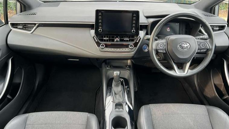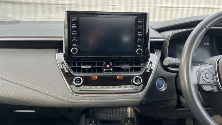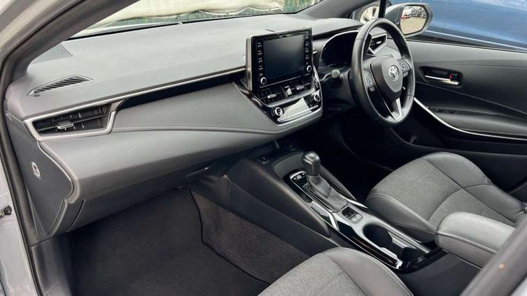 7" Multi information display screen, Bluetooth telephone connectivity, Connected car functionality upgrade, tracker, remote status and e-care, Door trim and centre console material, Dynamic radar cruise control (with RSA) including switch on steering wheel, E-call, Electrically assisted power steering, EV drive indicator, Intelligent park assist, Lane Departure Alert (LDA) switch on steering wheel, Memory on adjustable speed limiter, Push button start, Reversing camera, Smartphone integration with Apple CarPlay and Android auto, Gasoline particulate filter, Vehicle Stability Control (VSC), 6 speakers, 8" Touchscreen with MM19 Multimedia system and voice recognition, AM/FM radio, DAB Digital radio, Toyota touch 2 with go navigation system, USB and Aux in connectors + 12V front outlet, Anti-jam protection on power windows, Auto dimming inside rear view mirror, Auto up and down function on all power windows, Automatic folding mirrors, Automatic headlights with high beam assist, Black metallic surround on lower front grille, Black toyota logo in front, Black window frames, Body colour rear spoiler, Body coloured bumpers, Body coloured door mirrors, Body coloured outside door handles, Follow me home headlights, LED daytime running lights, LED front fog lights, LED Headlights, LED High mounted stop light, LED rear combi lights with LED lightguide, Power adjustable heated door mirrors, Power front windows, Power rear windows, Privacy glass, Rain sensing wipers, Rear side wing doors, Rear window defogger, Rear window wiper, Rear wing door, Reverse tilting door mirrors, Shark fin antenna, Time adjustment on intermittent wiper, Turning signal integrated indicators in door mirrors, Unique lower skirt, Unique side rocker with black insert, UV-filter on driver and passenger windows, 3 rear headrests, 3 seat bench in 2nd row, 3 spoke leather steering wheel + gear knob, 60/40 split folding rear seat, Adjustable speed limiter switch on steering wheel, Audio, multimedia and telephone switches on steering wheel, Blue ambient interior illumination to centre tray, front cup holders and front door trim, Boot light, Centre room light, Clean air filter, Driver and front passenger personal light, Driver and passenger assist grip, Driver and passenger sun visor with mirror and light, Dual zone automatic air conditioning with ECO mode switch, Fabric/synthetic leather upholstery, Front and rear cup and bottle holders, Front door pockets, Front head restraints, Front passenger seat, Heated driver and front passenger seats, Illuminated entry system in room lamp, ISOFIX seat fixing (2 fixings on rear outer seats), Leather gear shift with satin chrome on gear shift console, Leather style armrests, Manual height adjustable for driver and front passenger seat, Parcel shelf, Passenger seat back pocket, Pollen filter, Power adjustable lumbar support on driver seat, Power window switches with satin chrome inserts, Rear armrest with 2 cupholders, Rear passenger coat hooks (2), Satin chrome inside door handles, Shopping bag hooks in luggage compartment, Sliding armrest on centre console box, Slow opening glovebox with lights, Tilt/telescopic steering column, Voice recognition switch on steering wheel, Whiplash Injury Lessening (WIL) feature (active headrest) for seats, Parking pack - Corolla, Toyota safety sense 2 pack - Corolla, 3x3 point rear seatbelts, Adjustable driver and front passenger seat belt extender to top anchor point, Anti lock braking system + Electronic brake force distribution, Brake assist function, Child locks on rear doors, Downhill Assist Control (DAC), Electronic parking brake, Emergency brake light signal (EBS), Front passenger airbag on/off switch, Front seatbelt reminder, HAC - Hill start assist control, Rear seat belt reminder, Seatbelt pretensioners and force limiters, Supplemental restraint system (SRS) 7 airbags - dual driver, dual side curtain, side impact and driver knee airbags, Traction control, Tyre pressure warning system, Acoustic vehicle alert system (AVAS), Alarm with motion sensor and immobilizer, Remote central locking + deadlocks, Smart entry, Satin chrome dash trim, Soft touch texture on upper dashboard, Unique wheel finish with red wheel cap,