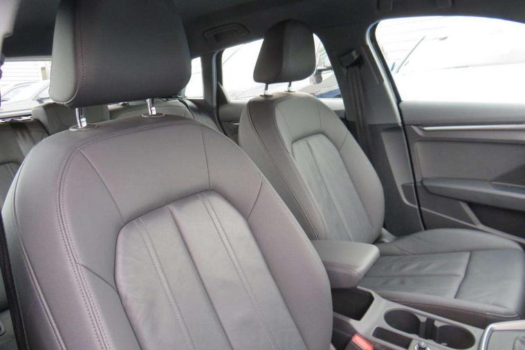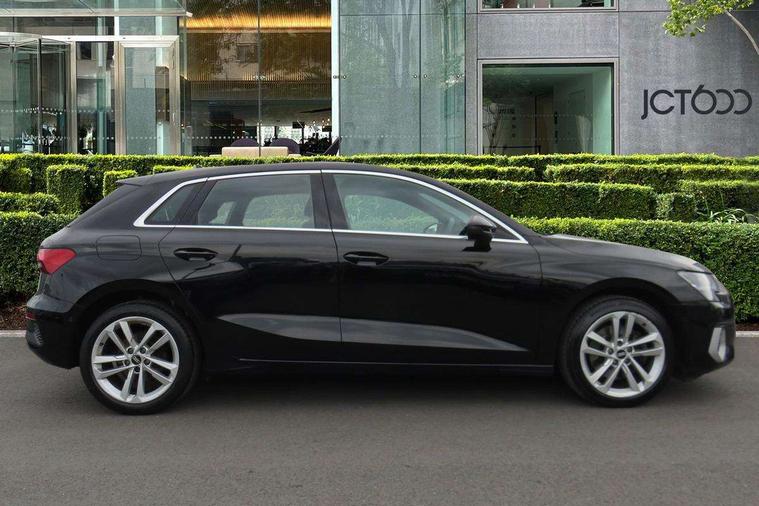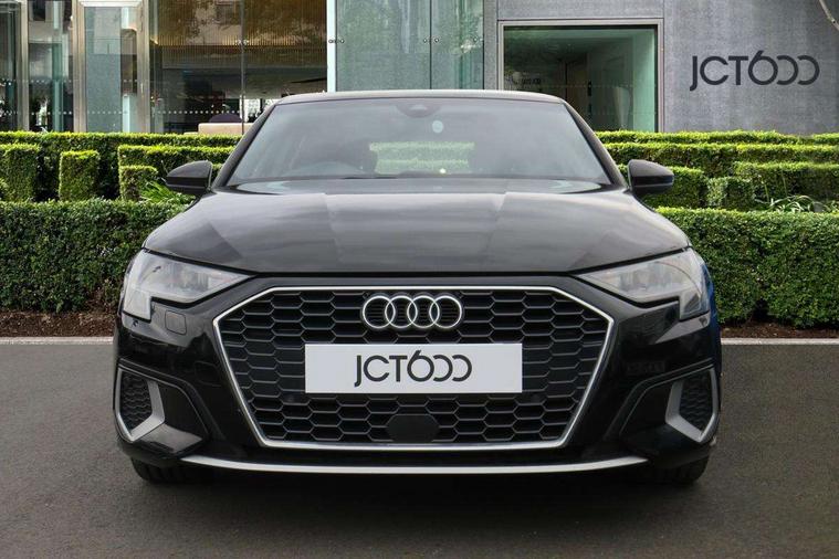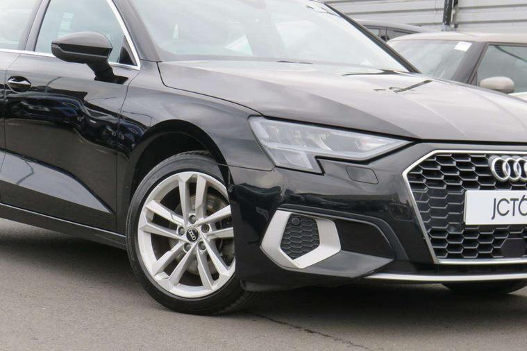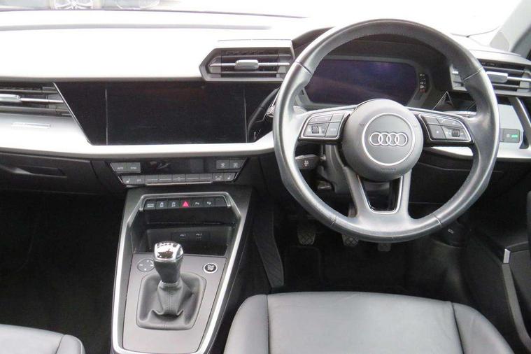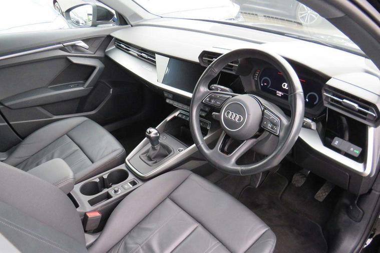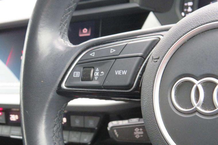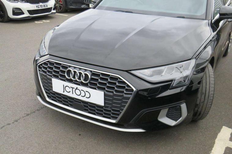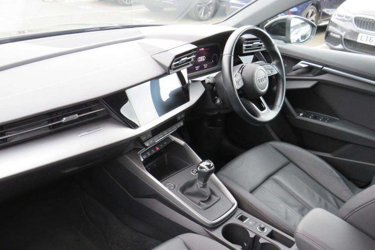 Audi connect emergency call and service, Audi drive select (Auto, Comfort, Dynamic and Individual), Audi smartphone interface, Audi Virtual Cockpit - 10.25" digital and colour instrument cluster, Automatic start/stop system with recuperation, Bluetooth interface, Collision avoidance assistant, Cruise control, Electromechanical power speed sensitive steering, Lane departure warning system, MMI Navigation Plus with high resolution 10.1" colour touch screen display, Rear parking sensors, Service indicator, Trip computer, Voice control system with natural language interaction, Standard suspension, 2xUSB-C connection with data and charging functions, 6 passive loudspeakers, DAB Digital radio, Acoustic glass windscreen, Aluminium window trim, Auto dimming frameless rear view mirror, Body colour exterior mirrors, Body colour roof spoiler, Electrically adjustable/heated/folding/auto dimming door mirrors with integrated LED indications + kerb view function for passenger side, Front electric windows, LED daytime running lights, Light and rain sensors, Rear electric windows, Rear window, rear door windows and rear side windows in clear glass, Rear wiper, 12V socket and storage compartment in front centre console, 40/20/40 split folding rear seat bench with cupholder, Dual zone electronic climate control, Front and rear centre armrest, Front and rear headrests, Front door sill trims with aluminium inlay, Front/rear floor mats, Height and reach adjustable steering wheel, Interior lighting - Front and rear roof module including reading lights, glove compartment light and right hand side, Luggage compartment floor covering, Manual boot compartment lid, Manually adjustable front seats, Seat side bolsters, Steel grey cloth headlining, Twin leather upholstery, Aluminium interior elements pack - A3 Sportback, Sport styling pack - A3 Sportback, 3x3 point rear seat belts, Driver and front passenger airbag with passenger airbag deactivation, Electronic Stabilisation Control (ESC) including ABS, ASR and EDL, First aid kit with warning triangle and 2 safety vests, Front side airbags with head airbags and interaction airbag, Hill hold assist, Pre-sense front with pedestrian and cyclist detection, Seatbelt monitoring, Tyre pressure loss indicator, Anti theft alarm, Anti-theft wheel bolts, Electronically operated child lock, Immobiliser, Remote control central locking, Inlays with silk effect paint in platinum grey,