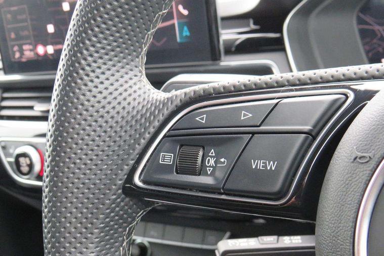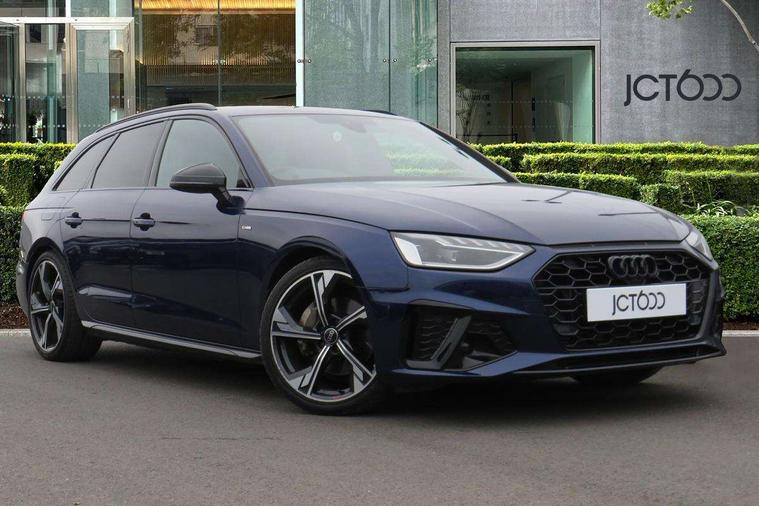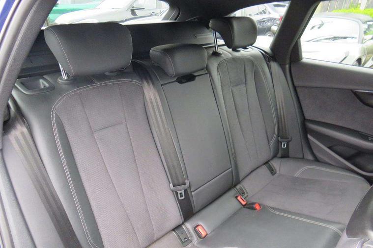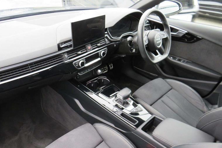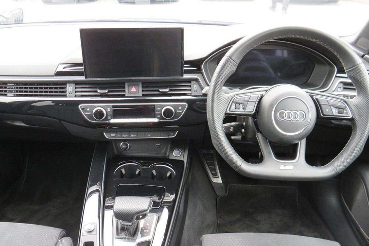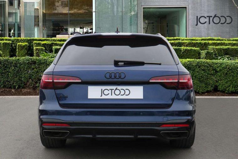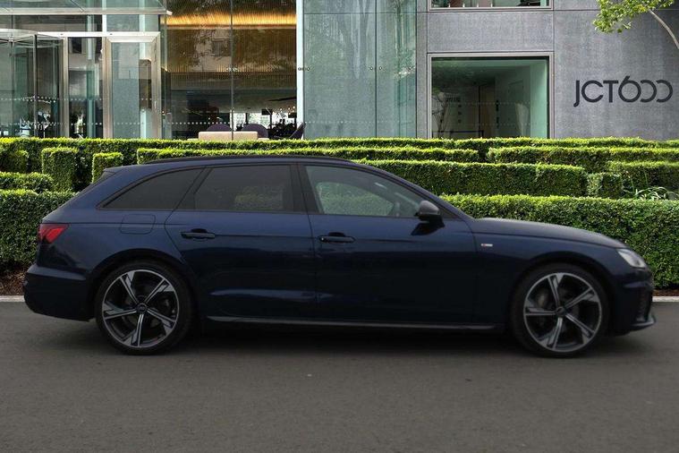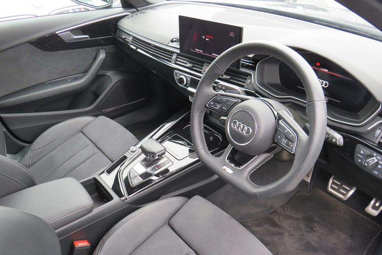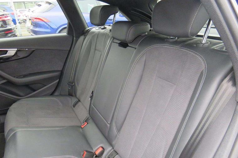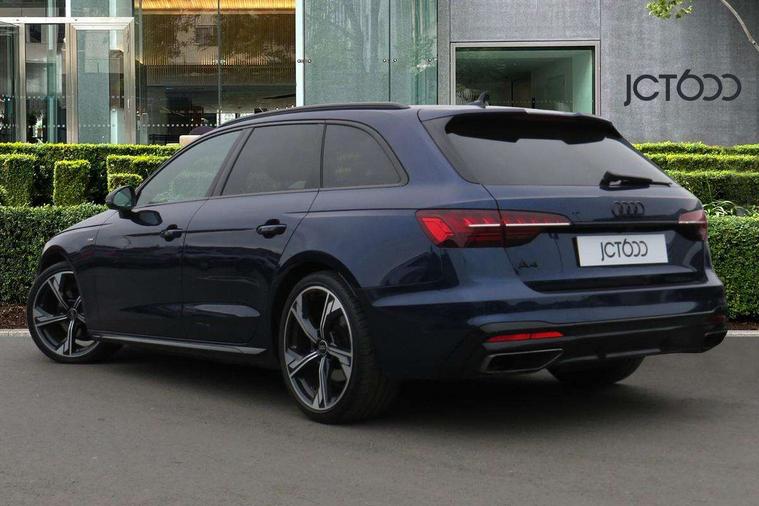 Audi connect safety and service (e-call), Audi connect with Amazon Alexa Integration, Audi drive select, Audi smartphone interface, Audi virtual cockpit, Automatic start-stop system with coasting functionality and efficiency programme, Bluetooth interface, Electromechanical power steering, Email, calendar and text messages displayed via MMI, MMI Navigation plus with MMI touch includes 10.1" high resolution colour MMI display, 3D map, Power operated tailgate, Voice control system, 54 litre fuel tank, Sports suspension lowered by 23mm, 2 USB charging ports, 8 passive loudspeakers, DAB digital radio reception, Audi beam uses LEDs to project the audi logo onto the ground as you exit your A4, Auto dimming rear view mirror, Black Audi rings and black badging (model name in black badging, no engine badging), Body colour door handles, Body colour front spoiler lip, Body colour side sill trim, Electrically folding auto dimming/adjustable/heated door mirrors with LED side indicators and kerb view function for passenger side, Exhaust tailpipes in high dark chrome, Front and rear bumpers with side skirts, Grained matt black side air inlets with matt aluminium silver inlay, High beam assistant, High gloss black B pillar trims and triangular rear door trim, LED headlights with LED rear lights + dynamic rear indicators + headlight adjustment and high beam, turning light + LED daytime running lights, LED third brake light, Privacy glass, Rain and light sensors, Rear diffuser in matt black with trim strip in matt aluminium silver, Rear side wing doors, Rear wiper, RS4 rear spoiler in body colour, S Line badges on the front wings, S Line roof edge spoiler, Variable intermittent front wash/wipe, Windscreen with acoustic glazing, 4 way electric lumbar support for driver and front passenger, 40/20/40 split folding 3 rear seat bench in 3 parts with rear centre armrest, Black cloth headlining, Black perforated leather gearknob, Contrast stitching on seats, steering wheel and gear lever gaiter, Deluxe 3 zone electronic climate control, Door sill trims with aluminium inlay, Electric load area cover, Front and rear head restraints, Front centre armrest, Heated front seats, Illuminated door sill trims with S logo, ISOFIX child seat mounting and top tether, Manual seat adjustment, Single front passenger seat, Stainless steel pedals and foot rest, Black styling pack - A4 Avant, LED Interior light pack - A4/S4, 3 rear seatbelts, 6 airbags - Driver, front passenger, curtain and side windows, Electronic Stabilisation Control (ESC) including ABS, ASR and EDL, Hill hold assist, Multi collision brake assist, Pop-up bonnet for pedestrian protection, Pre sense city, Rear door child safety locks, Seatbelt monitoring, Warning triangle and first aid kit, Anti theft alarm, Anti theft wheel bolts, Central locking, Keyless Go, Piano black finish inlay, 19" 5 arm flag design Audi sport diamond cut alloy wheels in gloss anthracite black, Tool kit, Tyre repair kit,