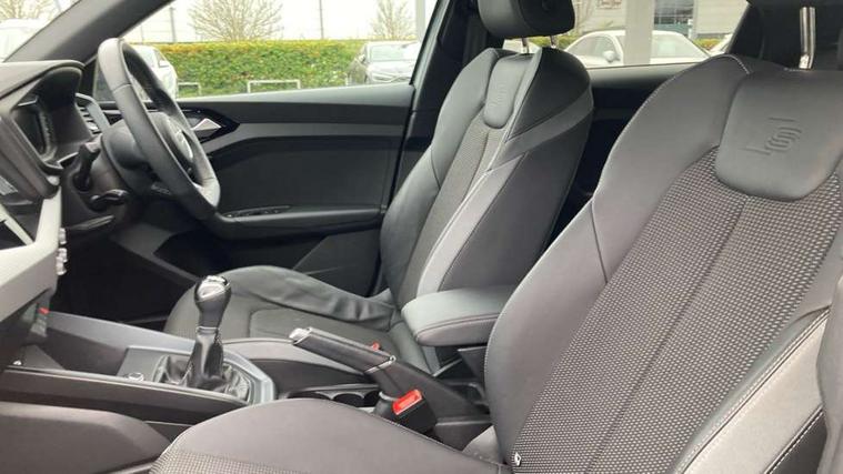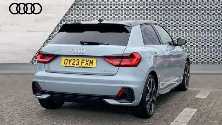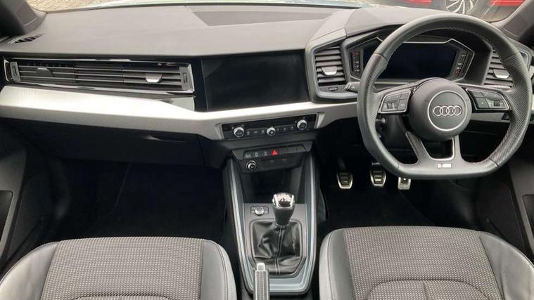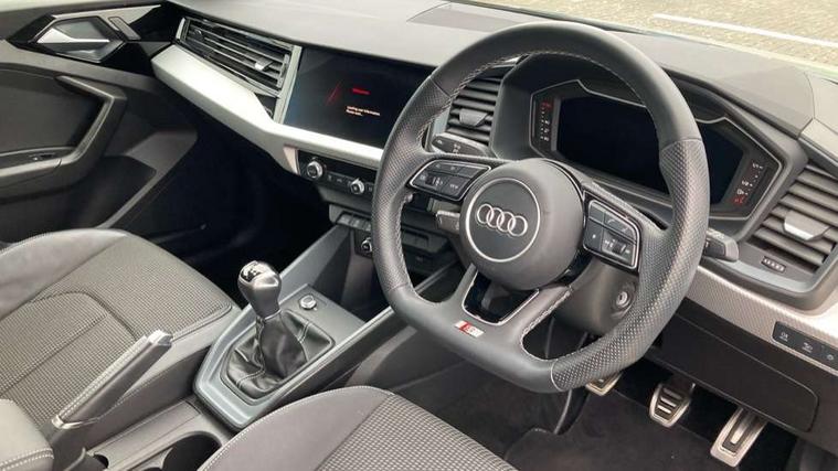 10.25" Digital instrument cluster display classis style instrument dials + speed, odometer, time, outside temperature, telephone menu + fuel level warning, Audi drive select - power steering assistance + engine, Audi smartphone interface with connect compatible smartphone via USB directly MMI display + Nav, music, third party apps controlled via MMI controller, Automatic start/stop system, Bluetooth interface, Cruise control, Driver's information system, Electromechanical power steering, Emergency e-call, Emergency services call system, Lane departure warning system, Service interval indicator, Speed limiter, Voice control system, Washer fluid level indicator, Sports suspension, 1 x SDXC card reader, 2 x USB type C connection points, DAB Digital radio, MMI radio plus with 8.8" colour MMI display screen and MMI touch, Auto dimming rear view mirror, Black door mirrors, Black side skirts, Body coloured bumpers, Door sill trims with aluminium inlays and logo, Electric front and rear windows, Electrically adjustable, heated, folding door mirrors with integrated LED side indicator, Front side air inlets in grained matt black and C frame in anthracite black, Front wing badges, Heat insulating glass windscreen and side windows, Heated rear windscreen, High level LED brake light, LED headlights with LED rear lights + dynamic rear indicators + headlight adjustment and high beam, turning light + LED daytime running lights, Radiator protective grille frame in matt aluminium silver, Rain and light sensors, Rear diffuser strip in matt titanium black, Rear fog lights, Rear side wing doors, Rear wing door, Rear wiper, Side front spoiler lips in grained matt black, 12V socket in centre console with two cup holders, 3 rear seats with headrests, 3 seat bench in 2nd row, 3 spoke flat bottomed multi-function plus leather steering wheel with S badging, grips in preforated leather and contrast stitching, 40:60 Split folding rear seat or folded fully, Black cloth headlining, Driver and passenger seat with manual height adjust with forward and backwards adjustment, Front and rear black floor mats with contrast stitching in fine silver, Front head restraints, Front passenger seat, Height and reach adjustable steering wheel, ISOFIX child seat mounting for front passenger and outer rear seats including top tether attachment point of outer rear seats, Leather gear knob with aluminium trim, Luggage compartment light with front and rear reading lights, Manually adjustable lumbar support in front seats, Stainless steel pedals, Black styling pack - A1 Sportback Black Edition, LED interior lighting pack - A1, Luggage compartment pack - A1, 3x3 point rear seatbelts, Audi pre-sense front with pedestrain and cyclist recognition, Brake assist function, Driver and front passenger airbag with front side and head airbags, Electronic Stability Control including ABS, EBD, ASR and EDL, Front passenger airbag deactivation switch, Hill hold assist, Manual rear child locks, Seatbelt height adjustment for front seats, Seatbelt monitoring, Tyre pressure warning light, Warning triangle and first aid kit, Anti theft alarm, Anti theft wheel bolts and loose wheel warning, Immobiliser, Remote central locking with 2 foldaway keys, Aluminium trim for control switches, air vents and digital instrument cluster, Silver grey inlays polygon structure in diamond paint finish, Structured grey accent areas including air vents, door handle recesses and centre console in quartz paint finish, 18" 7 spoke rotor design alloy wheels in gloss anthracite black, diamond cut finish,