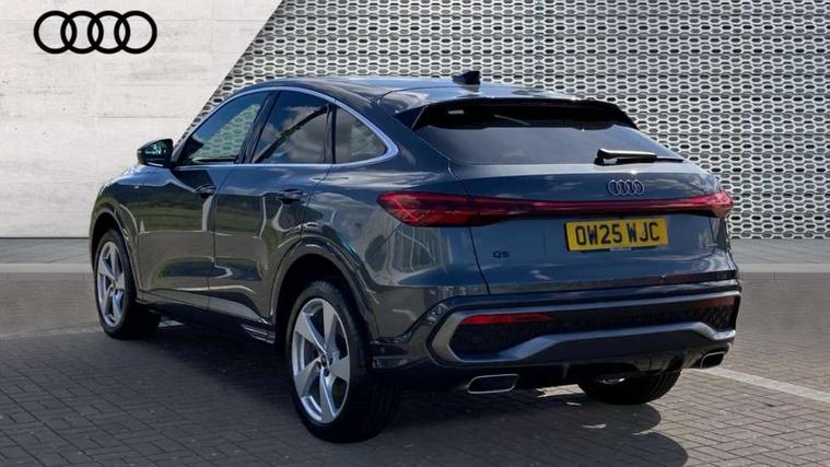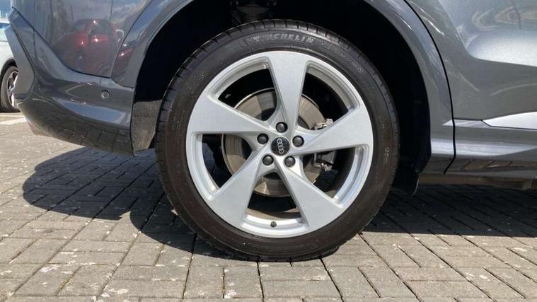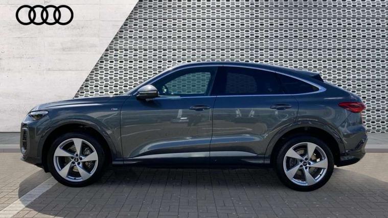Adaptive cruise control, Advanced driver attention alert, Audi application store, Audi connect emergency call and service, Audi drive select, Audi smartphone interface, Audi virtual cockpit plus with 11.9" OLED colour display, Camera based traffic sign recognition, Fatigue monitor, Front cross traffic intersection assist, Lane departure warning system, MMI navigation plus with high resolution 14.5" OLED touchscreen colour display, Park assist plus, Parking system plus with 360 display, PAS, Reversing camera, Swerve assist and turn assist, Traffic sign based speed limiter, 2 USB-C ports in both the front and rear, Audi sound system impressive sound with 8 loudspeakers including centre speaker and subwoofer, 6-channel amplifier with a total output of 180 watts, DAB Digital radio, Smartphone compartment with wireless charging, Auto dimming rear view mirror, Body coloured door mirrors, Coming/leaving home lighting function, Electrically adjustable heated and folding + automatically dimming exterior mirrors, Front and rear electric windows, Front door sill trims with aluminium inlays, illuminated with 'S' logo, Grill frame, inlay and front air inlets in matt anthracite chrome, Headlight cleaning system, Heated rear window, High beam assist, High gloss window surrounds, LED headlights plus incl. digital DRL, dynamic coming and leaving home function with turning/all weather/motorway/manouevring and intersection lights, LED rear lights pro incl. dynamic rear indicators and illuminated light strip with animated coming and leaving home function, Logo projection light in exterior mirrors, Privacy glass, Projection third brake light for rear window in LED, Radiator grille in phantom black, Rear and side windows with heat insulating glass, Rear honeycombe grille in matt black with inlay in matt anthracite chrome, Rear side wing doors, Rear wash/wipe, S Line badge on the front wings, S line bumpers in contrasting Volcano grey metallic paint finish, Towbar preparation, Windscreen with acoustic glazing, 3 rear head restraints, 3 seat bench in 2nd row, 3 spoke leather steering wheel with multi-function buttons with touch control, flattened on top and bottom, with S badging and contrast stitching, 40:20:40 split folding rear seat bench with centre armrest and cup holders, Comfort centre armrest front, Deluxe 3 zone electronic climate control, Front and rear floor mats, Front seats with manual adjustment for position and 4-way electric lumbar support, Front sport seats with integrated head restraints, Headlining in black cloth, Heated front seats, i-Size child seat mounting on the front passenger side and outer rear seats, i-Size and top tether on the outer rear seats, Interior trim in aluminium look, Luggage compartment lid, electrically opening and closing, Manual steering column adjustment, S embossed logo on front sport seats, Single front passenger seat, Softwrap in leatherette, Stainless steel pedals and footrest, Steering wheel grips in perforated leather and shift paddles, Ambient lighting package plus - Q5, Storage and luggage compartment pack - Q5, 3x3 point rear seatbelts, ABS, Acoustic vehicle alerting system, Driver and front passenger airbag with passenger airbag deactivation, Electric child safety locks, First aid kit with warning triangle and high visibility vests, Front emergency brake assist, Front side airbags with head airbag system and front interaction airbag, Hill hold assist, Rear seat occupant reminder, Tyre pressure loss indicator, Anti theft alarm, Anti-theft wheel bolts, Remote control key with SAFELOCK and keyless go, Accent surfaces and control buttons in gloss black, Anthracite matt brushed aluminium inlays with linear embossing, Black dashboard with contrast stitching, Upper and lower interior elements in artificial leather, Tyre repair kit,