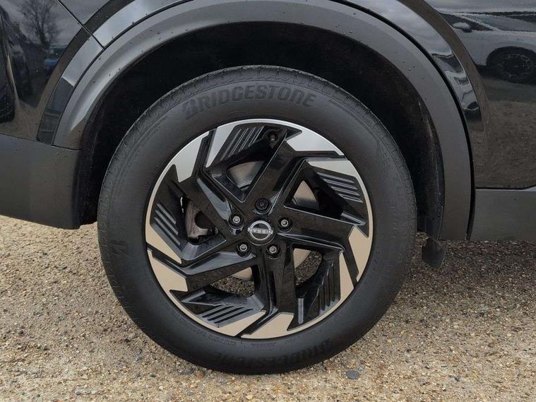 360 degree Intelligent around view monitor with moving object detection, Blind spot intervention, Blind spot warning, Drive assist custom mode, Drive modes (sport, normal, eco), Driver drowsiness and attention warning, Electric speed sensitive power steering, Emergency and breakdown call, Emergency lane keep assist, Emergency Stop Signal (ESS), Engine start/stop button, Event data recorder, Front and rear parking sensors, Full Digital 12.3" TFT Digital Combimeter, Google virtual personal assistance, Idle stop/start system, In-car WIFI hotspot, Intelligent Cruise control (ICC), Intelligent forward collision warning, Intelligent speed assist, Lane departure warning system, Nissan connect 12.3 inch touchscreen infotainment system, Nissan connect navigation with google maps, Nissan connect services 2.0 (Google Automotive System), Outside temperature sensor, Rear cross traffic alert, Reversing detection, Traffic jam pilot, Wireless Apple CarPlay/Android Auto, Wireless charging pad, Limited slip differential, 2 front USB-C ports, 2 rear USB-C ports, 6 speakers, AM/FM audio system with DAB, Bluetooth audio streaming, Auto rear wiper when reversing, Body colour mirror caps, Body coloured door handles, Bodyside mouldings, Chrome side window finisher, Electric auto folding door mirrors, Electrically adjustable and heated door mirrors with LED turn indicator, Follow me home headlights, High beam assist, Intelligent auto headlights, LED 3rd brake light, LED daytime running lights, LED Headlights, LED rear lights, One touch front and rear electric windows with remote opening and closing, One touch passenger window, Partially body coloured bumpers, Rear privacy glass, Rear roof spoiler, Rear side wing doors, Rear styling plate, Shark fin antenna, Splash free rain sensing wipers, Super UV and infrared cut glass, Three blink turn signal, 3 bench rear seats in 2nd row, 3 rear headrests, 60/40 split folding rear seat bench, Chrome interior door handles, Cloth upholstery, Dark headlining, Driver seat back pocket, Dual zone automatic climate control with pollen filter, Front door with bottle holders, Height adjustable front headrests, Luggage board system, Luggage space lighting, Multifunction steering wheel, Passenger seat back pocket, Rear door bottle holders, RGB ambient light (Full area coverage), Single front passenger seat, Smooth leather steering wheel, Steering wheel gearshift paddles, Tilt/telescopic adjustable steering wheel, Two rear isofix child seat anchorage points with top tether, 3x3 point rear seatbelt pretensioners + load limiters, Autonomous emergency braking, Child locks on rear doors, Curtain and front side, far side airbags, Driver and passenger airbags, Driver, passenger and 2nd row rear seat belt reminder, Electric handbrake with auto hold function, Front seatbelt pretensioners + load limiters, Height adjustable front seatbelts, Hill start assist, intelligent front emergency braking, Rear automatic braking, Tyre pressure monitoring system, Vehicle dynamic control, Engine immobiliser, Intelligent key with walk away lock and approach unlock functions, Remote central door locking with deadlocking, Thatcham alarm, 18" Diamond cut alloy wheels, Tyre puncture repair kit,