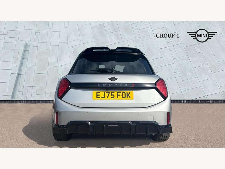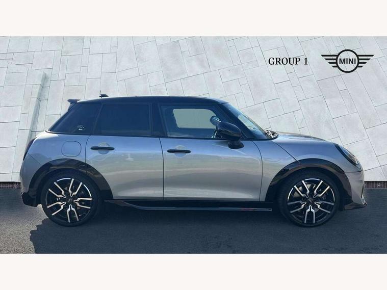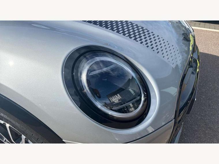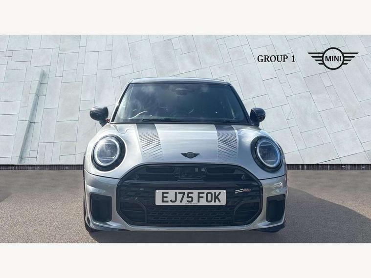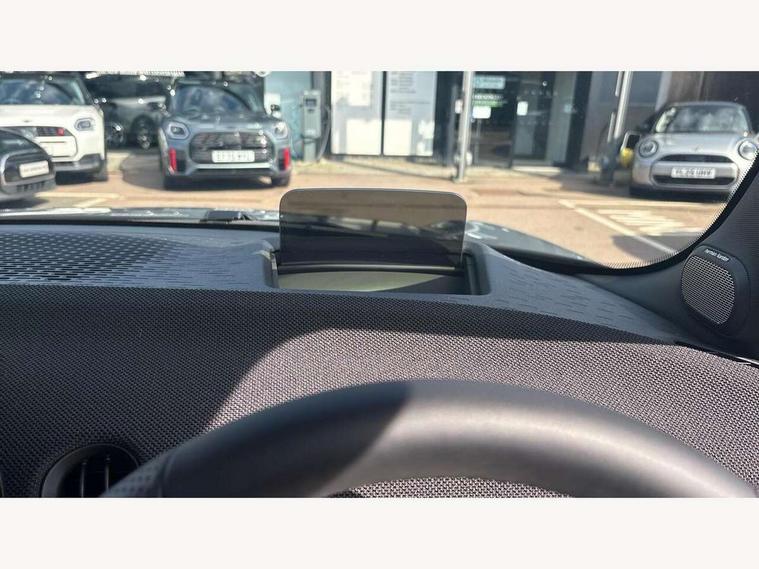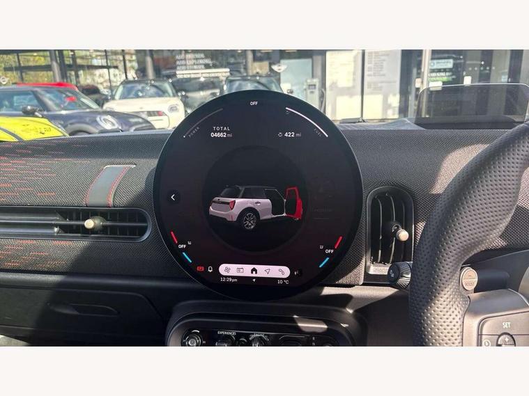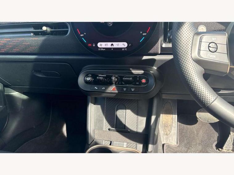 Central toggle bar, Circular OLED Screen, Compatible mobile phone bluetooth with audio streaming, Cruise control, Digital instrument cluster, Electro-mechanical speed dependant steering assistance, Emergency call service, Gaming controller with intelligent personal assistant voice update, MINI Experience Modes, Mini navigation system, On board computer, Service interval indicator, Tailgate, 7 speed sport transmission with double clutch, Adaptive suspension, DAB Digital radio, Front USB charger, Personal eSim, Rear USB charger, Adaptable light signatures, Auto headlights, Electric adjustable heated door mirrors, Electric front+rear windows, Front and rear apron, Heated rear window, Heated windscreen washer jets, High gloss hexagonal patterned grille surround, Jet black mirror caps, LED 3rd brake light, LED daytime running lights, LED indicator lights, LED rear lights, Rain sensor window wipers, Rear fog lights, Rear roof spoiler with airblades, Rear side wing doors, Rear window wiper, 2 zone automatic air conditioning, 3 seat bench in 2nd row, 60/40 rear seat bench, Ambient lighting, Black lower band in high gloss, Cupholders, Dark headliner, Floor mats, Front and rear head restraints, Front compact armrest, Heated steering wheel, Height adjustable passenger seat, Lidded storage box in Black/Red knit, Luggage compartment lighting, Partially perforated vescin steering wheel with red accent, black/red decorative strap, Single front passenger seat, Steering wheel paddle shift, Sunvisors with vanity mirrors, Driving assistant pack - Cooper Hatchback, Level 1 pack - Mini Hatchback, Park assistant pack - Cooper Hatchback, 3 point seatbelts on all five seats, 6 Airbags - front, side, head and seat belt tensioners, Anti-lock braking system (ABS), Brake caliper in Black with JCW badge, Child locks on rear doors, DSC - Dynamic Stability Control, Electronic parking brake, Front and rear disc brakes, Front ISOFIX (iSize), Front passenger airbag deactivation, JCW Sport Brakes, Traction control, Tyre pressure monitoring system, Alarm, Immobiliser, Remote central locking, Black/Red decorative dash strap, Tyre repair kit,