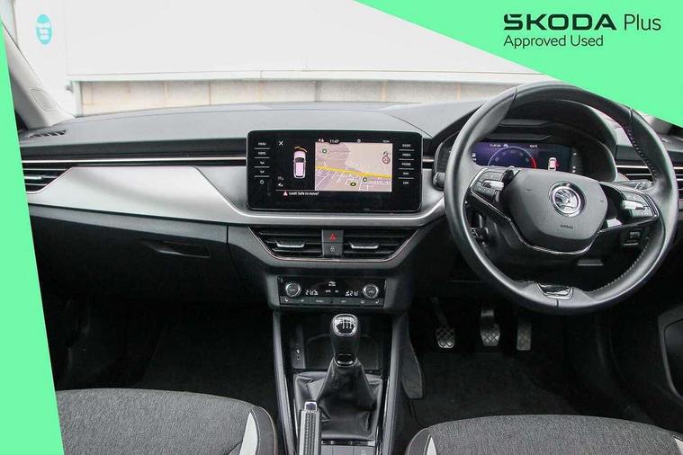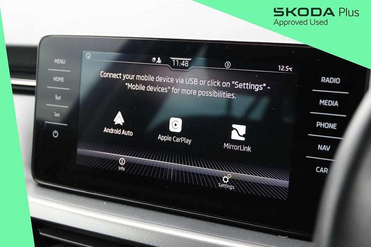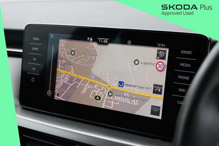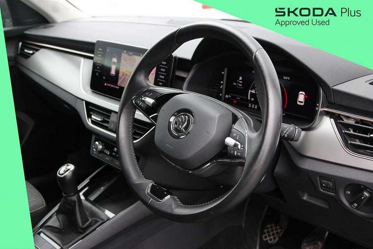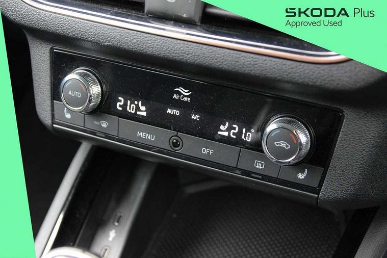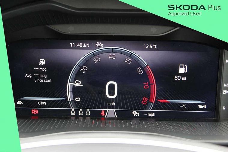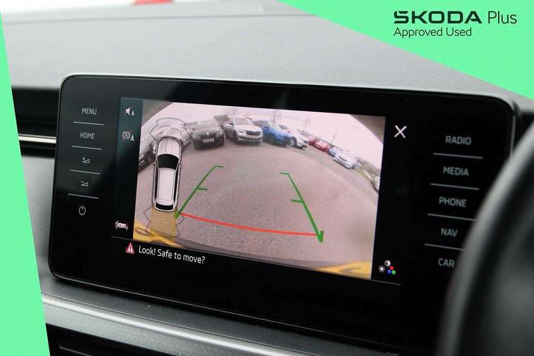 Amundsen satellite navigation with 9.2" touchscreen display, voice control, virtual cockpit and web radio, Bluetooth system, E-call, Front assist system, Gesture control, PAS, Rear view camera, Service indicator, Speed limiter, Virtual cockpit with 10.25" display, Wireless SmartLink for apple car play, android auto and mirrorlink, 8 Speakers, Auxiliary input socket, DAB Digital radio, Auto dimming rear view mirror, Body colour bumpers, Body colour door mirrors and handles, Chrome grille surround, Electric folding door mirrors, Electrically adjustable and heated door mirrors, Front and rear electric windows, Headlight range control, Heated rear window, LED rear lights - low functionality, Light sensors, Privacy glass, Rear fog lights, Rear side wing doors, Rear wiper, 12V Accessory socket in centre console, 3 seat bench in 2nd row, Chrome inner door handles, Dual zone climate control, Front head restraints, Glove compartment with illumination, Ice scraper, Isofix child seat fittings on outer rear seats, ISOFIX on front passenger seat, Manual lumbar support for front seats, Rake/reach adjustable steering wheel, Reading lights, Single front passenger seat, Sun visors with illumination on front passenger, Textile floor mats, Third rear headrest, Top tether for front passenger seat, Umbrella in driver's door, 3x3 point rear seatbelts, Airbags - driver and front passenger, ESP, Front passenger airbag deactivation switch, Front side airbags with curtain airbags, Hill hold control, Manual parking brake, Manual rear child locks, One tone horn, Rear disc brakes, Seatbelt reminder for driver an co-driver, Traction control, Tyre pressure monitor, Anti-theft alarm system with interior monitoring, backup horn, towing protection and remote central locking with SAFE system, Anti-theft wheel bolts, Electronic engine immobilizer, Latice curved decorative insert on the dashboard with hot stamping in copper and white ambient lighting white,