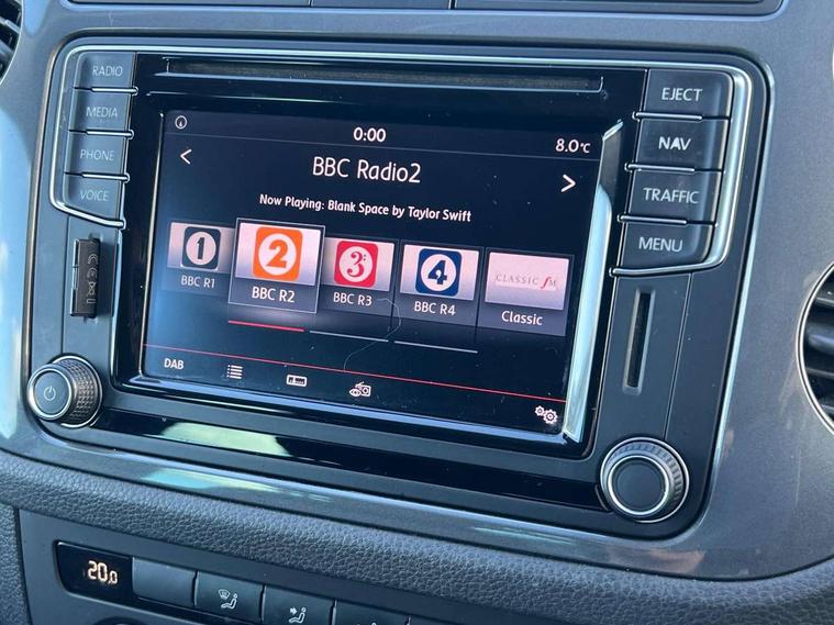 Bluetooth Telephone preparation, Discover navigation system with 6.5" colour touch screen and 8 speakers, Fatigue detection system, Lights on warning, Multifunction computer - Highline, Park assist with front and rear parking sensors and optical display, Service interval indicator, Speed sensitive power steering, Diesel particulate filter, Aux-in socket, DAB Digital radio, MDI with USB/iPod connection cables, MP3 Compatible CD player, SD card slot, 18" front module, Auto dimming rear view mirror/rain sensor, Automatic coming home lighting, Body colour door handles, Body colour door mirrors with integral indicators, Body coloured bumpers, Chrome roof rails, Chrome side window surrounds, Chrome trimmed front air intake surrounds, Cornering front fog lights, Dusk sensor + auto driving lights, Electric heated + adjustable door mirrors, Front and rear electric windows, Green tinted heat insulating glass, Heat insulated tinted glass from B pillar back, Heated rear window, Rear windscreen washer and wiper with interval delay, Windscreen wipers/ intermittent wipe + 4 position delay, 12V socket in luggage compartment, 2 Zone electronic climate control with automatic air recirculation, 3 rear headrests, 3 spoke multi-function leather steering wheel and gearknob, 5 boot load lashing points, 60/40 split folding rear seat, Foldable front passenger seat backrest, Front centre armrest with storage + rear 2 air vents + cupholders, Front cupholders x 2, Front footwell illumination, Front reading lights, Front seat back storage pockets, Front seatback folding tables, Front sports seats, Height/reach adjust steering wheel, Illuminated vanity mirrors, Interior light with delay, Isofix Preparation 2 Rear child seats, Load through provision with 2 cupholders when folded, Lockable cooled glovebox, Luggage compartment lighting, Passenger seat height adjuster, Passenger seat lumbar adjust, Removable luggage cover, Sliding/reclining rear seats, Storage compartment in driver's door, Storage compartment in passenger's door, Storage compartment in roof console, Storage tray + 12V socket in centre console, Storage tray on dashboard, Storage under front passenger seat, White adjustable panel illumination, 3 rear 3 point seatbelts, ABS+EBD+Brake assist, Curtain airbags, Driver/Front Passenger airbags, Driver/Passenger whiplash optimised head restraints, Electronic parking brake with auto hold, ESP with EDL + ASR, Front side airbags, Height adjustable front 3 point seatbelts + pretensioners, Passenger airbag deactivate switch, Seatbelt warning lamp and buzzer, Warning triangle, Alarm with interior protection, Electronic engine immobiliser, Keyless entry, Remote central locking with 2 remote folding keys, 'Anthracite-Metallic' interior trim, Silver decorative inserts in door panels, Steel finish air vent surround, Steel space saver spare wheel,
