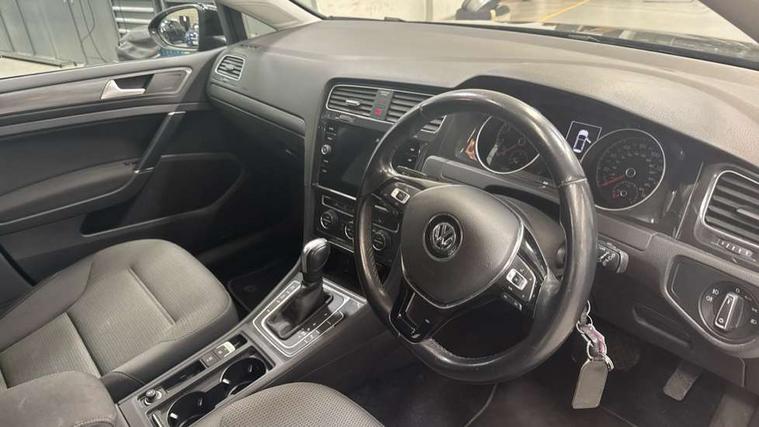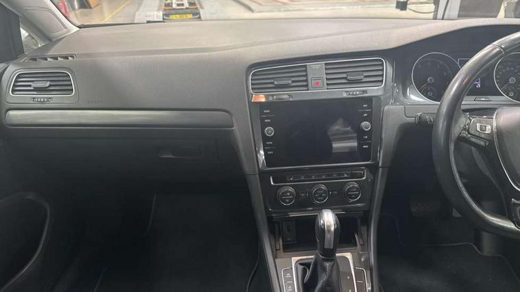 'Lights On' Reminder warning buzzer, ACC - Adaptive cruise control with front assist, forward collision warning, distance monitoring, city emergency brake and speed limiter, Bluetooth telephone and audio connection for compatible devices, Brake pad wear indicator warning light, Driver alert system, Driving Mode Selection with four preset modes - Eco, normal, sport or individual modes, Multifunction computer with visual gear change recommendation for fuel consumption, Power assisted speed sensitive electro-mechanical steering, Push tank flap, Speed limit display, Speedo, rev counter, electronic odometer, trip, service interval display, exterior temperature and fuel gauge, Stop/start system, Think blue trainer driver tips and journey analysis, Warning buzzer and light for front seatbelts unfastened, Battery regeneration during braking, XDS electronic differential lock, Composition media system, DAB Digital radio receiver, Driver Personalisation profile selection, MP3/WMA compatability, Multi device interface (MDI) via USB connection, Premium USB cable in choice of either Apple or Android smartphone compatibility, SMS Functionality, Title and cover art display, USB and SD card connectivity, Volkswagen media control, Black front air intake and radiator grille with chrome insert, Black rear diffuser, Body colour bumpers, Body colour door handles, Body colour door mirrors with integrated indicators, Dusk sensor + automatic driving lights, Electric front windows, Electric rear windows, Electrically adjustable and heated door mirrors, Fully galvanised body, Heated rear windscreen, High level 3rd brake light incorporating LED Technology, LED front fog lights with static cornering light function, Range adjustable headlights via infotainment system with LED daytime running lights, Rear fog lamp, Rear number plate lights incorporating LED technology, Rear tinted glass 65% light absorbing from B pillar backwards, Rear window aerial, Rear window wash/wipe with intermittent wipe, Reflectors in all doors, Tailgate with integrated rear roof spoiler, Windscreen wipers/ intermittent wipe + 4 position delay, 12V socket in luggage compartment, 3 rear headrests, 4 load lashing points in luggage compartment, 60/40 split folding rear seat backrest, Bag hook in luggage compartment x 2, Climate control - 2 zone electronic air conditioning with automatic air recirculation and allergy filter, Cooled glovebox, Cover for storage compartment in centre, Dust/pollen filter, Front and rear reading lights X 2, Front centre armrest with storage compartment and two rear air vents, Front seat back storage pockets, Grab handles front x 2, rear x 2 with integrated coat hooks, Height and reach adjustable steering wheel, Illuminated vanity mirrors, Instrument lighting white adjustable panel illumination, Interior light delay, Isofix preparation for 2 rear child seats, Load through provision with rear centre armrest and cupholders x2, Luggage compartment lighting, Overhead storage box, Pearl grey headlining, Storage box in luggage compartment, Storage compartment in roof console with cover, Storage compartments in centre console, Storage compartments in front doors, Storage compartments in rear doors, Stowable luggage compartment cover, Sun visors, Variable boot floor, height adjustable and removable, Convenience Pack - Golf, Mirror pack - Golf, Winter pack - Golf, 3 rear three point seatbelts, Airbags - Driver's and front passenger's, curtain airbag, Driver's knee, front side impact and passenger's airbag deactivation switch, Anti-lock Braking System (ABS) with Hydraulic Brake Assist (HBA), Automatic post collision braking system, Child locks on rear doors, Driver/Passenger optimised head restraints, Electronic parking brake with auto hold, Electronic stability control (ESC) including Electronic differential lock (EDL) and ASR (Traction control) with deactivation via infotainment system, Front ventilated disc brakes and rear disc brakes, Pre crash preventive occupant protection, Three point height adjustable front seatbelts with tensioners, Tyre pressure loss indicator, Alarm with interior protection and deactivation via infotainment system, Electronic engine immobiliser, Brushed dark silver decorative inserts in dash and door panels, Chrome plated air vent surround, Chrome-plated light switch surround, Polar night black decorative inserts in centre console, Steel space saver spare wheel,