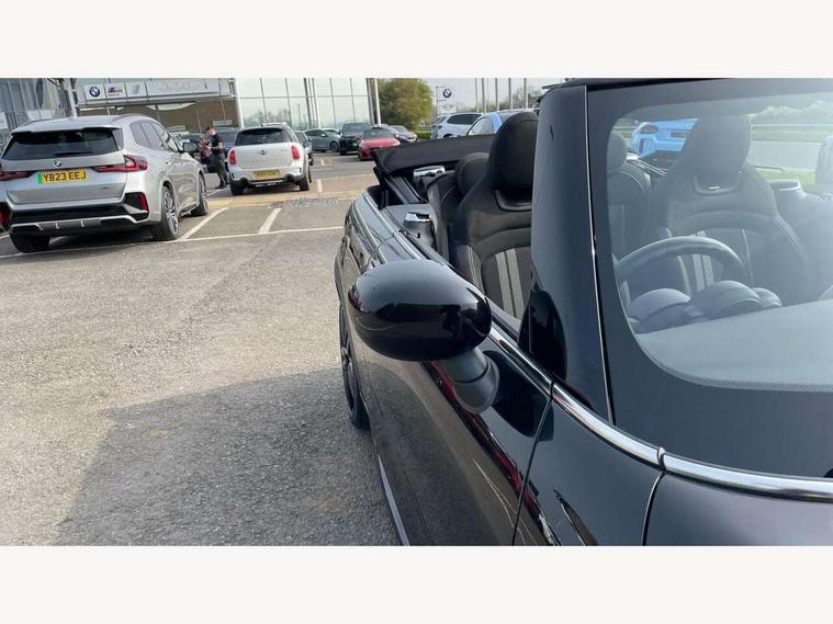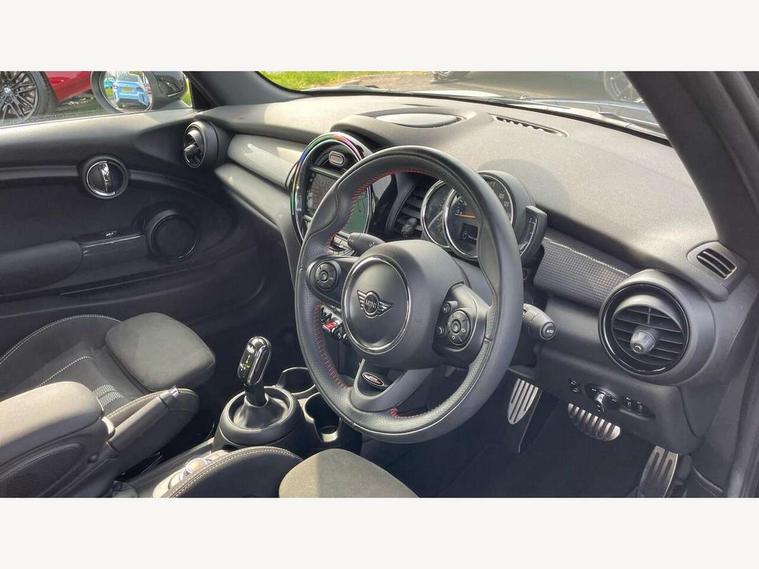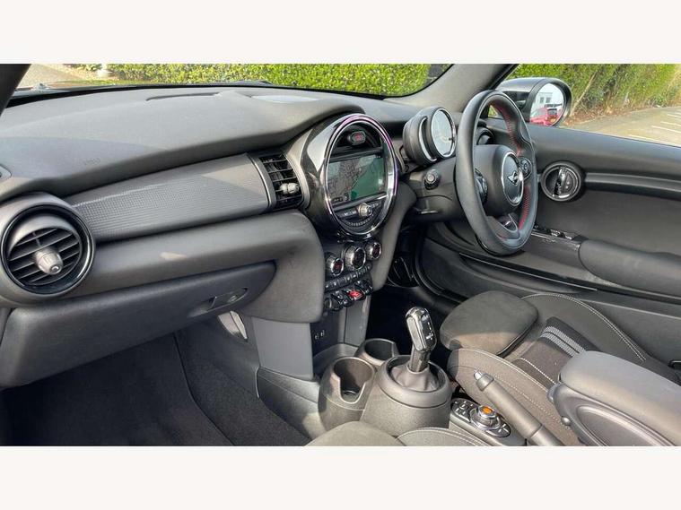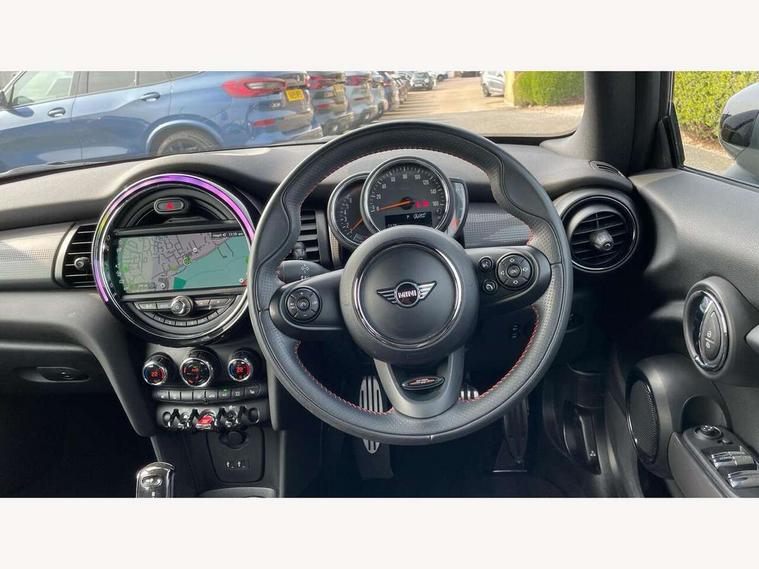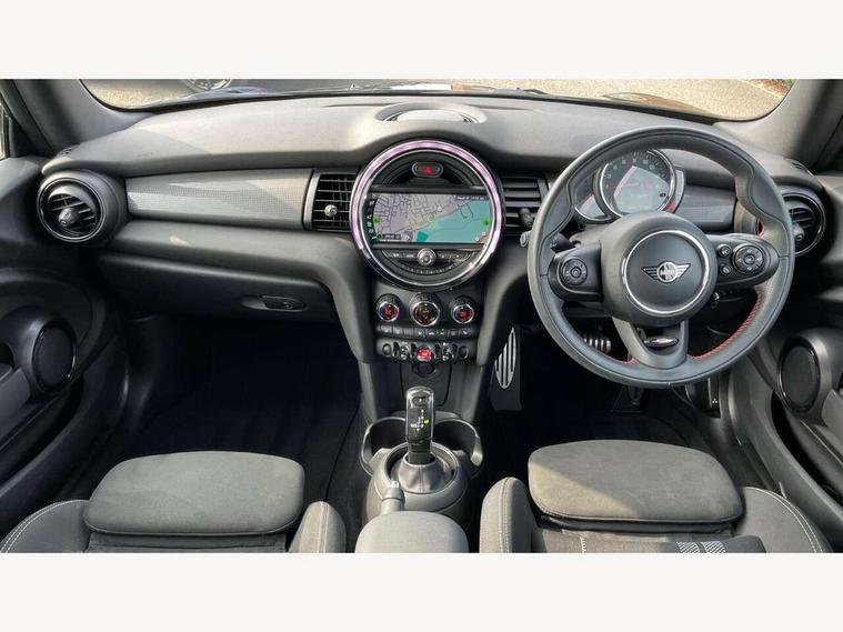 Automatic start/stop function with brake energy recuperation, Compatible mobile phone bluetooth with audio streaming, Electro-mechanical speed dependant steering assistance, Instrument cluster, Mini E-call, MINI TeleServices, On board computer, Rear park distance control, Service interval indicator, Double Vanos system, Fully variable valve control, High precision injection, Performance Control, Steptronic transmission with double clutch, 6.5" touchscreen with LED ring, FM tuner and DAB digital radio, Automatic headlight activation switch, Body colour fuel filler cap, Chrome border high gloss black slats radiator grille, Dynamic brake lights, Electric windows, Fully electric black softtop with integrated sunroof functionality, Heated rear window, Heated windscreen washer jets, John Cooper Works - aerodynamic kit (front and rear apron, spoiler), front and rear sport bumpers and part-painted side sills with door sill finishers, LED headlight with closed ring and daytime driving lights, Left exhaust tailpipe with chrome finisher, Metal door sill strips with MINI imprint, Model logo Cooper on right of tailgate, Rain sensor window wipers, Rear fog lights, Rear LED lights with union jack design, Side scuttle panel with integrated indicator, Sun/heat protection glass, White indicator lenses, 12V Accessory socket in centre console, 4 lashing eyes in luggage compartment, 50/50 split folding rear seats, Chrome interior highlights, Cupholders, Easy Load boot handles, Front and rear isofix with front passenger airbag deactivation, Glove compartment, Height and length steering column adjustment, Interior lighting with 12 basic colours selectable via toggle switch in roof, John Cooper Works perforated leather steering wheel with contrast stitching in chilli red and John Cooper Works logo, Leather gearshift lever and handbrake gaiters, Leatherette integrated headrest, adjustable thigh support with john cooper works logo, LED reading lights, vanity mirror lights, front foot well light and spotlight on front seats, Manual air conditioning, Mechanical seat adjustment, driver seat height adjust, forward/back and front seats backrest, Mini logo projection on floor from drivers exterior mirror, Multifunction steering wheel, Rear head restraints, Storage compartments in doors, Sunvisors with vanity mirrors, 3 point seatbelts on all four seats, 6 Airbags - front, side and seat belt tensioners, Active rollover protection, Anti-lock braking system (ABS), DSC - Dynamic Stability Control, Front and rear disc brakes, Hill start assist, Single tone fanfare horn, Tyre pressure monitoring system, Alarm system with tilt sensor, monitoring doors, bonnet interior and tailgate, Electronic vehicle immobiliser, Keyless Go, Tool kit,