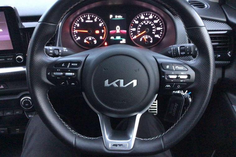 4.2" supervision colour cluster display, 8" touchscreen navigation, Apple car play/Android Auto with voice control, Cruise control + speed limiter, Drive mode selector, Electric power steering, Emergency call service, Emergency stop signalling system, External temperature display, Forward Collision-Avoidance Assist (FCA) - City/Pedestrian/Cyclist, Lane keeping assist system (LKAS), Driver attention warning (DAW) and High beam assist (HBA), Manual speed limit assist, Rear parking sensor, Reversing camera system, Trip computer, Intelligent Stop and Go, Audio system with 6 speakers, Bluetooth with music streaming, Front USB port, Steering wheel mounted controls, All round electric windows with drivers auto up/down function, Automatic defog system, Automatic headlights control, Black rear roof spoiler with high mounted LED braking light, Black side sill, door garnish and wheel arch trims, Black/body colour bumpers, Body coloured exterior door handles, Chrome side window trim, Electrically adjustable/heated/folding door mirrors with LED indicators, Front and rear silver skid plates, Gloss black door mirrors with matt black lower housing, GT-Line body kit, Headlight levelling device, Heated rear window, High gloss black and satin radiator grille, LED Bi-function projection headlights with static bending, LED daytime running lights, LED front fog lights, LED position light, LED rear combination lights, Privacy glass - Rear windows and tailgate, Rain sensor, Rear fog lights, Rear side wing doors, Rear wash/wipe, Roof rails, Shark fin antenna, Solar windshield glass, Speed variable front aeroblade wipers, Tinted glass, Welcome and follow-me home light functionality, Windscreen Washer Level Warning, 12V power point front, 3 seat bench in 2nd row, 60/40 split folding rear seat, Air filter, All-round height adjustable headrests, Aluminium pedals, Automatic air conditioning, Centre armrest storage box, Centre console with cupholders, D-Cut perforated leather trimmed steering wheel, Dash illumination dimmer switch, Driver's seat height adjuster, Front and centre cabin lights, Front and rear door map pockets with bottle holder, Gear shift indicator, Glovebox illumination, GT-Line cloth/faux leather upholstery, ISOFIX Child seat top tethers and anchor fixings outer rear seats, Leather trimmed gearshift, Luggage area light, Luggage area parcel shelf, Luggage net with hooks, Overhead console lamp, Overhead console with sunglasses cases, Passenger front seatback pockets, Rear USB charging port, Satin chrome interior door handles, Single front passenger seat, Sunvisors with vanity mirror illumination (Driver and front passenger), Tilt/telescopic adjustable steering wheel, ABS with Electronic Brakeforce Distribution (EBD) and Brake Assist System (BAS), All round 3-point seatbelts, Electronic stability control (ESC) and vehicle stability management (VSM), Front passenger airbag cut-off switch, Front seatbelt pretensioners + load limiters, Height adjustable front seatbelts, Hill start assist control (HAC), Impact sensing auto door unlocking, Manual child lock in rear doors, Rear seat Occupancy alert, Seatbelt reminder warning, Twin curtain airbags, Twin front airbags, Twin front side airbags, Tyre pressure monitoring system, Alarm system, Door deadlocks, Engine immobiliser, Locking wheel nuts, Remote central door locking with fold away key, Speed sensitive auto door locking, Visible vehicle identification number, High gloss black centre fascia, 17" GT-Line alloy wheels, Tyre mobility kit,