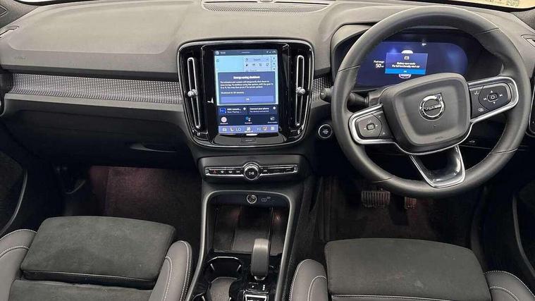 12.3" Progressive Driver Display, 360 degree surround view parking camera with side proximity sensors, 9" centre console portrait touch screen, Adjustable steering wheel force, Android auto (Wired), Apple carplay (wired), Bluetooth handsfree system, Driver alert control, Driver assistance (pilot assist and adaptive cruise control), Driver awareness - Blind spot information system with steer assist, cross traffic alert with autobrake and rear collision warning and mitigation, E-call, Front park assist, Google automotive services - Enabled entertainment apps, navigation with google maps, voice recognition with google assistant, Hands free power tailgate, Intelligent speed assistance, Lane keeping aid, Oncoming Lane Mitigation, Rear park assist, Speed sensitive steering, Volvo cars services with app - Driving journal, emergency and breakdown call, engine remote start, remote door locking/unlocking and vehicle dashboard, Wireless/Inductive Mobile Phone Charging, Automatic transmission with start/stop and manual change functions, Dynamic chassis, DAB Digital radio, Premium Sound by Harman Kardon, Dolby Pro Logic II Surround Sound, Dirac Unison, 12 speakers/600W and subwoofer, Steering wheel mounted remote controls, Active bending pixel LED headlights with adaptive shadow technology, Active high beam incorporating daytime running lights, Adaptive brake lights with high level LED brake lights, Auto dimming feature for exterior door mirrors, Auto dimming interior mirror, Automatic headlamp levelling, Colour coordinated auto folding and heated power door mirrors, Dark tinted windows - rear side windows and rear screen, Front aluminium tread plates, Front and rear electric windows, Headlight cleaning system, High gloss black front and rear skid plate, High gloss black front bumper deco, High gloss black front grille strikethrough and ironmark, High gloss black rear model, engine and volvo logo badges, High gloss black window trim, Home safe and approach lighting, Integrated roof rails in high gloss black, LED front fog lights with cornering function, Power glass tilt and slide panoramic sunroof with sun curtain, Puddle lights, Rain sensor with automatic windscreen wiper activation, Rear side wing doors, Rear wiper, Roof antenna, Roof spoiler, Visible VIN plate, 12V socket in front tunnel console and luggage compartment, 2-Zone electronic climate control with CleanZone air quality system and pollen filter, 3 seat bench in 2nd row, 3 Spoke tailored steering wheel with chrome trim, 60/40 versatile split folding rear seat, Centre console cupholders and storage, Charcoal headlining, Connect textile/microtech upholstery, Flexible load floor and grocery bag holder, Floor mats, Front cabin courtesy lights, Front door pocket, front cupholder, ambient front door, rear reading, rear courtesy, instrument panel and tailgate lighting, Front footwell illumination, Front headrests, Front reading lights, Front seat cushion extensions, Front side step illumination (under door), Glovebox bag hook, Heated front seats, Height/reach adjustable steering column, High gloss centre tunnel deco, Illuminated glovebox, Illuminated luggage compartment, Illuminated vanity mirrors + ticket holder, Integrated waste bin, Isofix attachments on outer rear seats, Load cover, Load protection net, Multi directional lumbar support for driver and passenger seat, Power driver seat with memory + exterior mirrors memory, Power folding rear headrests, Power passenger seat, Rear armrest with cupholders, Single front passenger seat, Underfloor cargo storage, Climate pack without heated front seats - XC40, 3x3 point rear seatbelts, City safety with steering support with Pedestrian + cyclist + front collision warning with full auto brake and rear auto brake, Driver and passenger airbags, Drivers knee airbag, Electronic parking brake with auto hold, First aid kit, Front and outer rear seatbelt reminder and pretensioners, Front seats SIPS airbags, Hill descent control, Hill start assist, Inflatable curtain, Passenger airbag cut-off device, Power child locks on rear doors, Road sign information display, Run off Road Protection, SIPS (Side Impact Protection System), Slippery road and hazard light alert, Stability and Traction Control with Spin control, Engine Drag Control and Corner Traction Control, Tyre pressure monitoring system, Vehicle deceleration control with Anti-lock Brake System, Electronic Brake Distribution and Emergency Brake Assist, Warning triangle, WHIPS whiplash protection system - front, 2 x Key integrated remote control central locking including with deadlocking system and auto open/close windows and sunroof, Anti-theft alarm including immobiliser/volume sensor + level sensor, Keyless drive includes keyless entry and keyless start, Locking wheel nuts,