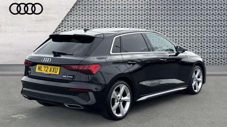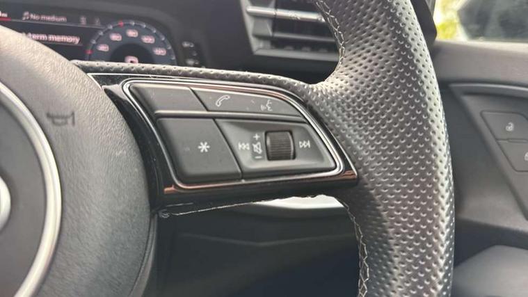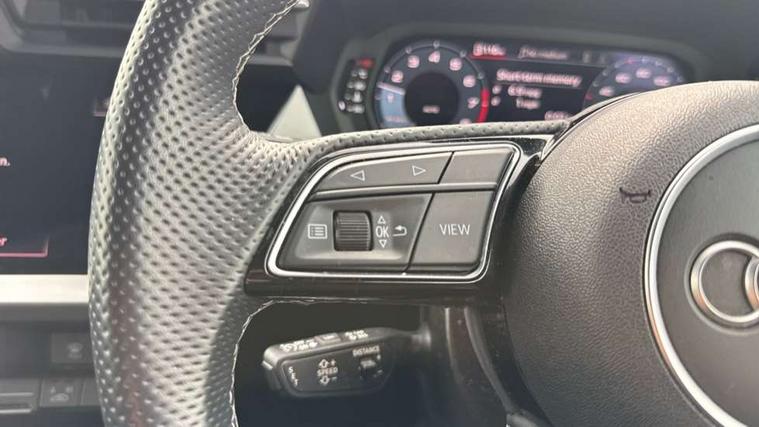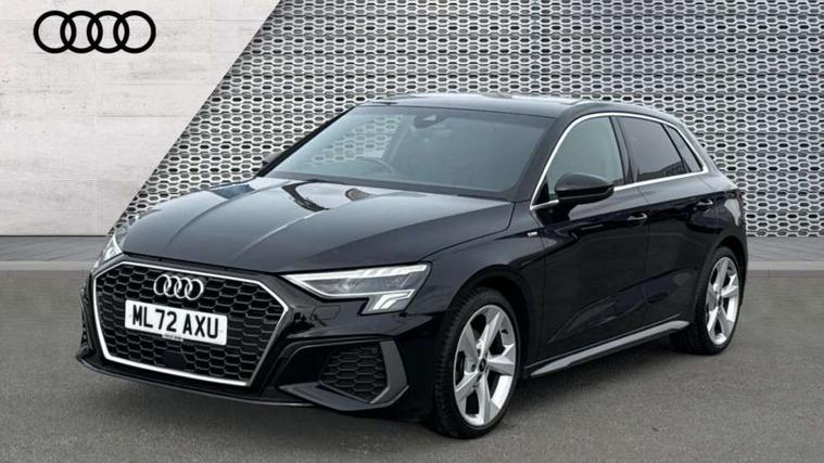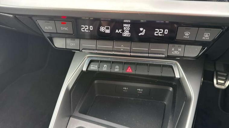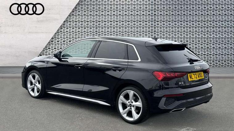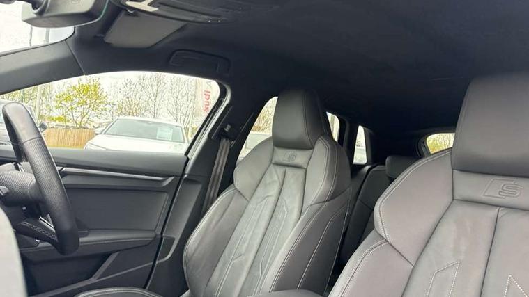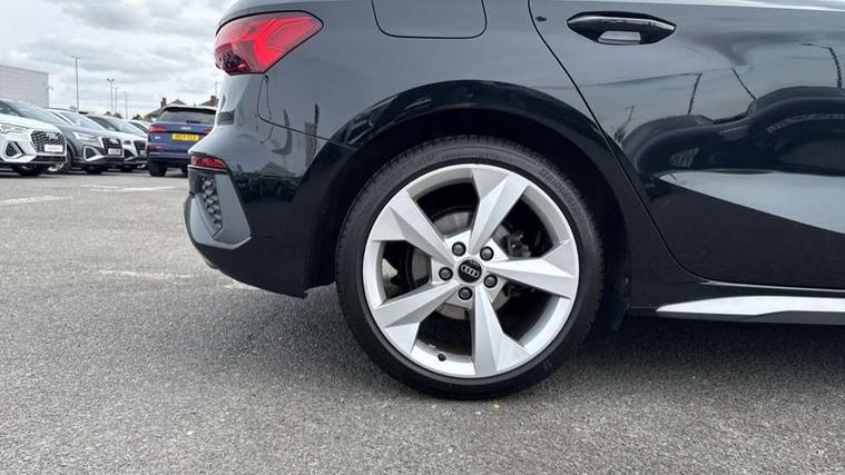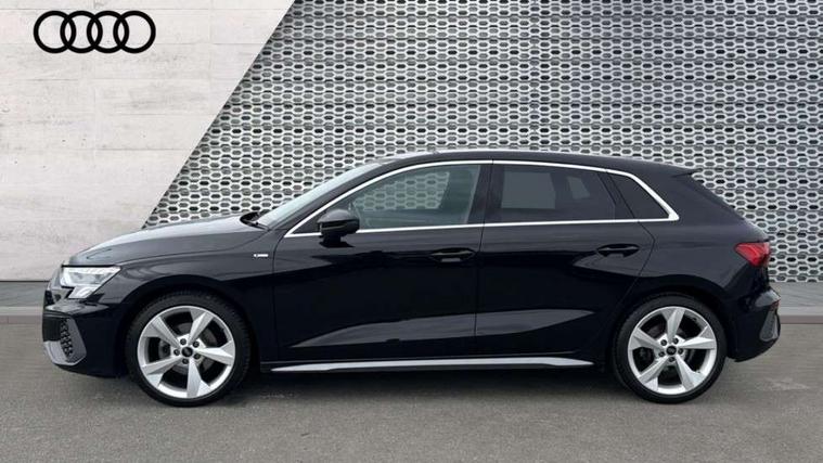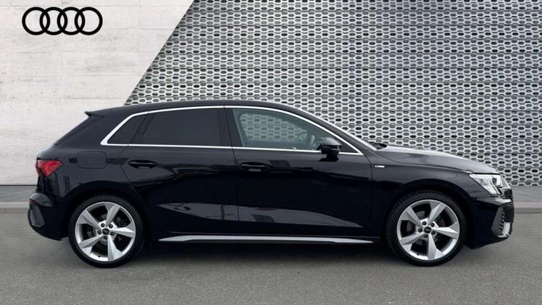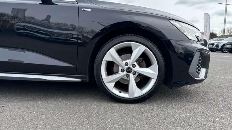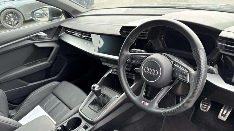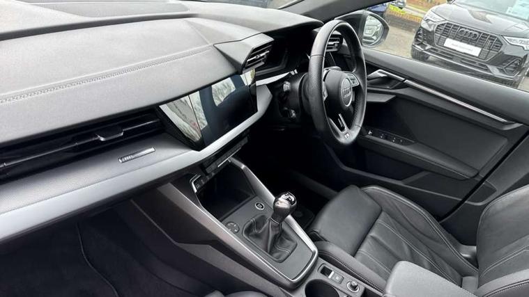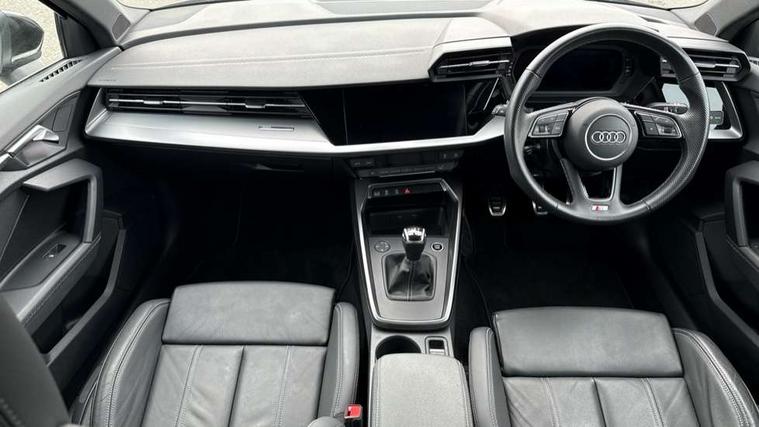 Audi drive select (Auto, Comfort, Dynamic, Efficiency and Individual), Audi smartphone interface, Audi Virtual Cockpit - 10.25" digital and colour instrument cluster, Automatic start/stop system with recuperation, Bluetooth interface, Collision avoidance assistant, Cruise control, e-Call (emergency call), Electromechanical power speed sensitive steering, Lane departure warning system, MMI Navigation Plus with high resolution 10.1" colour touch screen display, Rear parking sensors, Service indicator, Trip computer, Voice control system with natural language interaction, 2xUSB-C connection with data and charging functions, 6 passive loudspeakers, DAB Digital radio, 3rd brake light, Acoustic glass windscreen, Aluminium window trim, Auto dimming frameless rear view mirror, Electrically adjustable/heated/folding/auto dimming door mirrors with integrated LED indications + kerb view function for passenger side, Front electric windows, Illuminated aluminium inserts front door sills with S logo, LED daytime running lights, LED headlights with LED rear lights and dynamic rear indicators, Light and rain sensors, Privacy glass - dark tinted rear window, rear door and side windows, Rear electric windows, Rear side air outlets in grained matt black, Rear side wing doors, Rear wiper, S line bumpers, S roof spoiler, 12V socket and storage compartment in front centre console, 3 seat bench in 2nd row, 40/20/40 split folding rear seat bench with cupholder, Black cloth headlining, Dual zone electronic climate control, Front and rear centre armrest in leather, Front and rear headrests, Front/rear floor mats, Height and reach adjustable steering wheel, Illuminated vanity mirror, Interior lighting - glove compartment light and right hand side, Luggage compartment floor covering, Manual boot compartment lid, Manually adjustable front seats, Seat side bolsters, Single front passenger seat, Stainless steel pedals and front footrest in black, Twin leather upholstery with front sports seats S embossed logo, Aluminium interior elements pack - A3 Sportback, S line styling pack - A3 Sportback, 3x3 point rear seat belts, Audi pre sense front, Driver and front passenger airbag with passenger airbag deactivation, Electronic Stabilisation Control (ESC) including ABS, ASR and EDL, First aid kit with warning triangle and 2 safety vests, Front side airbags with head airbags and interaction airbag, Pre-sense front with pedestrian and cyclist detection, Seatbelt monitoring, Tyre pressure loss indicator, Anti theft alarm, Anti-theft wheel bolts, Immobiliser, Manual child locks, Remote control central locking, Accent surfaces in the dashboard and centre console in platinum grey silk effect paint finish, Dark spectrum aluminium inlays,