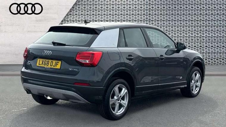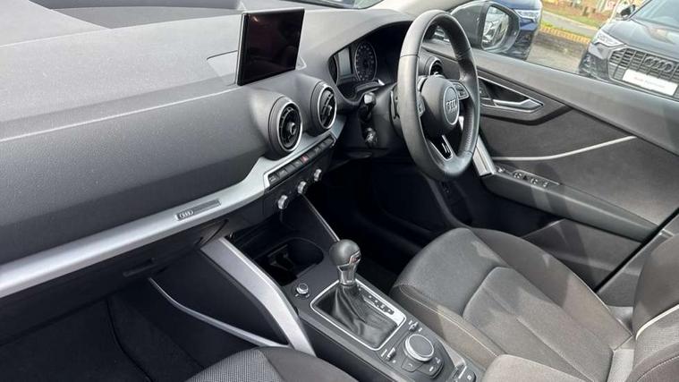 Audi drive select, Audi smartphone interface, Automatic start/stop system with recuperation, Bluetooth interface includes bluetooth audio streaming, Cruise control, MMI - Multi Media Interface control system, MMI SD card integrated nav with 3D map display, dynamic route guidance with TMC, MMI search, natural voice recognition and myAudi special destinations, Power operated tailgate, Progressive steering, Service interval indicator, Dynamic suspension, 2 x SDXC card reader, Audi music interface - apple iPod, apple iPhone, USB storage media, compatible MP3 players, 2 x USB charging points and 1 x Aux-in, CD Drive, DAB digital radio and AM/FM radio, MMI radio plus with 7" colour MMI screen and MMI controller, Air inlet in manhattan grey metallic, Black window trims, Body colour door mirrors, Chrome exhaust tailpipe, Electrically adjustable and heated door mirrors with integrated LED side indicators, Front and rear electric windows, Front underbody guard and rear diffuser trim in selenite silver, Front windscreen with grey tinted sunband, Halogen headlights including headlight range adjustment, High gloss black radiator grille, Interior mirror, LED indicator lights, Manual folding door mirrors, Rain and light sensors, Rear wiper, Side skirts in manhattan grey, Wheel arch trims in manhattan grey, 60/40 split folding rear seat bench, Door sill trims with aluminium inlay, Electronically operated child locks, Front centre armrest, Front headrests, Front sports seats, Front/rear floor mats, Height/reach adjust steering wheel, ISOFIX child seat mounting for front passenger with airbag deactivation and outer rear seat including top tether attachment point for outer rear seats, Manual seat adjustment including seat height adjustment for front seats, Storage compartments - Glovebox, cupholder compartment in centre console, storage compartment in rear centre console, front and rear door pockets, Three rear headrests, Titanium grey cloth headlining, Non smoking pack - Q2, 3x3 point rear seatbelts, 6 airbags - Front, curtain and front side airbags, Electromechanical parking brake, Electronic stabilisation control including ABS, ASR and EDL, Extended and proactive pedestrian protection, Hill hold assist, Multi collision brake assist, Pre-sense front with pedestrian recognition, Seatbelt monitoring, Tyre pressure warning light, Warning triangle and first aid kit, Anti theft alarm, Anti theft wheel bolts, Central locking system with remote control key, Aluminium interior element,