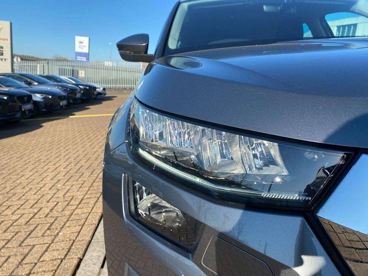 8" Digital display, Amundsen satellite navigation with 8" touchscreen, integrated Wi-Fi, web radio, Bluetooth system, Digital voice enhancement, E-call, ECO Stop/start function, Exterior temperature indicator, Power assist steering, Rear view camera, Smartlink wireless for apple carplay and wired for android auto, Speed limiter, Tailgate unlocking from outside, USB C Port x 2 in front centre console, 8 Speakers, DAB Digital radio, Aero front windscreen wipers with intermittent function, Aero rear window wiper, Auto dimming rear view mirror, Black wheel arch surrounds, Body colour bumpers, Body colour door mirrors and handles, Electric front and rear windows, Extended rear spoiler with finlets in gloss black, Front fog lights, Headlight washers, Heated rear window, Invisible tailpipe, LED rear fog light, LED third brake light in rear spoiler, Light assistant (coming/leaving home/tunnel light), Off-road style lower front bumper element, Privacy glass, Radiator grille frame in matt black with chrome strip, Rain and light sensors, Rear LED lights (high functionality) with welcome effect and dynamic indicators, Rear side wing doors, Safety reflectors on front and rear doors, Window control switches with black trim, 12V socket in boot, 2 rails with 2 hooks, 2 seat bench in 3rd row, 3 seat bench in 2nd row, 4 foldable roof handles with rear coat hooks, 60:40 foldable rear seat with sliding adjustment and backrest angle adjustment, Bottle holders in door panel in the 1.5 litre front and 1 litre rear, Cargo storage compartments, Chrome interior door handles, Cloth upholstery, Coat hooks on B pillar, Covered storage compartment on driver side, Dual zone automatic air conditioning with humidity sensor and control, Front centre armrest with storage compartment, cup holder and 12V socket, Gear shift lever with chrome frame and black gloss insert, Grey headlining, Grey stitching in front and rear armrests and door armrests + door inserts, Height adjustable front headrests, Height adjustable front seats, Illuminated and cooled glovebox, Illuminated luggage compartment, Isofix child seat fittings in outer rear seats with top tether, Manually adjustable steering column, Net programme in boot (1x horizontal Net, 2x vertical Nets), Overhead glasses storage compartment, Pollen filter, Rear centre armrest with cupholders, Single front passenger seat, Sliding trunk cover, Small Bags on the inner sides of the front backrests, Sunvisors with illuminated vanity mirrors, Three rear height adjustable headrests, Ticket holder on A Pillar, Umbrella in door panel, Variable boot floor, Auto door release and activation of warning lights in the event of an accident, Child locks on rear doors, Driver and front passenger airbag with knee airbag and front passenger airbag deactivation, Electronic parking brake with hill start assist, Emergency rear braking signal, ESC (incl. ABS+MSR+ASR+EDS+HBA+DSR+RBS+MKB), Front assist with autonomous emergency braking, Front side airbags with curtain airbags, Fuel cut off safety device, Height adjustable front 3 point seatbelts + pretensioners, Hill hold control, Rear disc brakes, Safety vest holder in door, Seat belt reminder for all seats, Three point rear seat belts, Two tone horn, Tyre pressure monitor, Alarm with interior monitoring and tilt sensor with safe function, Anti-theft wheel bolts, Immobiliser, Keyless entry and start system (KESSY), Remote central locking with 2 keys, Grey stitching in dashboard, Temporary spare wheel (space saver),