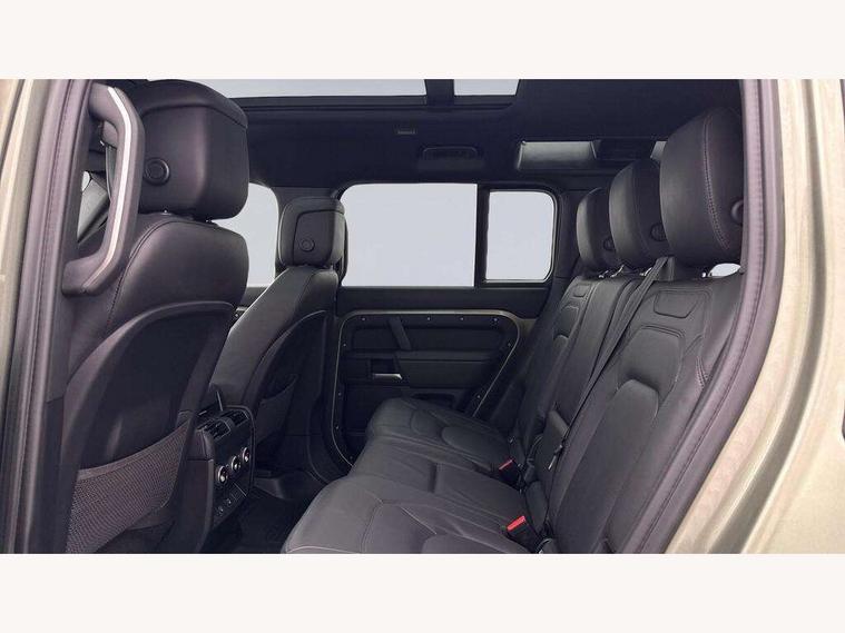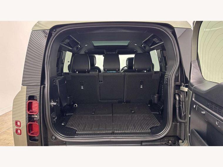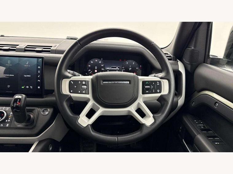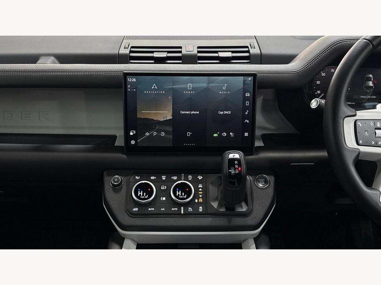1 x USB-C (power only) & 1 x USB-C (power & data) in Row 1, 2 x USB-C in Row 2, 11.4" touchscreen, 2 x USB-C in Row 3, 360 degree parking aid, 3D Surround Camera with 360 View, 180 Rear View, Front Traffic Detection, Forward Vehicle Guidance, Tow Hitch Assist and clear sight Ground View, Adaptive cruise control, Android Auto, Apple CarPlay, Blind spot assist, Bluetooth system, Brake pad wear indicator, Clear exit monitor, Connected navigation pro, Driver condition monitor, Electric power assisted steering (EPAS), Interactive driver display, Lane keep assist, Push button start, Rear collision monitor, Rear traffic monitor, Traffic sign recognition with adaptive speed limiter, Trip computer, Wireless device charging, 8 speed automatic transmission, All wheel drive system, Twin speed transfer box, DAB Radio (Digital Audio Broadcasting), Meridian 700w surround sound audio system with 15 speakers, Pivi pro connected, Automatic headlight levelling, Automatic headlights, Black exposed rear recovery eyes, Body coloured bonnet, Centre high mounted stop light, Electric heated/power fold door mirrors with approach lights and auto dimming driver side, Electric windows with one touch open/close and anti-trap, Follow me home lighting, Front fog lights, Heated rear window with timer, Heated windscreen, Illuminated metal treadplates with brand name script, LED tail lights, Matrix LED headlights with signature DRL, Privacy glass, Puddle lights, Rain sensing windscreen wipers, Rear fog lights, Rear side wing doors, Rear wiper, Side hinged tailgate, Sliding panoramic roof, Standard tail door, Trailer stability assist, X-Dynamic badge, 12V power socket in loadspace, 2 seat bench in 3rd row, 3 seat bench in 2nd row, Alpine lights, Configurable cabin lighting, Durable rubber cabin flooring, Durable rubber loadspace flooring, Electric reach + rake adjustable steering column, Electrically adjustable steering column, Extended leather upgrade, Footwell lights, Front head restraints, Front passenger isofix child seat attachment, Heated steering wheel, Loadspace cover, Loadspace Hook, Multifunction steering wheel, No flat load floor storage, Overhead stowage for sunglasses, Rear headrests, Rear ISOFIX, Rear reading lights, Single front passenger seat, Soft close tail door, Storage glovebox, Sunvisors with illuminated vanity mirrors, Twin front cupholders, Air suspension pack - Defender SE/HSE/X-Dynamic SE/X-Dynamic HSE, Non-smoker package, Online pack with data plan - Defender, 7 three point seatbelts, ABS, Brake hold function, Cornering brake control (CBC), Customer configurable autolock, Driver and passenger airbags, DSC - Dynamic Stability Control, EBD - Electronic brakeforce distribution, Electric parking brake (EPB), Emergency brake assist, Emergency braking, ESP + traction control, Front airbags with passenger seat occupant detector, HDC - Hill descent control, Hill launch assist, Low traction launch, Power operated child locks, Remote for (e-Call, Optimised assistance call, InControl app, Climate, beep and flash and door), RSC - Roll stability control, Seat belt reminder, TPMS (Tyre pressure monitoring system), Alarm, Immobiliser, Intrusion sensor, Keyless entry, Locking wheel nuts, Secure tracker pro,