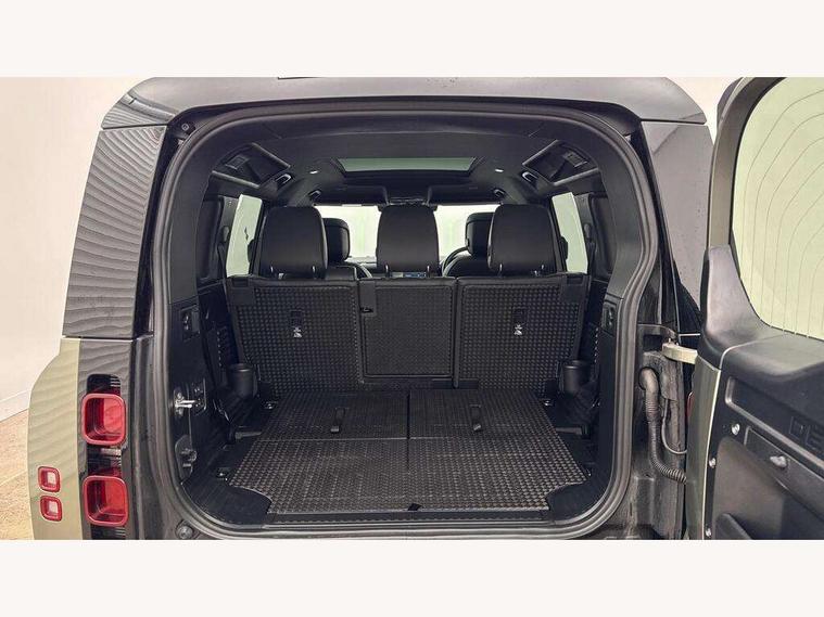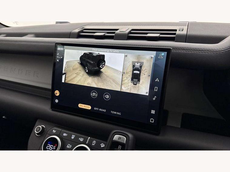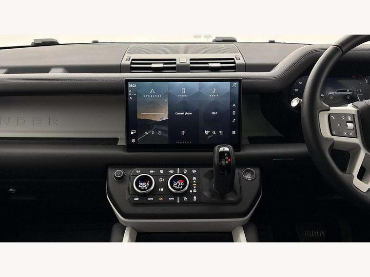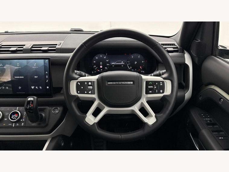 1 x USB-C (power only) & 1 x USB-C (power & data) in Row 1, 2 x USB-C in Row 2, 11.4" touchscreen, 2 x USB-C in Row 3, 360 degree parking aid, 3D Surround Camera with 360 View, 180 Rear View, Front Traffic Detection, Forward Vehicle Guidance, Tow Hitch Assist and clear sight Ground View, Adaptive cruise control, Android Auto, Apple CarPlay, Blind spot assist, Bluetooth system, Brake pad wear indicator, Clear exit monitor, Connected navigation pro, Driver condition monitor, Electric power assisted steering (EPAS), Interactive driver display, Lane keep assist, Push button start, Rear collision monitor, Rear traffic monitor, Traffic sign recognition with adaptive speed limiter, Trip computer, Wireless device charging, 8 speed automatic transmission, All wheel drive system, Twin speed transfer box, DAB Radio (Digital Audio Broadcasting), Meridian 700w surround sound audio system with 15 speakers, Pivi pro connected, Automatic headlight levelling, Automatic headlights, Black exposed rear recovery eyes, Body coloured bonnet, Centre high mounted stop light, Electric heated/power fold door mirrors with approach lights and auto dimming driver side, Electric windows with one touch open/close and anti-trap, Follow me home lighting, Front fog lights, Heated rear window with timer, Heated windscreen, Illuminated metal treadplates with brand name script, LED tail lights, Matrix LED headlights with signature DRL, Privacy glass, Puddle lights, Rain sensing windscreen wipers, Rear fog lights, Rear side wing doors, Rear wiper, Side hinged tailgate, Sliding panoramic roof, Standard tail door, Trailer stability assist, X-Dynamic badge, 12V power socket in loadspace, 2 seat bench in 3rd row, 3 seat bench in 2nd row, Alpine lights, Configurable cabin lighting, Durable rubber cabin flooring, Durable rubber loadspace flooring, Electric reach + rake adjustable steering column, Electrically adjustable steering column, Extended leather upgrade, Footwell lights, Front head restraints, Front passenger isofix child seat attachment, Heated steering wheel, Loadspace cover, Loadspace Hook, Multifunction steering wheel, No flat load floor storage, Overhead stowage for sunglasses, Rear headrests, Rear ISOFIX, Rear reading lights, Single front passenger seat, Soft close tail door, Storage glovebox, Sunvisors with illuminated vanity mirrors, Twin front cupholders, Air suspension pack - Defender SE/HSE/X-Dynamic SE/X-Dynamic HSE, Non-smoker package, Online pack with data plan - Defender, 7 three point seatbelts, ABS, Brake hold function, Cornering brake control (CBC), Customer configurable autolock, Driver and passenger airbags, DSC - Dynamic Stability Control, EBD - Electronic brakeforce distribution, Electric parking brake (EPB), Emergency brake assist, Emergency braking, ESP + traction control, Front airbags with passenger seat occupant detector, HDC - Hill descent control, Hill launch assist, Low traction launch, Power operated child locks, Remote for (e-Call, Optimised assistance call, InControl app, Climate, beep and flash and door), RSC - Roll stability control, Seat belt reminder, TPMS (Tyre pressure monitoring system), Alarm, Immobiliser, Intrusion sensor, Keyless entry, Locking wheel nuts, Secure tracker pro,