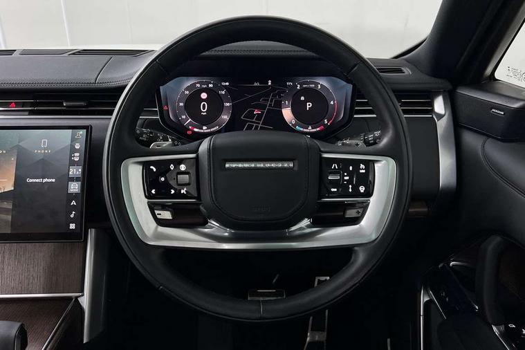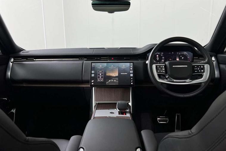 13.1" Touchscreen, 3D surround camera inc frwd traffic detection, vehicle clearance guidance, 3D view, clearsight ground view, manoevure light, 360 parking aid, wade sensing, All Terrain Info Centre, All wheel steering, Android Auto, Apple car play, Blind spot assist, Bluetooth connectivity streaming, Driver condition response, Eco mode, Electric power assisted steering (EPAS), Emergency call service, Front and rear parking aid, Interactive driver display, Lane keep assist, Park assist, Rear collision monitor, Rear traffic monitor, Remote, Traffic sign recognition with adaptive speed limiter, Wi-Fi Enabled with data plan, Wireless device charging with phone signal booster, 8 speed automatic transmission, Active damper technology system, Adaptive dynamics, All terrain progress control, All Wheel Drive (AWD), Automatic access height, Terrain Response 2 Auto, Twin speed transfer box, Digital Audio Broadcast radio-DAB, Pivi pro including smart settings, Connected navigation pro, nuance speech, USB socket, Acoustic laminated windscreen, Animated directional indicators, Automatic headlights, Automatic levelling headlights, Centre high mounted stop light, Electric windows with one touch open/close and anti trap, Engine cover, Flush deployable exterior door handles, Front and rear recovery eyes, Front fog lights, Headlamp power wash, Heated rear window, Heated washer jets, Illuminated aluminum treadplates with Range Rover script, LED tail lights, No badges, Pixel LED headlights with signature DRL, Power fold, auto-dimming, heated door mirrors with approach lights, Rain sensing windscreen wipers, Rear boot, Rear fog lights, Rear side wing doors, Side repeater indicators in mirror, Trailer stability assist, Winter wiper park position, 12V power sockets, 3 seat bench in 2nd row, Air quality sensor, Bright metal pedals, Cabin lighting, Customer configurable single point entry, Driver and passenger front seat armrests, Easy boot loading, Ebony Carpet, Front and rear cupholders, Front and rear grab handles, Front head restraints, Gearshift paddles, Heated steering wheel, Hook in load space, Loadspace light, Luggage tie down in loadspace, Multifunction steering wheel, Rear centre armrest, Rear head restraints, Rear ISOFIX, Single front passenger seat, Soft close doors, Upper and lower glovebox, Online pack with data plan - Range Rover, 3x3 point rear seat belts, Anti-lock braking system (ABS), Brake hold function, Cornering brake control (CBC), Customer configurable autolock, DSC - Dynamic Stability Control, Electronic brake force distribution, Electronic parking brake, Electronic traction control, Emergency brake assist, Emergency braking, Front airbags with passenger seat occupant detector, Front side airbags, Hill descent control, Hill launch assist, Low traction launch, Occupant protection assist, Power operated child locks, Roll stability control, Tyre pressure monitoring system (TPMS), Immobiliser, Intrusion sensor and alarm, Keyless entry, Locking wheel nuts, Remote central locking, Noble chrome controls,