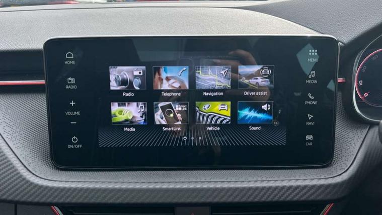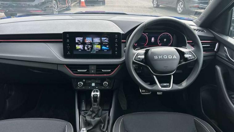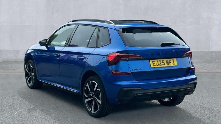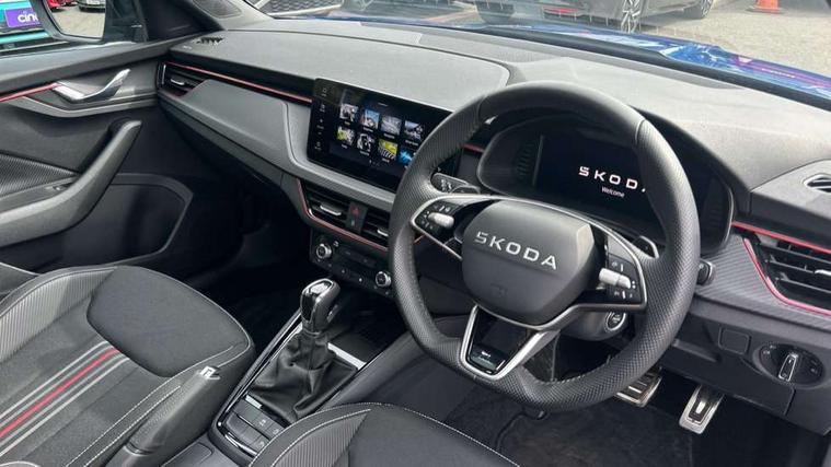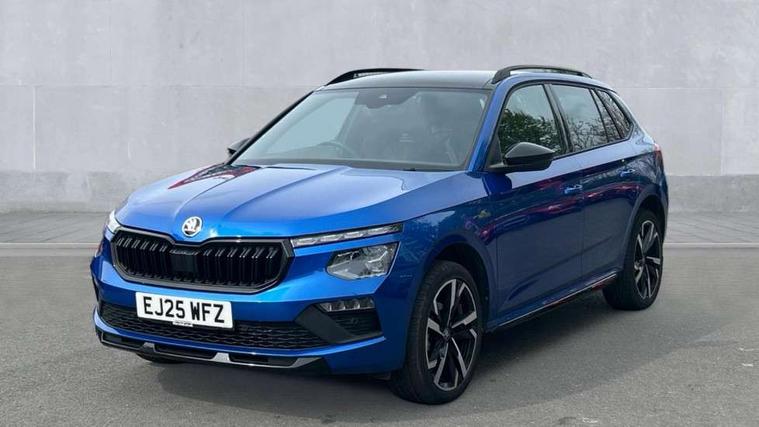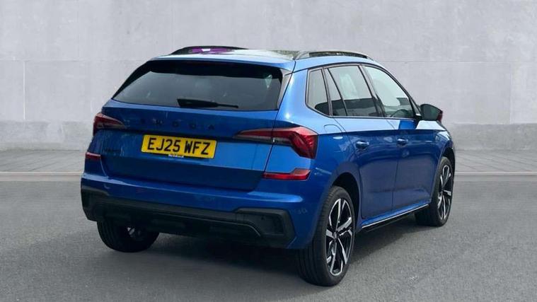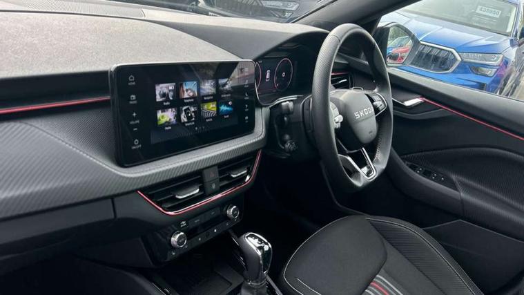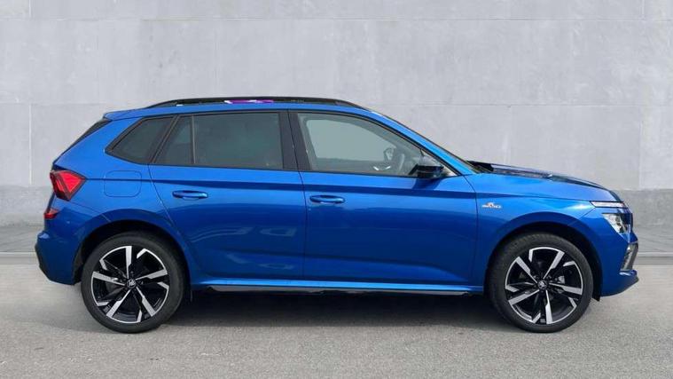 Advanced driver attention and drowsiness monitor, Bluetooth system, E-call, Front assist system, PAS, Rear parking sensors, Rear view camera, Service indicator, Speed limiter, Traffic sign recognition, Virtual cockpit with 10.25" display, Voice control system, Wireless smartlink, 4 USB C ports, 8 Speakers, 9.2" Skoda navigation display, DAB Digital radio, Auto dimming rear view mirror, Automatic headlight control with coming home and leaving home feature, Black door mirrors, Black radiator grille, Black rear diffuser, Black roof spoiler, Body colour bumpers, Body colour door handles, Boot lettering in black, Extended tailgate glass, Fixed panoramic sunroof with black roof rails, Front and rear electric windows, Heated rear window, LED daytime running lights, LED high beam, LED low beam, LED third brake light, Light sensors, Monte carlo plaque, Privacy glass, Rear side wing doors, Rear wiper, Ticket holder inside windscreen, 12V socket in luggage compartment, 3 seat bench in 2nd row, Aluminium pedals, Ambient lighting in white/red, Art leather carbon decor inserts, Art leather carbon door inserts, Black roof lining, Cargo elements, Chrome inner door handles, Driver and passenger sun visors with vanity mirror, Dual zone climate control, Front and rear roof lights, Front centre armrest, Front head restraints, Glove compartment with illumination, Height adjustable driver seat, Height adjustable front passenger seat, Ice scraper, Inner circulation control with pollen filter, ISOFIX on front passenger seat, Isofix preparation for back seats, Leather gearknob and handbrake lever, Manual lumbar support for front seats, Monte Carlo cloth upholstery, Net package and top tether hooks in boot space, Net under rear shelf, Pocket on the back of both front seats include mobile phone pockets, Rake/reach adjustable steering wheel, Reading lights, Rear centre armrests, Red hotstamping, Single front passenger seat, Sports seats, Textile floor mats, Third rear headrest, Top tether for front passenger seat, Umbrella in driver's door, Light and view plus package - Kamiq, 3x3 point rear seatbelts, Airbags - driver and front passenger, Disc brakes, ESP, Extended and predictive pedestrian/cyclist protection, Front passenger airbag deactivation switch, Front side airbags with curtain airbags, Hill hold control, Manual leather parking brake, Manual rear child locks, One tone horn, Seatbelt reminder for driver an co-driver, Traction control, Tyre pressure monitor, Anti-theft alarm system with interior monitoring, backup horn, towing protection and remote central locking with SAFE system, Anti-theft wheel bolts, Electronic engine immobilizer, 18" Ursa black diamond cut alloy wheels,