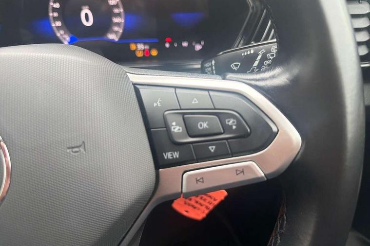 'Lights On' Reminder warning buzzer, Adaptive cruise control including front assist, forward collision warning, autonomous emergency braking, speed limiter, Blind spot monitoring, Bluetooth telephone and audio connection for compatible devices, Car information display, Digital cockpit, Driver alert system, eCall emergency call system, Lane assist, Low washer fluid warning light, Multifunction computer with visual gear change recommendation for fuel consumption, Operating permit alteration, Power assisted speed sensitive steering, Speedo, rev counter, electronic odometer, trip, service interval display, exterior temperature and fuel gauge, Stop/start system, Warning sound and light for doors and tailgate open, Warning sound and light for front seatbelts unfastened, We Connect Go Dongle, Wireless Car net app connect with Apple CarPlay, combined functionality of Apple CarPlay/Android Auto and MirrorLink, Battery regeneration during braking, Misfuel prevention device, 2x USB connection with USB charging sockets and in rear centre console, DAB Digital radio receiver, Diversity antenna for FM reception, Multi device interface (MDI) with USB connection, Music playback - MP3, WMA and AAC files, Premium USB cable for Apple or Android smartphone compatibility, Simultaneous pairing of 2 compatible mobile devices, Title and cover art display, Automatic hazard lights activation under emergency braking, Black door mirrors, Black roof rails, Body colour door handles, Body coloured bumpers, Dusk sensor + automatic driving lights, Electrically foldable, adjustable and heated door mirrors with reverse activated kerb view adjustment on passenger's side, Front and rear electric windows, Front fog lights with static cornering function, Galvanised body, Heated rear window, LED third brake light, Lower door sills and door pillars in black, Radiator grille with high gloss surface and chrome strip, Rear fog light on one side, reversing light on both sides, Rear lights incorporating LED technology, Rear side wing doors, Rear tinted glass 65% approx light absorbing from B pillar backwards, Rear window aerial, Rear windscreen washer and wiper with interval delay, Reflectors in all doors, Tailgate with integrated roof spoiler, Windscreen wipers/ intermittent wipe + 4 position delay, 12V Accessory socket in centre console, 3 rear head restraints and 3 rear three point seat belts with ECE label, 3 seat bench in 2nd row, 60/40 split folding rear seat backrest, Comfort front sport seats, Diag cloth upholstery, Drawer under drivers seat, Driver and front passenger sunvisor with vanity mirror, Driver's sunvisor with ticket holder, Dust and pollen filter, Front + rear carpet mats, Front and rear reading lights X 2, Front centre armrest with storage compartment, Front seat back storage pockets, Front seats with adjustable lumbar support, Glovebox, Heating and fresh air system with 4 stage blower, Height/reach adjust steering wheel, Instrument lighting white adjustable panel illumination, Interior light with delay, Isofix child seat preparation for 2 rear child seats, Luggage compartment cover, Luggage compartment lighting, Manual air conditioning, Moveable and foldable Rear bench seat, Single front passenger seat, Storage compartment in drivers and front passengers door, Three spoke multi-function leather trimmed steering wheel and gearknob, Variable boot floor, Anti-lock Braking System (ABS) with Hydraulic Brake Assist (HBA), Automatic post collision braking system, Driver and front passenger safety-optimised head restraints, Drivers and Front Passengers airbags with front passengers airbag deactivation switch, ESC with EDL, ASR, EDTC and trailer stabilisation function, Front and rear curtain airbags, Front disc brakes and rear drum brakes, Front seat side impact airbags, Height-adjustable front three-point seat belts with tensioners, Hill start assist, Pre crash preventive occupant protection, Rear door child safety locks, Rigid safety cell with front and rear crumple zones, Single torn horn, Tyre pressure loss indicator, Volkswagen roadside assistance, Alarm with interior protection and deactivation via infotainment system, Child security locks in rear doors, Electronic engine immobiliser, Remote tailgate unlocking using key fob, Decorative inserts transition high gloss black/platnium grey, 17" Manila black diamond turned surface alloy wheels + anti theft wheel bolts, Breakdown kit,