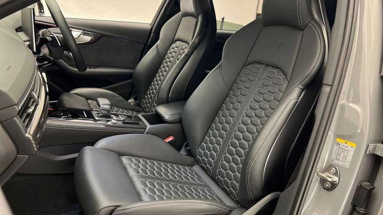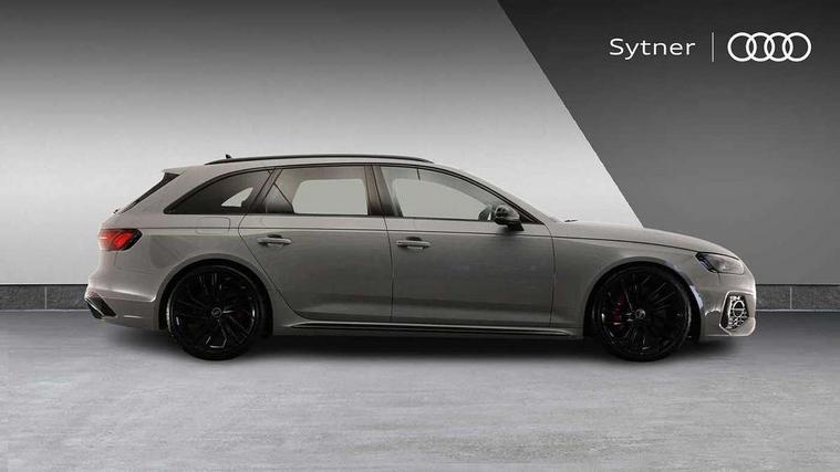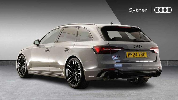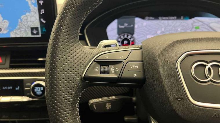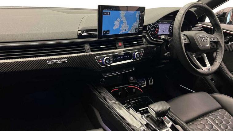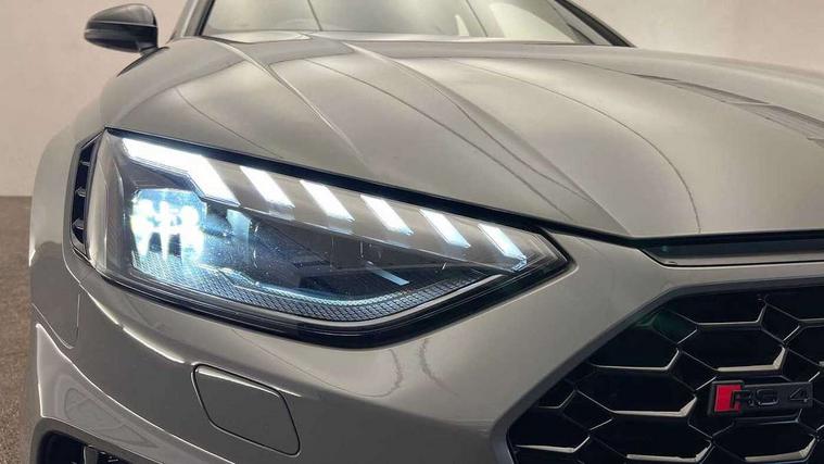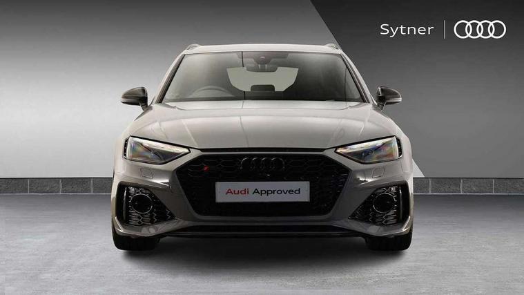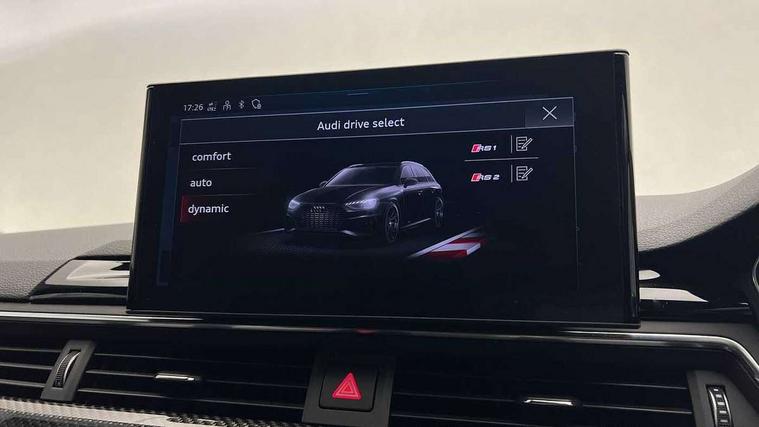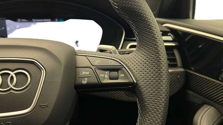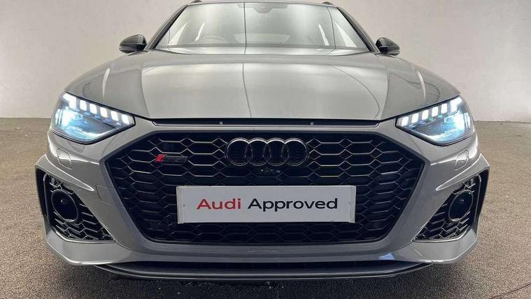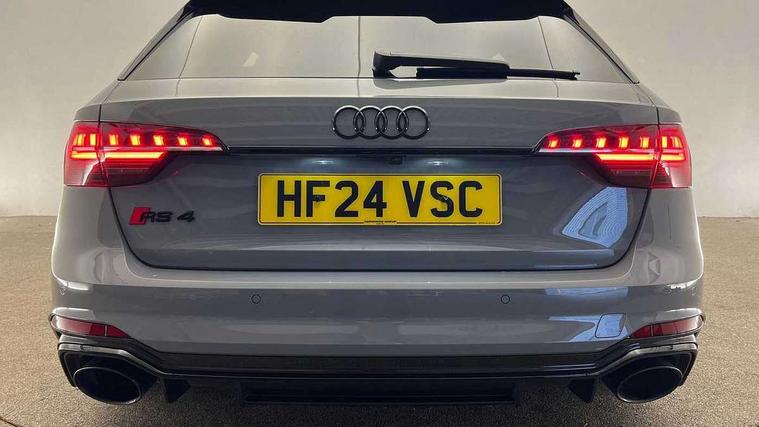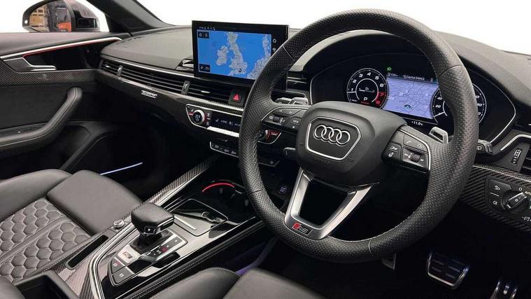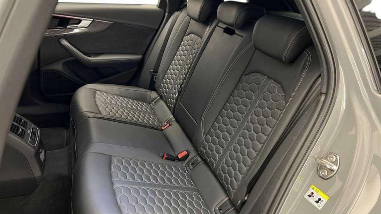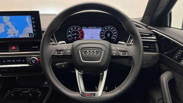 7" Colour driver information system, Audi connect safety and service (e-call), Audi drive select, Audi side assist, Audi smartphone interface, Audi virtual cockpit with RS specific display, Automatic start-stop system with coasting functionality and efficiency programme, Bluetooth interface, Camera based traffic sign recognition, Electromechanical power steering, Email, calendar and text messages displayed via MMI, Lane departure warning, MMI Navigation plus with MMI touch includes 10.1" high resolution colour MMI display, 3D map, Power opening/closing tailgate, Service interval indicator, Voice control system, 58 Litre fuel tank, Quattro sports differential, 2 USB charging ports, Audi sound system, DAB digital radio module, 3rd brake light, Acoustic windscreen, Audi Beam uses LEDs to project the RS logo onto ground as you exit your RS4, Audi matrix LED headlights with LED rear lights + dynamic front and rear indicators, Audi rings and lettering glossy black, Auto dimming rear view mirror, Automatic headlights + automatic windscreen wipers, Black roof rails, Blue tinted glass, Body colour door handles, Electric front windows, Electric rear windows, Electrically folding auto dimming/adjustable/heated door mirrors with memory function, LED side indicators and kerb view function for passenger side, Flared front and rear wheel arches, Front bumper with enlarged air inlets, Headlight range control, High beam assistant, High gloss black door mirror housing, High gloss black triangular aperture at rear door, Honeycomb design grille with quattro logo, Lateral air inlets next to front headlights, LED daytime running lights, LED indicators in door mirrors, Privacy glass with rear acoustic glazing, Rain and light sensors, Rear side wing doors, Rear wiper, Roof spoiler, RS 4 badges on grille and rear, RS4 dual branch chrome tailpipes with left and right oval pipes, 3 seat bench in 2nd row, 40/20/40 split folding rear seats with rear centre armrest, Black cloth headlining, Deluxe 3 zone electronic climate control, Door armrests and knee pad in leatherette, Electric load area cover, Electrically adjustable front seats, Front centre armrest, Front headrests, Heated front seats, Heated steering wheel, Height and reach adjustable steering wheel with full size airbag, Illuminated door sill trims with RS4 logo, ISOFIX child seat mounting and top tether, Luggage compartment carpet, Rear headrests, Retractable load area cover, Single front passenger seat, Stainless steel pedals, Sunvisors with vanity mirrors, Tool kit, Carbon black styling pack - RS4, LED Interior light pack - RS4, Non Smokers pack, 3 point seatbelts on all rear seats, Adaptive driver and front passenger airbags, Attention and drowsiness assist, Electromechanical parking brake, Electronic stabilisation control including ABS, ASR and EDL, Enhanced braking system, Front head airbags, Front seatbelt pretensioners + load limiters, Front side airbags, Hill hold assist, Manual child lock in rear doors, Multi-Collision braking, Pop-up bonnet for pedestrian protection, Pre sense city, Rear side airbags, Seatbelt monitoring, Traction control, Tyre pressure warning, Variable restraint system, Warning triangle and first aid kit, Anti theft alarm, Anti-theft wheel bolts, Immobiliser, Keyless Go, Remote central locking, Remote control key with RS emblem, Carbon twill inlays, 20" 5 segment spoke evo design glossy black sport alloy wheels, Tyre repair kit,