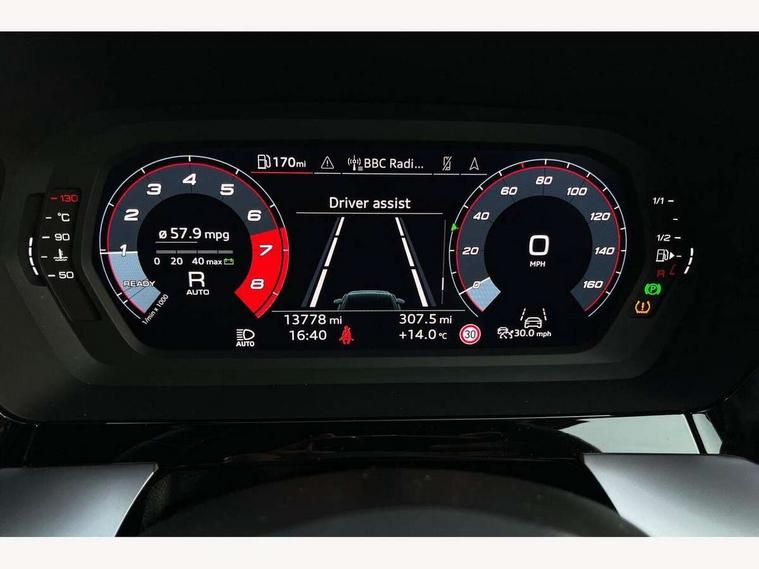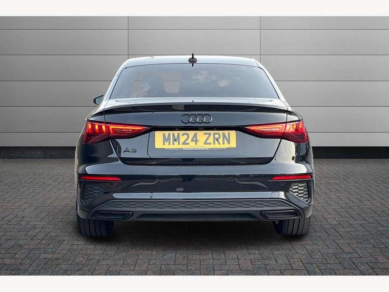 Audi drive select (Auto, Comfort, Dynamic, Efficiency and Individual), Audi smartphone interface, Audi Virtual Cockpit - 10.25" digital and colour instrument cluster, Automatic start/stop system with recuperation, Bluetooth interface, Camera based traffic sign recognition, Collision avoidance assistant, e-Call (emergency call), Electromechanical power speed sensitive steering, Lane departure warning system, MMI Navigation Plus with high resolution 10.1" colour touch screen display, Service indicator, Trip computer, Voice control system with natural language interaction, Sports suspension, 2xUSB-C connection with data and charging functions, 6 passive loudspeakers, CD player, DAB Digital radio, 3rd brake light, Acoustic glass windscreen, Audi beam uses LEDs to project the Audi logo onto the ground as you exit your A3, Auto dimming frameless rear view mirror, Electrically adjustable/heated/folding/auto dimming door mirrors with integrated LED indications + kerb view function for passenger side, Front electric windows, Illuminated door sills with aluminium inserts at the front with S logo, LED daytime running lights, LED headlights with LED rear lights and dynamic rear indicators, Light and rain sensors, Model and engine designation badges at rear, Privacy glass - dark tinted rear window, rear door and side windows, Rear boot, Rear electric windows, Rear side wing doors, S roof spoiler, 12V socket and storage compartment in front centre console, 3 seat bench in 2nd row, 3 spoke flat bottomed leather multifunction sport steering wheel with gear shift paddles, 4 way electrically adjustable lumbar support for driver and front passenger, 60/40 split folding rear seat bench, Black cloth headlining, Dual zone electronic climate control, Front and rear centre armrest in artificial leather, Front and rear headrests, Front/rear floor mats, Height and reach adjustable steering wheel, Interior lighting - glove compartment light and right hand side, Luggage compartment floor covering, Manual boot compartment lid, Single front passenger seat, Stainless steel pedals and front footrest in black, Twin leather upholstery with front sports seats S embossed logo, Aluminium interior elements pack - A3, Black styling pack - A3 Saloon/Black edition, LED interior lighting pack - A3 Saloon, 3x3 point rear seat belts, Driver and front passenger airbag with passenger airbag deactivation, Electronic Stabilisation Control (ESC) including ABS, ASR and EDL, First aid kit with warning triangle and 2 safety vests, Front side airbags with head airbags and interaction airbag, Pre-sense front with pedestrian and cyclist detection, Seatbelt monitoring, Tyre pressure loss indicator, Anti theft alarm, Anti-theft wheel bolts, Electronically operated child locks, Immobiliser, Remote control central locking, Aluminium air vent surrounds, Dark spectrum aluminium inlays, accent surfaces in the dashboard and centre console in platinum grey silk effect paint finish, 19" 5 arm trapezoid design alloy wheels in matt grey with diamond cut finish,