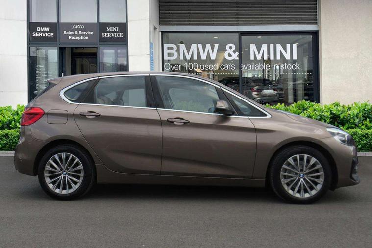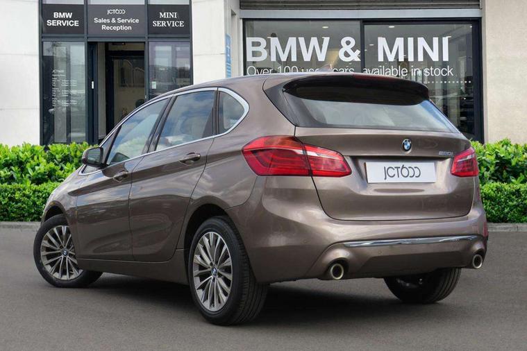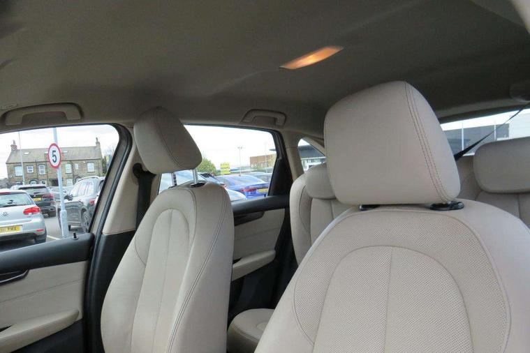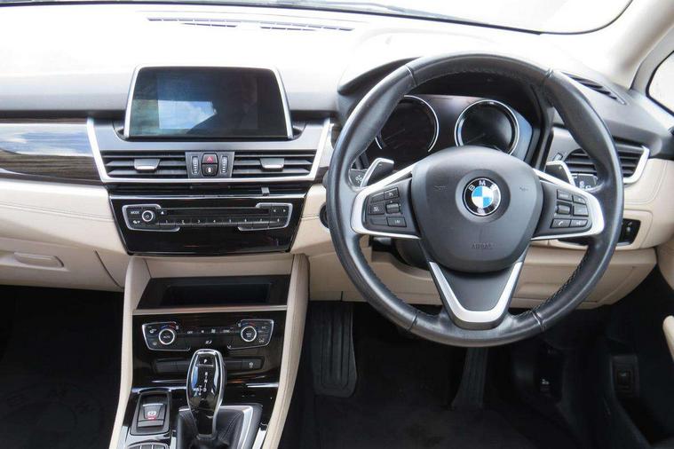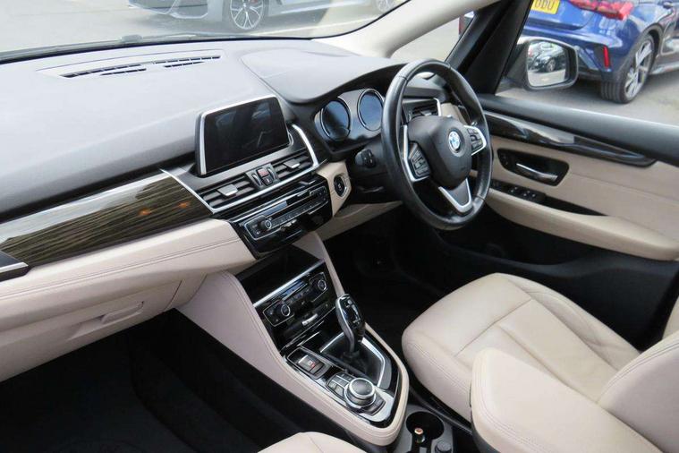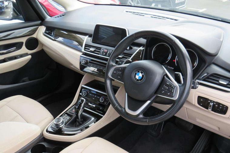 Attentiveness assist, Automatic tailgate operation, BMW Online services, BMW remote services, BMW Teleservices, Check control system, Cruise control with brake assist, Door/boot open warning light, Forward collision warning, Lights on warning, Oil temperature gauge, On board computer, Outside temperature display, Personal Profile, Service interval indicator, Speed limiter, Stop/start button, Drive Performance Control, Electronic differential lock, 2x USB sockets in front, Bluetooth audio streaming, BMW professional radio/CD/MP3, DAB Digital radio, Body colour bumpers, Body colour door handles, Body colour door mirrors, Body colour roof mouldings, Chrome kidney grille with chrome vertical slats, Electric adjustable heated door mirrors, Electric front/rear windows with one touch/auto up/down, Exclusive door sill finishers, Follow me home headlights, Heat insulating tinted glass, Heated windscreen washer jets, High beam assistant, LED daytime running lights, LED front fog lights, Rain sensor including auto headlights activation, Rear wiper, Twin chrome exhaust tailpipes, Welcome lighting, 3 rear headrests, 3 spoke sports leather steering wheel, 4 grab handles, Anthracite Velour floor mats, Dakota leather upholstery, Dual zone automatic air conditioning, Front armrest, Front head restraints, Front/rear armrests within door panels, Illuminated glovebox, Isofix front passenger and rear seat preparation, Luggage compartment lighting, Multifunction steering wheel, Reach + rake adjustable steering column, Rear centre armrest, Sliding rear seats with front under seat storage, Sunvisors, Extended storage pack - 2 Series Active/Gran Tourer, 3 point seatbelts on all seats, ABS, BMW emergency call, Brake assist function, Childproof rear door locks, Collision mitigation braking system, Crash Sensor - activates hazard/interior lighting + unlocks doors, Driver/Front Passenger airbags, DSC+, Dynamic Traction Control - DTC, Front and rear curtain airbags, Front passenger airbag deactivation, Front seatbelt force limiters, Front seatbelt pretensioner, Front side airbags, Hill start assist, Seatbelt warning, Side impact protection, Tyre pressure monitoring system, Warning triangle and first aid kit, Electronic immobiliser, Key integrated remote control central locking, Locking wheel bolts, Remote control Thatcham category 1 alarm,