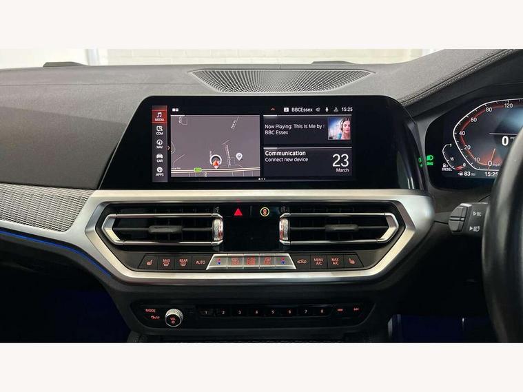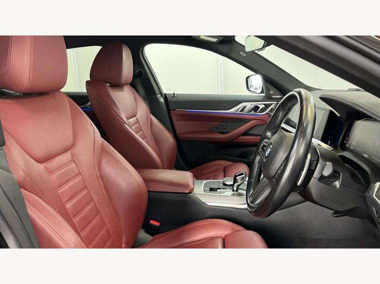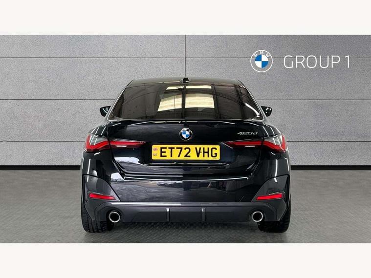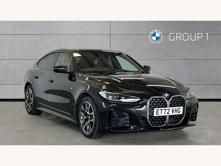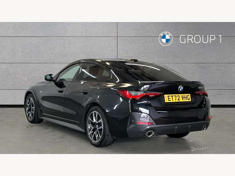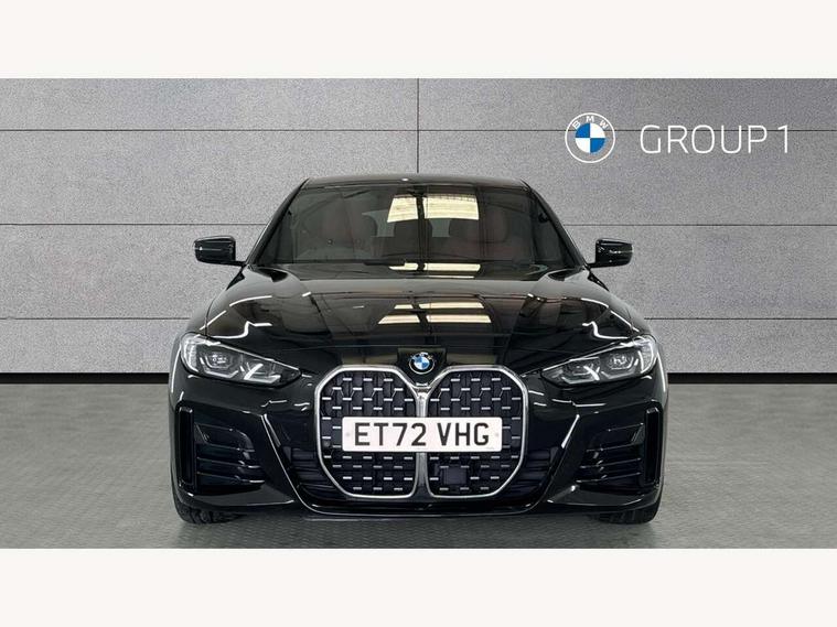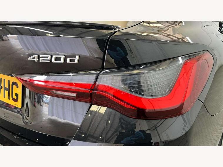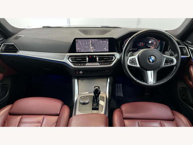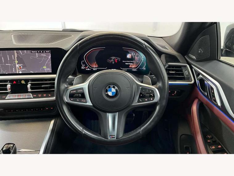 Active guard plus, Attentiveness assist, Auto start-stop, BMW ConnectedDrive online services, BMW iDrive controller on centre console, BMW Live Cockpit Professional Nav with 12.3" instrument display + 10.25" display, Intelligent Voice Assist, BMW OS 7, HDD, 2USB, 4G LTE connect, BMW service history, BMW Teleservices, Brake pad wear indicator in front and rear, Check Control warning system for monitoring of lights and door/luggage compartment open warning, Condition based service, Cruise control with speed limit function, Electric bootlid, Electric power steering with Servotronic steering optimised at all speed ranges, Gearshift time display in manual mode, Instrument cluster with speedometer with mph readout, tachometer, fuel gauge and oil temperature gauge, Integrated owners handbook, Oil sensor for level and grade, warning by check control system, On board computer - average speed, fuel consumption, outside temp display with acoustic warning, clock/date, service interval, odometer/trip meter, Optimum shift indicator, Shifting point display, Variable sport steering, 48V Mild hybrid technology, 8 speed automatic steptronic transmission with gearshift paddles, Diesel particulate filter, Double joint spring strut front axle, Drive performance control - ECO PRO, comfort and sport modes, Electronic differential lock control (EDLC), Incorrect fuelling protection, Low centre of gravity, M sport suspension, Stroke dependent dampers, 2x USB Type C ports in front centre console for charging and data transfer, DAB tuner, Electronic service booklet, 3rd brake light, Acoustic glazing, Automatic headlight beam throw control with load dependent regulating reaction, dynamic compensation of braking dive and acceleration squat, Automatic windscreen wipers and automatic headlight, Automatically dimming electrochromatic rear view mirror, BMW emblem on engine compartment lid and tailgate, BMW kidney grille with mesh grille front side of the nuggets in matt aluminium and frame in chrome high gloss, Body colour fuel filler flap, Body colour roof fin, Brushed aluminium inserts in the front door sill finishers with BMW designation, Door sill strips, Dynamic brake lights, Electric windows - front and rear, with open/close fingertip control, anti trap facility and comfort closing function all round, Exterior mirrors - electrically folding with anti-dazzle, Fading support, Follow me home headlights, Front and rear bumper system, Front apron plastic in body colour, Green tinted heat protection glazing, High gloss shadow line exterior trim, Illuminated bow type door handles in body colour drivers side with door lock, Interior rear view electrochromatic mirror with automatic anti dazzle function, LED daytime running lights, LED front fog lights, LED front indicators, Licence plate panel integrated into front bumper and tailgate, Lightweight engineering, M designation on front side panels, left and right, M sport rear boot spoiler with body colour gurney, Model designation on right side of tailgate, One piece front bumper cover including towing eye cover in body colour, Preparation for high beam assistant, Rear side wing doors, Rear wiper, Reversing light, Side frame decorative moulding black matt, Two part LED tailights in L-shape with components in smoked glass, brake light, LED turn indicator and rear fog light, Visible exhaust tailpipe finisher, Visible VIN plate, Welcome lights in interior and door handle area, Widened track and increased camber values for max transverse dynamics, agility and steering precision, Window recess cover black high gloss, Windscreen wipers with integrated heated washing jets, 12V power socket in front centre console, 2 front cupholder in centre console with clamping elements and matt black inlay, 3 rear headrests, 3 seat bench in 2nd row, 3 spoke M sport leather multifunction steering wheel, 3 zone automatic air conditioning, 4 pieces lashing eyelets in luggage compartment, 40:20:40 split folding rear seat and rear centre armrest with two cupholders, Anthracite headlining, Armrest integrated in front and rear door trim + front centre console armrest, Battery in luggage compartment, BMW ID, Driver seat backrest width adjustment, Four grab handles integrated in roof lining, Front and rear door pockets, Front and rear reading lights, Front sport seats, Heated driver and front passenger seats, Height adjustable front headrests, Height adjustable mechanically and infinitely variable steering column, Illuminated armrest storage compartment, Illuminated glove compartment with separate small compartment, Make-up mirror lights, Single front passenger seat, Storage compartment in rear centre console, Sunvisors with illuminated vanity mirrors and ticket pocket, Toolkit located in luggage compartment, Velour front floor mats, Vernasca leather upholstery, Ambient lighting pack - 4 Series, Connected professional pack - 4 Series, M sport exterior styling pack - 4 Series, 3 point seatbelts on all seats, Battery safety cut-off, BMW emergency call, Brake energy regeneration, Braking pre-tensioning, Child proof locking system in rear door, Child seat ISOFIX attachment for the two outer rear seats, Coasting in idle in ECO PRO mode, Cornering brake control (CBC), Crash sensor activating of airbags, Unlocking doors, hazard warning lights, interior light, safety battery terminal, Driver and front passenger side airbags, integrated in the door side seat backrest bolsters for all seat variants, Driver/Front Passenger airbags, Dry braking, Dynamic brake control, Dynamic stability control + (DSC+) - Anti-lock Braking System (ABS) with brake assist and cornering brake control + Automatic Stability Control (ASC), Dynamic Traction Control - DTC, Electric parking brake including automatic hold function and automatic release of the parking brake when driving off, Front and rear ventilated brake disc, Front passenger manual airbag deactivation, Head airbags for all 4 outer seats, Hill start assistant, Seat belt securi