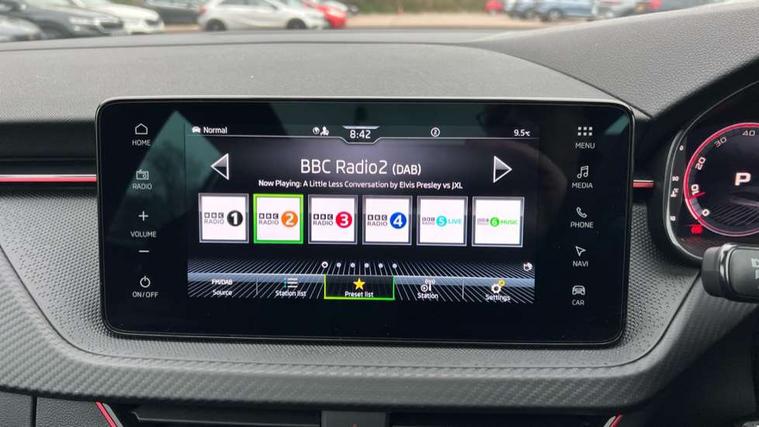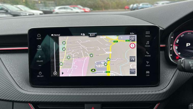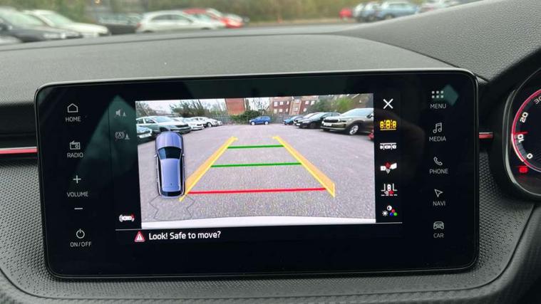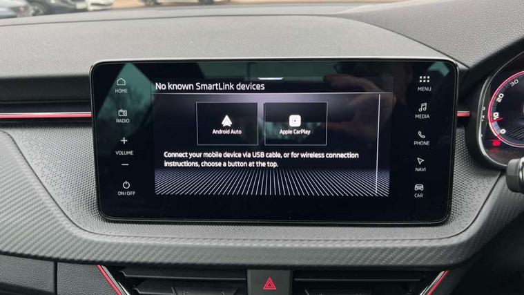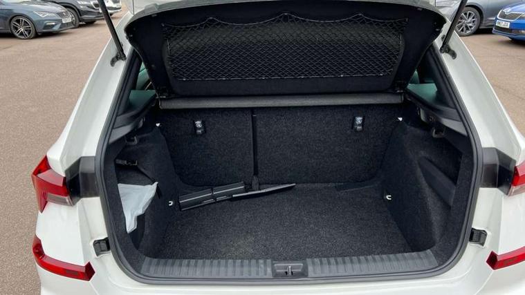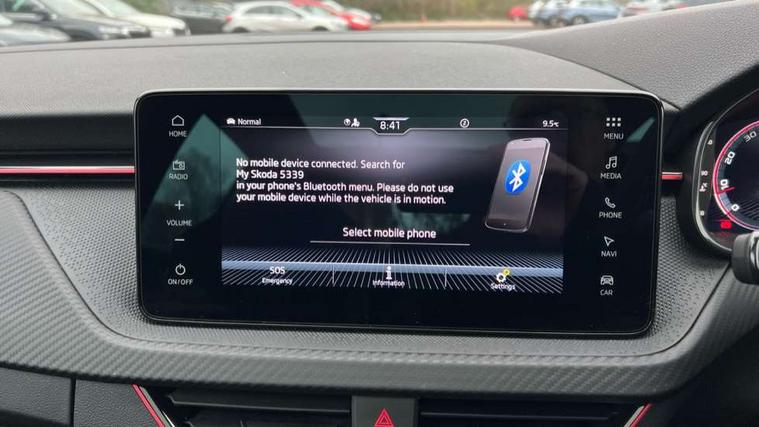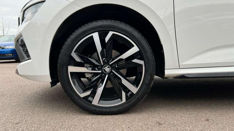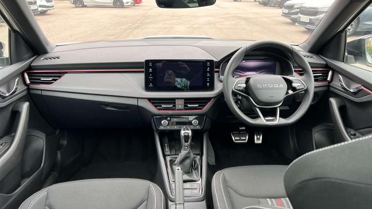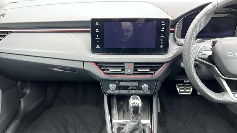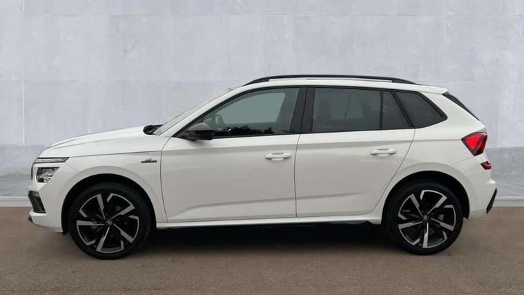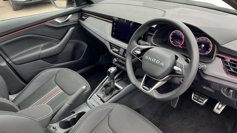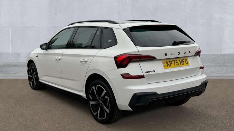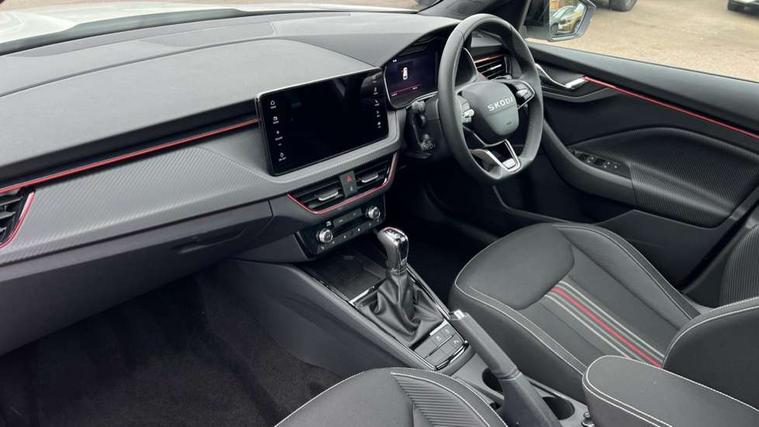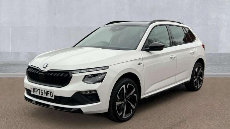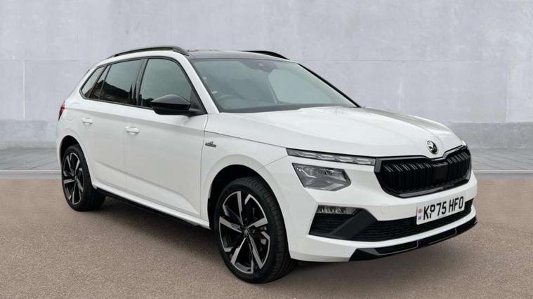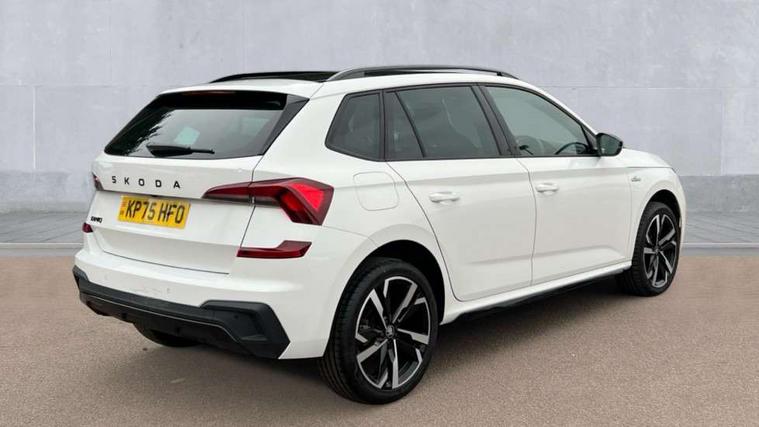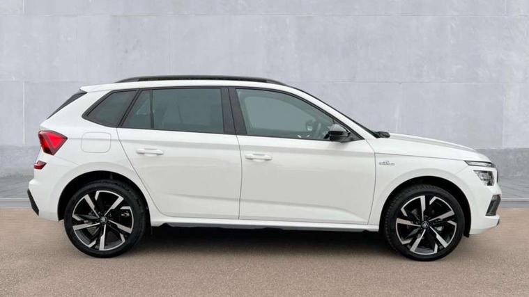 Advanced driver attention and drowsiness monitor, Bluetooth system, E-call, Front assist system, PAS, Rear parking sensors, Rear view camera, Service indicator, Speed limiter, Traffic sign recognition, Virtual cockpit with 10.25" display, Voice control system, Wireless smartlink, 4 USB C ports, 8 Speakers, 9.2" Skoda navigation display, DAB Digital radio, Auto dimming rear view mirror, Automatic headlight control with coming home and leaving home feature, Black door mirrors, Black radiator grille, Black rear diffuser, Black roof spoiler, Body colour bumpers, Body colour door handles, Boot lettering in black, Extended tailgate glass, Fixed panoramic sunroof with black roof rails, Front and rear electric windows, Heated rear window, LED daytime running lights, LED high beam, LED low beam, LED third brake light, Light sensors, Monte carlo plaque, Privacy glass, Rear side wing doors, Rear wiper, Ticket holder inside windscreen, 12V socket in luggage compartment, 3 seat bench in 2nd row, Aluminium pedals, Ambient lighting in white/red, Art leather carbon decor inserts, Art leather carbon door inserts, Black roof lining, Cargo elements, Chrome inner door handles, Driver and passenger sun visors with vanity mirror, Dual zone climate control, Front and rear roof lights, Front centre armrest, Front head restraints, Glove compartment with illumination, Height adjustable driver seat, Height adjustable front passenger seat, Ice scraper, Inner circulation control with pollen filter, ISOFIX on front passenger seat, Isofix preparation for back seats, Leather gearknob and handbrake lever, Manual lumbar support for front seats, Monte Carlo cloth upholstery, Net package and top tether hooks in boot space, Net under rear shelf, Pocket on the back of both front seats include mobile phone pockets, Rake/reach adjustable steering wheel, Reading lights, Rear centre armrests, Red hotstamping, Single front passenger seat, Sports seats, Textile floor mats, Third rear headrest, Top tether for front passenger seat, Umbrella in driver's door, Light and view plus package - Kamiq, 3x3 point rear seatbelts, Airbags - driver and front passenger, Disc brakes, ESP, Extended and predictive pedestrian/cyclist protection, Front passenger airbag deactivation switch, Front side airbags with curtain airbags, Hill hold control, Manual leather parking brake, Manual rear child locks, One tone horn, Seatbelt reminder for driver an co-driver, Traction control, Tyre pressure monitor, Anti-theft alarm system with interior monitoring, backup horn, towing protection and remote central locking with SAFE system, Anti-theft wheel bolts, Electronic engine immobilizer, 18" Ursa black diamond cut alloy wheels,