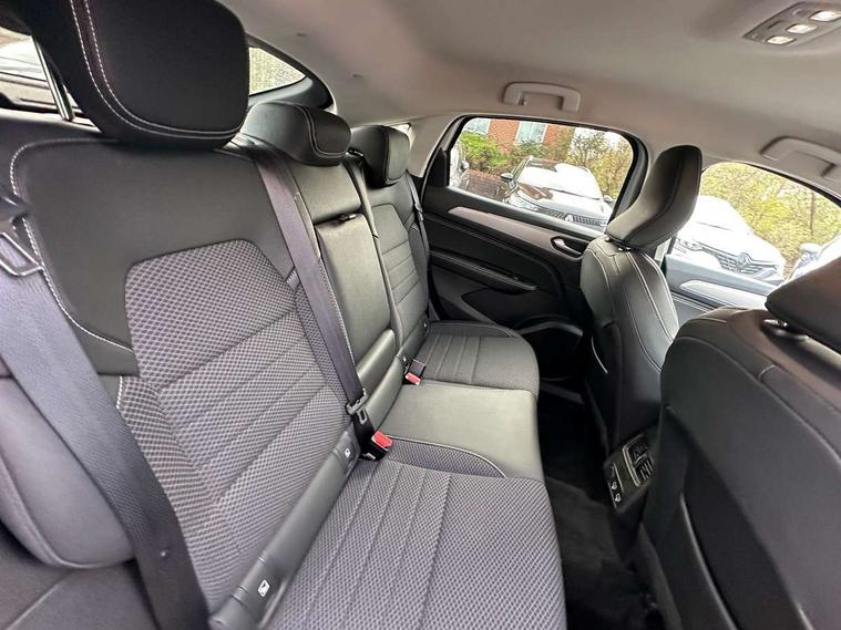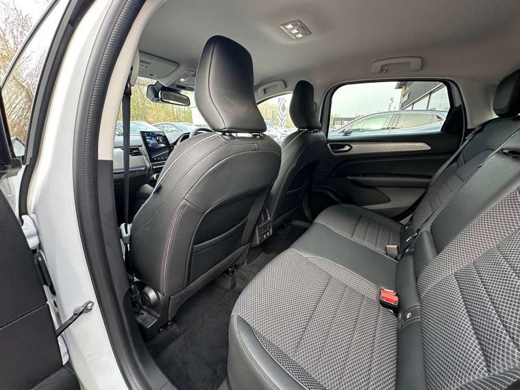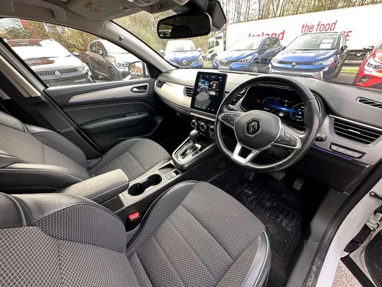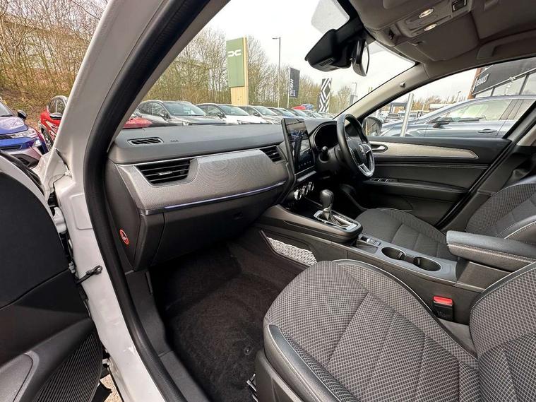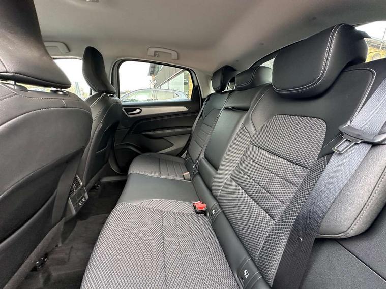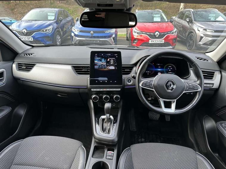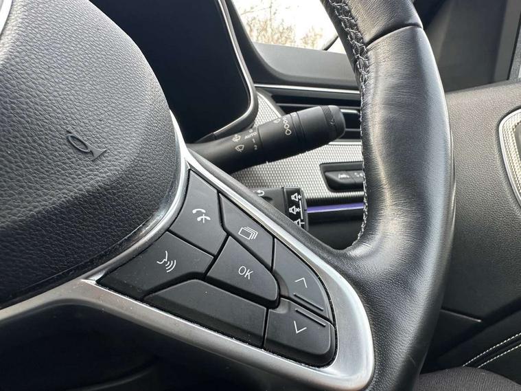 7" TFT Driver information display, Blind spot warning, Bluetooth system, EASY LINK 9.3" portrait touchscreen with navigation, Google search and traffic information, eCall emergency call system, Eco mode, EV button to activate pure mode, Front and rear parking sensors, Gear change indicator, Lane departure warning, Lane keep assist, Multi-sense - 3 driving modes and 8 ambient lighting, Rear cross traffic alert, Rear view camera, Renault automatic emergency assist, Smartphone integration compatible with Apple CarPlay and Android Auto, Traffic sign recognition with over speed prevention, Trip computer, Variable assistance electric power steering, Arkamys classic sound system with 6 speakers, DAB radio, USB port, 3rd brake light, Auto dimming rear view mirror, Automatic headlights, Automatic high / low beam, Automatic windscreen wipers with rain sensor, Black side door protection with chrome insert, Body coloured bumpers, C-shaped LED front signature lighting, Chrome decopart on wing (fender molding), Chrome window lower lining, Extra tinted rear windows and tailgate, Front and rear electric windows, Front driver window with one touch facility and anti-pinch function, Front grille with chrome on upper part, Full LED headlights, Grey front and rear skid plates, Heated rear window, Rain sensor, Rear windscreen wiper, Shiny black shark fin antenna, Side mirrors adjustable electrically, electrically foldable, with defrosting and temperature sensor, automatically foldable at vehicle closure, 3 seat bench in 2nd row, 60:40 split and fixed base rear seats, Automatic climate control with combined filter, humidity sensor and AQS, Central console with storage, Front and rear head restraints, Height and reach adjustable steering wheel, ISOFIX child seat fixing points on rear outermost seats, Leather steering wheel, LED front and rear roof lights, Rear air vents, Single front passenger seat, 3x3 point rear seat belts, ABS+EBA, Active emergency braking system, B Brake Mode - One pedal driving with increased regenerative braking, Distance warning alert, Driver airbag, Driver and passenger front and side airbag deactivation, Driver and passenger side airbags, Driver height adjustable seat belt, Electronic parking brake with auto hold, ESC (Electronic Stability Control), Front and rear no seatbelt warning sound, Front curtain airbags, Front head airbags, Hill start assist, Passenger airbag, Tyre pressure warning light, Anti drill door locks and locking fuel cap, Central door locking, Deadlocking system, Hands free keycard with Keyless access and start, RAID (Renault Anti-Intruder Device) automatic door locking, Rear side wing door and window child locking function (front driver door control panel), Superlocking, Thatcham alarm, 18" Pasadena diamond cut alloy wheels with grey inserts,
