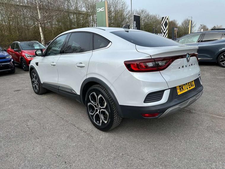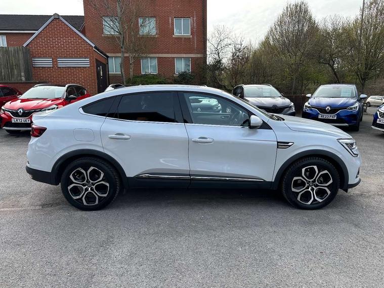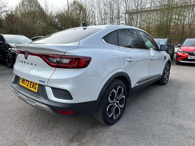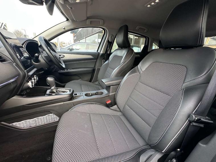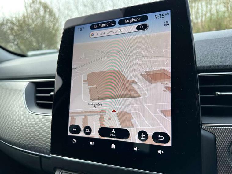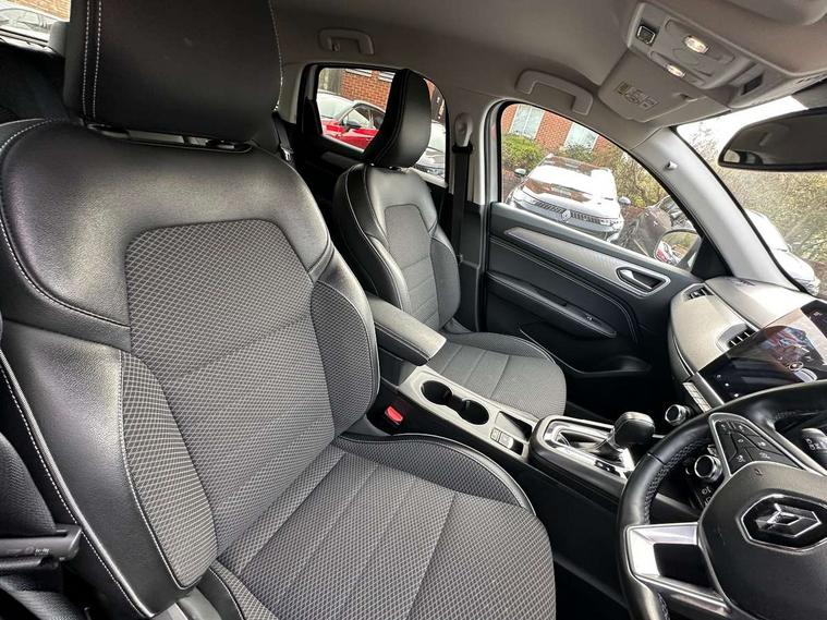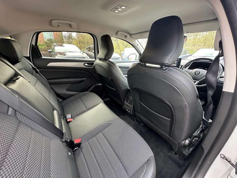 7" TFT Driver information display, Blind spot warning, Bluetooth system, EASY LINK 9.3" portrait touchscreen with navigation, Google search and traffic information, eCall emergency call system, Eco mode, EV button to activate pure mode, Front and rear parking sensors, Gear change indicator, Lane departure warning, Lane keep assist, Multi-sense - 3 driving modes and 8 ambient lighting, Rear cross traffic alert, Rear view camera, Renault automatic emergency assist, Smartphone integration compatible with Apple CarPlay and Android Auto, Traffic sign recognition with over speed prevention, Trip computer, Variable assistance electric power steering, Arkamys classic sound system with 6 speakers, DAB radio, USB port, 3rd brake light, Auto dimming rear view mirror, Automatic headlights, Automatic high / low beam, Automatic windscreen wipers with rain sensor, Black side door protection with chrome insert, Body coloured bumpers, C-shaped LED front signature lighting, Chrome decopart on wing (fender molding), Chrome window lower lining, Extra tinted rear windows and tailgate, Front and rear electric windows, Front driver window with one touch facility and anti-pinch function, Front grille with chrome on upper part, Full LED headlights, Grey front and rear skid plates, Heated rear window, Rain sensor, Rear windscreen wiper, Shiny black shark fin antenna, Side mirrors adjustable electrically, electrically foldable, with defrosting and temperature sensor, automatically foldable at vehicle closure, 3 seat bench in 2nd row, 60:40 split and fixed base rear seats, Automatic climate control with combined filter, humidity sensor and AQS, Central console with storage, Front and rear head restraints, Height and reach adjustable steering wheel, ISOFIX child seat fixing points on rear outermost seats, Leather steering wheel, LED front and rear roof lights, Rear air vents, Single front passenger seat, 3x3 point rear seat belts, ABS+EBA, Active emergency braking system, B Brake Mode - One pedal driving with increased regenerative braking, Distance warning alert, Driver airbag, Driver and passenger front and side airbag deactivation, Driver and passenger side airbags, Driver height adjustable seat belt, Electronic parking brake with auto hold, ESC (Electronic Stability Control), Front and rear no seatbelt warning sound, Front curtain airbags, Front head airbags, Hill start assist, Passenger airbag, Tyre pressure warning light, Anti drill door locks and locking fuel cap, Central door locking, Deadlocking system, Hands free keycard with Keyless access and start, RAID (Renault Anti-Intruder Device) automatic door locking, Rear side wing door and window child locking function (front driver door control panel), Superlocking, Thatcham alarm, 18" Pasadena diamond cut alloy wheels with grey inserts,