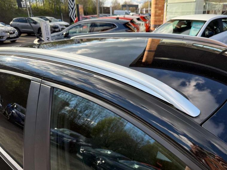 4.2" TFT Driver information display, Cruise control + speed limiter, eCall emergency call system, Eco mode, Gear change indicator, Lane departure warning system, Lane keep assist, Renault automatic emergency assist, Traffic sign recognition, Trip computer, Variable assistance power steering, EasyLink Nav 7" touchscreen, 4x20W amp, FM DAB, sound auditorium, 2xUSB, 1xJack, Bluetooth, smartphone integration plus, Apple carplay/Android auto, Automatic front wipers with rain sensors, Automatic headlights, Body colour door handles, Body coloured bumpers, Body coloured door mirrors, Electric adjustable/heated/folding door mirrors, Electric front windows + one touch + anti-pinch, Electric rear windows, Extra tinted glass in rear windows and tailgate, Full LED front and rear headlamps integrating daytime running lights at the front and rear, Gloss black side door protection with chrome effect, LED front fog lights, Rear fog lights, Rear wiper, Roof bars, Variable speed on front windscreen wipers, 12V Accessory socket, 3 rear headrests, 5.2L front glovebox, 60/40 split folding rear seat bench, Automatic climate control with one touch demist function, Centre console storage tray, Cloth upholstery, Front head restraints, Heating system with pollen filter, Height adjustable driver's seat, Height/reach adjust steering wheel, ISOFIX child seat fixing points on rear outermost seats, Middle console with armrest and storage, Rear air vents, Synthetic leather steering wheel, 3 rear seatbelts, ABS+EBA, AEBS, Distance warning alert, Driver and front passenger, side, head and curtain airbags, Driver height adjustable seat belt, Electric parking brake, Electronic stability control, Front and rear no seatbelt warning sound, Front dash warning indicator in case of heavy braking, Front driver and passenger side airbag deactivation, Hill start assist, Rear door and window child locking function for rear door, Tyre pressure warning light, Anti drill door locks and locking fuel cap, Deadlocking system, Hands free keycard with push button and start/stop function, RAID (Renault Anti-Intruder Device) automatic door locking, Remote central locking with thatcham approved immobiliser, Black soft touch dashboard with black gloss air vent surrounds,
