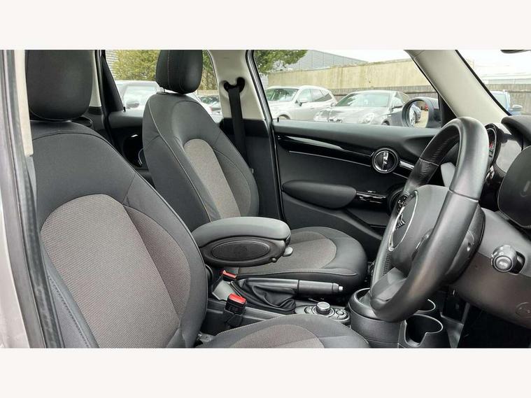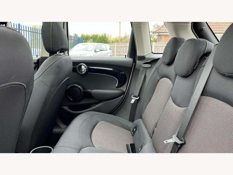Apple CarPlay, Automatic start/stop function with brake energy recuperation, Compatible mobile phone bluetooth with audio streaming, Cruise control with brake assist, Electro-mechanical speed dependant steering assistance, Flexible car sharing preparation, Instrument cluster, Mini E-call, MINI TeleServices, On board computer, Service interval indicator, Double Vanos system, Fully variable valve control, Gear change indicator display, High precision injection, Performance Control, Steptronic transmission with double clutch, 8.8" touchscreen with LED ring, FM tuner and DAB digital radio, 3rd brake light, Automatic headlight activation switch, Body colour fuel filler cap, Chrome border high gloss black slats radiator grille, Dynamic brake lights, Electric front+rear windows, Exhaust tailpipe on left with chrome finisher, Heated rear window, Heated windscreen washer jets, LED headlight with closed ring and daytime driving lights, Metal door sill strips with MINI imprint, Model logo Cooper on right of tailgate, Rain sensor window wipers, Rear fog lights, Rear LED lights with union jack design, Rear side wing doors, Rear window wiper, Side scuttle panel with integrated indicator, Sun/heat protection glass, White indicator lenses, 12V Accessory socket in centre console, 3 seat bench in 2nd row, 4 lashing eyes in luggage compartment, 60/40 split folding rear seat, Ambient lighting, Carbon black colour line - Knee roll and door armrest, Chrome interior highlights, Cupholders, Front and rear head restraints, Front and rear isofix with front passenger airbag deactivation, Front and rear velour floor mats, Glove compartment, Height and length steering column adjustment, Interior lighting with 12 different colours across the dashboard, underneath door bezel with illuminated laser-engraved design on central display, Leatherette gearshift lever and handbrake gaiters, LED reading lights, vanity mirror lights, front foot well light and spotlight on front seats, Manual air conditioning, Mechanical seat adjustment - forward/back & backrest for front seats and driver seat height adjust, Multifunction steering wheel, Satellite grey headlining including grab handles and clothes hooks, Single front passenger seat, Sport leather steering wheel with speed limiter and audio/communication controls, Storage compartments in doors, Sunvisors with vanity mirrors, 3 point seatbelts on all five seats, 6 Airbags - front, side, head and seat belt tensioners, Anti-lock braking system (ABS), Child locks on rear doors, DSC - Dynamic Stability Control, Front and rear disc brakes, Hill start assist, Single tone fanfare horn, Tyre pressure monitoring system, Alarm system with tilt sensor, monitoring doors, bonnet interior and tailgate, Electronic vehicle immobiliser, Start/stop toggle with keyless go, Piano black interior trim, Tool kit, Tyre repair kit,