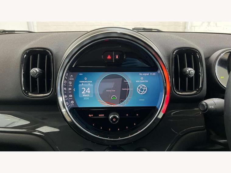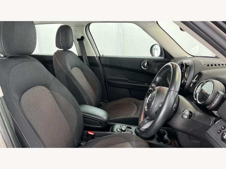 Active Guard incl speed limiting and lane departure functions with auto steering, and front collision warning with brake intervention, Automatic start/stop function with brake energy recuperation, Compatible mobile phone bluetooth with audio streaming, Cruise control with brake assist, Electro-mechanical speed dependant steering assistance, Instrument cluster, Mini E-call, On board computer, Rear parking distance control, 51 Litre fuel tank, Double Vanos system, Fully variable valve control, High precision injection, Performance Control, Steptronic transmission with double clutch, FM tuner and DAB digital radio, 3rd brake light, Body colour fuel filler cap, Day time driving lights, Door sill strips, Dynamic brake lights, Electric windows, Heated rear window, Heated windscreen washer jets, LED fog lights, LED Headlights, Left exhaust tailpipe with chrome finisher, Model logo, Model logo on Tailgate, Radiator grille, Rain sensor with auto headlights, Rear fog lights, Rear side wing doors, Rear window wiper, Side scuttle panel with integrated indicator, Split rear doors, Sun/heat protection glass, White indicator lenses, 12V socket in centre console, 3 seat bench in 2nd row, 3 spoke sport leather steering wheel + limiter function and audio controls, 360L luggage compartment capacity, 4 lashing eyes in luggage compartment, 40:20:40 split folding rear seats, Chrome interior highlights, Colour line - Carbon black, Cupholders, English handbook, Floor mats, Front headrests, Glove compartment, Headliner with grab handles and clothes hooks, Height and length steering column adjustment, Interior lighting with 12 basic colours selectable via toggle switch in roof, Isofix rear child seat preparation, Leather gearshift lever and handbrake gaiters, LED reading lights, vanity mirror lights, front foot well light and spotlight on front seats, Manual air conditioning, Mechanical seat adjustment, driver seat height adjust, forward/back and front seats backrest, Multifunction steering wheel, Passenger seat height adjuster, Rear headrests, Single front passenger seat, Storage compartments in doors, Sunvisors with vanity mirrors, Excitement pack - Countryman, Navigation pack - Countryman, 2 tone horn, 3 point seatbelts on all seats, 6 Airbags - front, side, head and seat belt tensioners, Anti-lock braking system (ABS), DSC - Dynamic Stability Control, Electronic handbrake, Front and rear disc brakes, Hill start assist, Manual rear child locks, Tyre pressure monitoring system, Alarm system with tilt sensor, monitoring doors, bonnet interior and tailgate, Auto drive away locking, Deadlocking function, Electronic vehicle immobiliser, Locking wheel bolts, Start/stop toggle with keyless go, Tool kit,