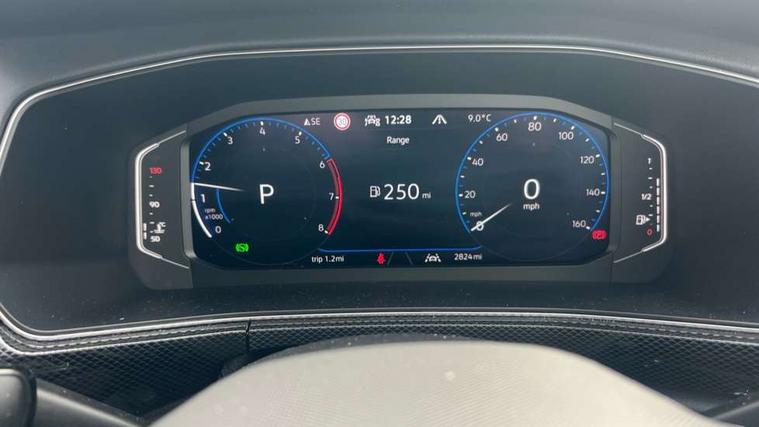 'Lights On' Reminder warning buzzer, 10.25" Digital cockpit pro, Adaptive cruise control including front assist, forward collision warning, autonomous emergency braking, speed limiter, Advanced driver attention and drowsiness monitor, Blind spot monitoring, Car information display, Driver profile selection including ECO function, Dynamic road sign display, E-Sim card for online connectivity, eCall emergency call system, Front and rear parking sensors, Low washer fluid warning light, Multifunction computer with visual gear change recommendation for fuel consumption, Multifunction front facing camera for distance control, Operating permit alteration, Power assisted steering, Preparation for navigation system with media and internet package, Preparation for We connect and We connect plus, Semi-automated driving assistance, travel assist including lane keeping system Lane Assist and emergency assisst, Speedo, rev counter, electronic odometer, trip, service interval display, exterior temperature and fuel gauge, Warning sound and light for doors and tailgate open, Warning sound and light for front seatbelts unfastened, Wireless Car net app connect with Apple CarPlay, combined functionality of Apple CarPlay/Android Auto and MirrorLink, Misfuel prevention device, Start-stop system with battery regeneration (recuperation - energy recovery during braking), 2 USB C ports in front, 2 USB charging sockets on the centre console in the rear charging capacity upto 45W, Diversity antenna for FM reception, Music playback - MP3, WMA and AAC files, Radio, Automatic dimming interior rear view mirror, Automatic hazard lights activation under emergency braking, Automatic headlight control with LED separate daytime running light and coming home and leaving home feature, Black roof rails, Body colour door handles, Body colour door mirrors, Body coloured bumpers, Dynamic headlight range control with self adjusting whilst driving, Electric folding door mirror, adjustable, heated with front passenger exterior mirror lowering function, Exterior mirrors convex on the left and aspherical on the right, Front and rear electric windows, Front door sill protectors with R-Line logo, Galvanised body, Heat insulating and laminated safety glass windshield, Heat insulating darkened glass in side and rear windows, High Beam Assist, automatic sensing for switching between dipped and main beam, LED rear combination lights, LED third brake light, Lower door sills and door pillars in black, Rain sensor, Rear fog light on one side, reversing light on both sides, Rear side wing doors, Rear tinted glass 65% approx light absorbing from B pillar backwards, Rear window aerial, Rear window wiper with intermittent control, Reflectors in all doors, Scuff plates, Tailgate with integrated roof spoiler, 12V Accessory socket in centre console, 2 Front and rear reading lights incorporating LED technology, 3 rear head restraints, 3 seat bench in 2nd row, 60/40 split folding rear seat backrest, Air care climatronic 2 zone air conditioning system, Ambient lighting, Brushed stainless steel pedals, Chrome plated radiator grille inserts, air vent surrounds and light switch surrounds, Cloth upholstery, Comfort front sport seats, Door and side trim panel, Drawer under drivers seat, Driver and front passenger sunvisor with vanity mirror, Dust and pollen filter, Front + rear carpet mats, Front centre armrest with storage compartment, Front footwell illumination, Front seat back storage pockets, Glove compartment door with light, Heated front seats, Heating and fresh air system with 4 stage blower, Height/reach adjust steering wheel, Instrument lighting white adjustable panel illumination, Interior light with switch off delay and dimmer, Isofix anchors for child seats on outer rear seats and front passenger seats, Leather gearshift handle, Leather wrapped multifunction steering wheel, Luggage compartment floor, Luggage compartment lighting, Manual front seats with height adjustment, Padded dashboard, Removable luggage compartment cover, Single front passenger seat, Storage compartment in drivers and front passengers door, Titanium black roof lining, Unsplit sliding rear seat bench, 3 point outer rear seat belts with ECE label, 3 Point seatbelt for centre rear seat, Anti-lock Braking System (ABS) with Hydraulic Brake Assist (HBA), Automatic post collision braking system, Disc brakes in front, Disc brakes in rear, Driver and front passenger safety-optimised head restraints, Drivers and Front Passengers airbags with front passengers airbag deactivation switch, ESC with EDL and ASR (traction control), Extended and predictive pedestrian/cyclist protection, Front and rear passenger curtain airbag system including front side airbags, Height adjustable front 3 point seatbelts + pretensioners, Hill start assist, Pre crash preventive occupant protection, Proactive passenger protection system in combination with front assist, Rear door child safety locks, Rigid safety cell with front and rear crumple zones, Single tone horn, Tyre pressure loss indicator, Volkswagen roadside assistance, Alarm with interior protection, Anti theft alarm system, Electronic engine immobiliser, Remote tailgate unlocking using key fob, Titanium Black Decorative inserts - R Line, Low rolling resistance tyres,