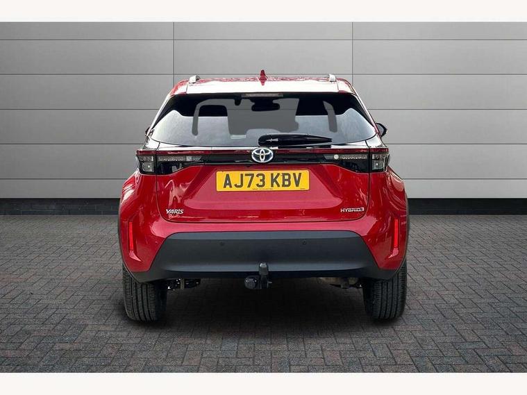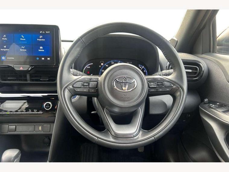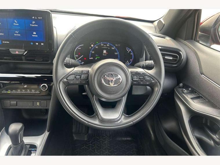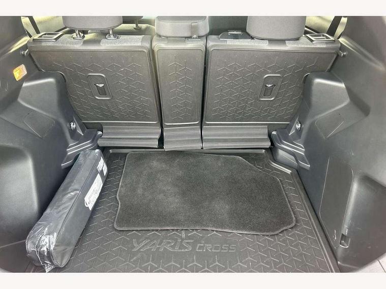 7" Multi information display screen, 8" Toyota touch 2 multimedia system with Smartphone integration with Apple CarPlay and Android auto, Adjustable speed limiter, Bluetooth connectivity, Driver attention alert system, eCall emergency system, Electric power steering, Full range intelligent adaptive cruise control, Hybrid system indicator, Key reminder warning, Lane trace assist, Multimedia, audio, telephone and voice recognition switches on steering wheel, My T Connected services, Pre-collision system enhanced with emergency steering assist, Reversing camera, Road sign assist - RSA, Steering assisted vehicle stability control, 6 speakers, DAB Digital radio, USB connection, 3rd brake light, Acoustic windscreen glass, Aluminium roof rails, Anti-jam protection on power windows, Auto high beam [AHB] with on/off switch, Automatic headlights, Black lower front grille, Black Shark-fin antenna, Black upper front grille, Black wheel arch mouldings, Body colour door handles, Body colour front bumper, Body colour rear bumper, Electric adjustable heated door mirrors, Follow me home headlights, Front and rear electric windows with auto up/down function, Front intermittent wipers, Headlight cut off reminder, Indicators integrated on door mirrors, Intermittent rear wiper, LED daytime running lights guide, LED front fog lights, LED front light guide, LED Indicators, LED projector headlights, LED rear light guide, Manual headlight levelling, Manually retractable door mirrors, Noise reduction layer on windscreen, Privacy glass, Rain sensor, Rear LED lights with sequential indicators, Rear side wing doors, Rear spoiler, Rear window defogger, 12v power outlet - front, 2x Rear coat hooks, 3 seat bench in 2nd row, 3 spoke leather steering wheel, 40:20:40 split folding rear bench seat, Adjustable speed limiter switch on steering wheel, Auto air conditioning, Black roof lining, Boot light, Central armrest, Centre console in light blue ambent lighting, Driver and front passenger personal lights, Fabric door trim, Fabric upholstery, Footwell in light blue ambient lighting, Front console box, Front cup holders, Front head restraints, Glovebox, Height adjustable driver's seat, Height adjustable front passenger seat, Hooks for luggage holding belts, ISOFIX child restraint system, Lane departure alert switch on steering control, Leather gearshift, Light blue ambient lighting on front doors, Manual telescopic and tilting steering wheel, Mirror on driver and passenger sun visor, Pollen air filter, Rear cup holders, Rear head restraints, Single front passenger seat, Soft tonneau cover, 3x3 point rear seat belts, ABS+EBD+Brake assist, Driver and passenger central airbags, Driver and passenger front airbags, Driver and passenger side airbags, Electronic parking brake, Emergency brake light system (EBS), Front seat belt reminder, Hill start assist control (HAC), Passenger airbag on/off switch, Pre-collision system with pedestrian and cyclist detection, Rear door child safety locks, Rear passenger side airbags, Rear seat belt reminder, Traction control, Tyre pressure warning system, Immobiliser, Intrusion alarm, Keyless smart entry with push button start, Power door locks, Power passenger window lock, Remote door lock, Tyre repair kit,