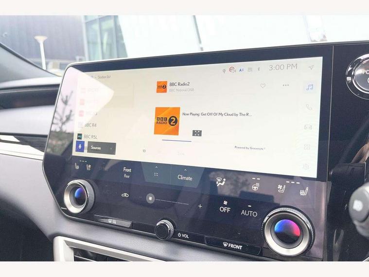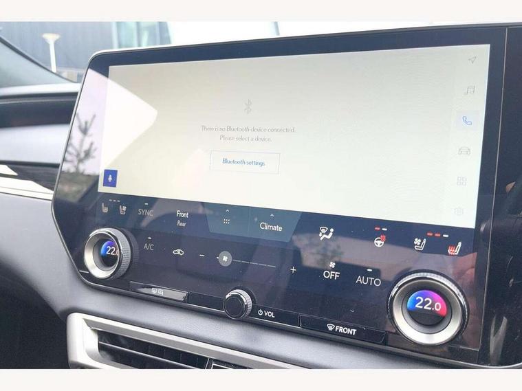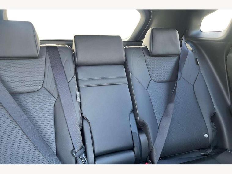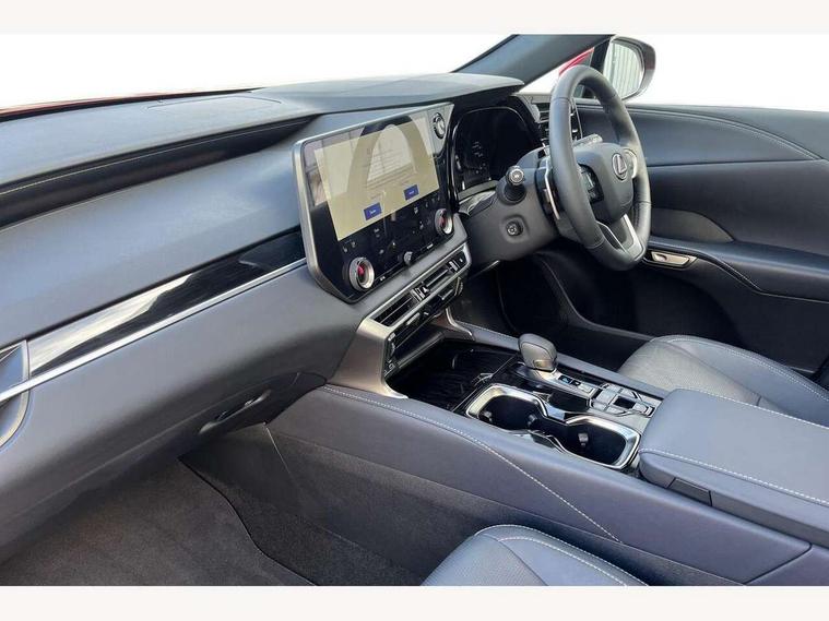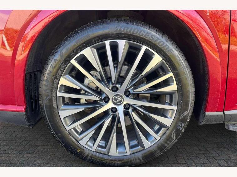 360 degree panoramic view monitor, Bluetooth mobile phone connectivity, BSM - Blind spot monitoring, Drive mode selector, Driver monitoring system, E-call, Head up Display, Intelligent clearance sonar, Lexus link connected services including over the air updates, MM21 Lexus link pro - 14" HD touchscreen with embedded and cloud based navigation, voice assistant, connected services, over the air and always online, Push button starter, Rear cross traffic alert, Speed sensitive electric power assisted steering, Ultrasonic parking sensors, Wireless Apple CarPlay and wired Android Auto, Wireless Smartphone charger, 3 pin to Type 2 10A charging cable, 6.6 kW onboard charger, E-Four Automatic transmission, Type 2 AC charging, Type 2 mode 3 32A charging cable, Vehicle Stability Control (VSC), 12 speakers audio, 5 USB ports (3 front USB C and 2 rear USB C), DAB Digital radio, 3 projector bi-beam LED headlight with auto high beam, Auto dimming rear view mirror, Auto headlights, Front and rear one touch power windows with voice command, Front and rear silver window frame mouldings, Glove and towel set, Headlight washers, Heated, auto-folding door mirrors, auto dimming with rerverse tilt, turn indicators and panoramic view sensors, L-shaped rear light bar, LED brake lights and rear lights with emergency brake signal, LED cornering headlights, LED daytime running lights, LED front and rear fog lights, LED Indicators, Power back door with kick sensor, Privacy UV glass, rear doors and tailgate, Rain sensor windscreen wipers, Rear side wing doors, Rear wash/wipe, Roof rails, Variable front intermittent wipers, 12V accessory port centre console and luggage compartment, 2 cup holders in centre console, 2 way electric lumbar support for driver and front passenger, 2 x Sunvisors with vanity mirror and lamp, 3 rear headrests, 3 seat bench in 2nd row, 40:20:40 split folding rear seats, 64 colour LED ambient interior illumination with 14 pre-set themed colour tones, 8 way electrically adjustable front seats, Charge cable bag, Driver seat memory function, Easy access driver seat, Easy access steering wheel, Front aluminium scuff plates, Front headrests, Front tray in front of centre console, Glovebox, Heated and ventilated front seats, Heated steering wheel, Leather steering wheel, Lever type shft control, Manually adjustable rear seats, Power adjustable steering wheel, Rear resin scuff plates, Single front passenger seat, Smooth leather upholstery, Textile carpet mats, Three zone climate control air conditioning system, Two way opening centre armrest with storage, 2 x Isofix child rear seat restraints, 3 point ELR front and rear seatbelts with pretensioners, ABS, Curtain shield airbags (front and rear), Driver and front passenger 2 stage airbag, Driver/front passenger side airbags, Drivers knee airbag, E-Latch with safe exit assist, EBD + Brake Assist, Electronic parking brake, Electronically controlled braking, Extended lexus safety system+ 3 - lane change assist, front cross traffic assist, Front and rear left/right force limiters and tension reducers, Front and rear left/right seatbelt reminders, Front centre airbag, Hill assist control, Lexus safety system+ 3 - dynamic radar cruise control, pre collision system day and night, lane tracing assist, road sign, Manual child lock in rear doors, Passenger airbag cut-off device, Traction control, Tyre pressure warning, 2 x remote key fobs, Customisable auto door lock, Locking wheel nuts, Motion sensor key, Smart keyless entry, Thatcham category 1 alarm + immobiliser, VIN etching, Black Inlay, 21" Alloy wheels,