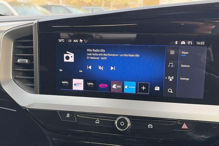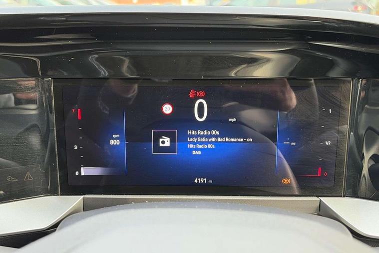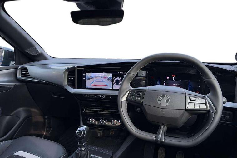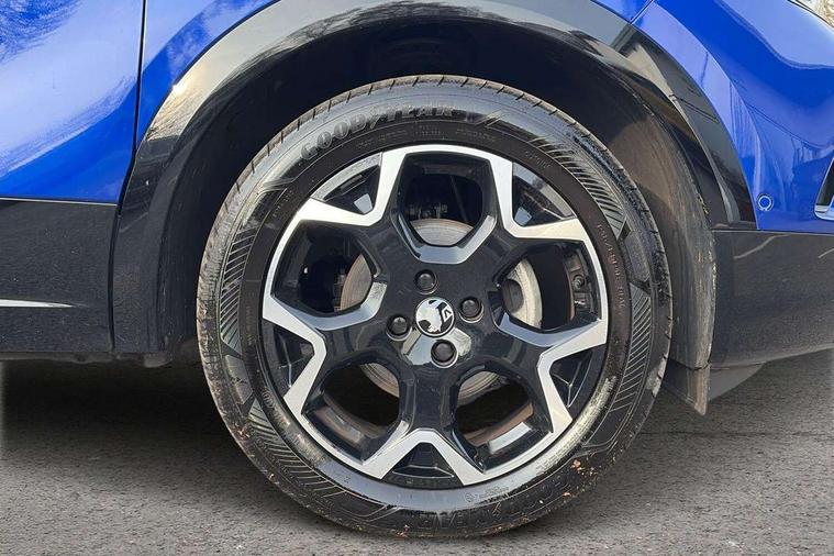 10" digital instrument cluster, Active drive assist, Adaptive cruise control, Digital instrumentation with digital speedometer, rev counter, fuel and water temperature gauge, Driver attention alert, Driver drowsiness alert system, Driver information display with multi function trip computer, audio info, digital clock and outside air temperature with ice warning function, Front and rear parking distance sensors, Lane keep assist system (LAS) with Lane departure warning system (LDWS), Lights on audible warning, Panoramic rear view camera, Power assisted speed sensitive steering, RDS with traffic programme, Side blind spot alert and flank guard, Speech recognition, Start/stop system, Vauxhall connect with e-Call, WiFi connectivity, Wireless phone projection with Apple CarPlay and Android Auto, Sports chassis, 2 rear USB connection, 6 speakers, AM/FM stereo radio with 36 station presets, DAB Digital radio, Front USB connection, Mobile phone portal - bluetooth connect, vehicle microphone, handsfree calls, SMS read out and reply, phone book access, Multimedia pure panel navigation system with 10" colour touchscreen and 15W wireless charger, Steering wheel mounted controls, Adaptive brake lights, Automatic headlamp levelling, Automatic lighting control with tunnel detection, Black DLO, Black door mirror housings, Black Griffin logo and vizor frame, Black lettering and emblems, Black upper window moulding, Body colour door handles, Body colour front and rear bumpers, Body colour skid plates, Dark tinted rear side windows, Electrically adjustable and heated door mirrors, Electrically foldable door mirrors, Electrically operated front and rear windows with safety auto reverse and one touch up/down facility, Electrochromatic frameless auto dimming rear view mirror, Hazard warning lights, Heated rear window+rear wash/wipe, High gloss black front and rear bumper inserts, High gloss black painted claddings, lower grille and front lateral inserts, High gloss black painted lateral moulding, Integrated black tailgate spoiler, IntelliLux matrix headlights with advanced forward lightning and anti glare beam, LED 3rd brake light, LED daytime running lights, LED side repeat indicators, Rain sensitive windscreen wipers, Rear side wing doors, Reversing light, Shark fin antenna, Solar heat absorbing windscreen and windows, Windscreen and side window demist vents, 12V Accessory socket, 3 seat bench in 2nd row, 4 speed fan with illuminated controls, 4 way electrical driver lumbar adjustment, 6 way adjustable front passenger seat including height adjustment, 60/40 split folding rear seat, Air recirculation system, Ambient lighting, Black headliner, Cabin particulate filter - removes dust, airborne particles and pollen, Chrome effect interior door handles, Door pockets with two litre capacity, Driver and passenger heated seats, Driver and passenger sun visors with vanity mirror, Driver seat massage function, Electronic climate control (ECC), Four adjustable facia vents, Four load restraint lashing eyes, Front centre armrest with storage, Front driver and co-driver side articulated grab handles, Front head restraints, Front map reading lights, Front seat back storage pockets, Fully carpeted load area, Heated steering wheel, Interior courtesy light, Interior tailgate handle, Luggage compartment cover, Luggage compartment lighting, Moveable boot floor, Reach + rake adjustable steering column, Rear Reading Lamps, ReNewKnit fabric/leather upholstery, Single front passenger seat, Three height adjustable rear seat head restraints, Twin gas assisted tailgate struts, 2x Isofix child seat fitting on outer rear seats, 3x3 point rear seat belts, Anti-lock braking system (ABS), Child proof locks on rear doors, Cornering brake control, Deactivation switch for front passenger front and side impact airbags, Drag torque control, Driver and front passenger airbags, front seat side impact airbags, full size curtain airbags, Electronic brake force distribution, Electronic Stability Programme (ESP), Emergency brake assist, Enhanced automatic emergency braking with pedestrian and bicycle detection, Forward brake assist, Forward collision alert at all speed, Hill start assist, Inertia reel lap and diagonal seatbelts for all seats, Manual parking brake, Seatbelt unfastened audible warning and warning light, Straight line stability control, Traction control, Tyre pressure monitoring system, Electronically protected audio equipment, Engine deadlock immobiliser, Freewheeling door locks, Key left in ignition audible warning, Keyless entry and start, Locking wheel nuts, Remote control central locking, Remote control ultrasonic security alarm system, Visible vehicle identification number, Black facia with silver trim insert, Light grey trim inserts on front doors, Vegan door inserts, 18" Black diamond cut alloy wheels,