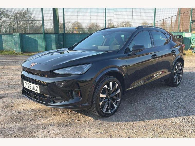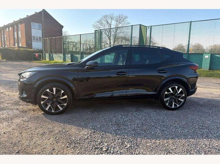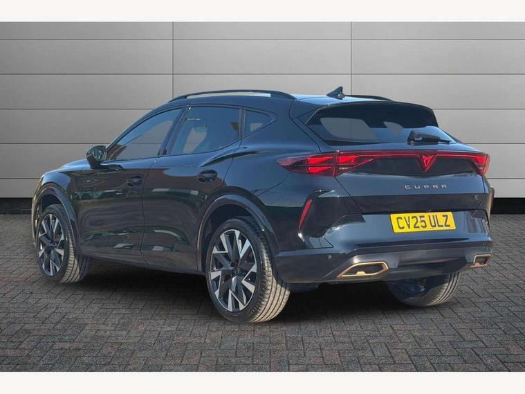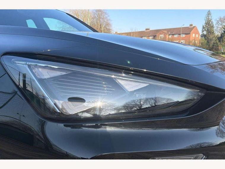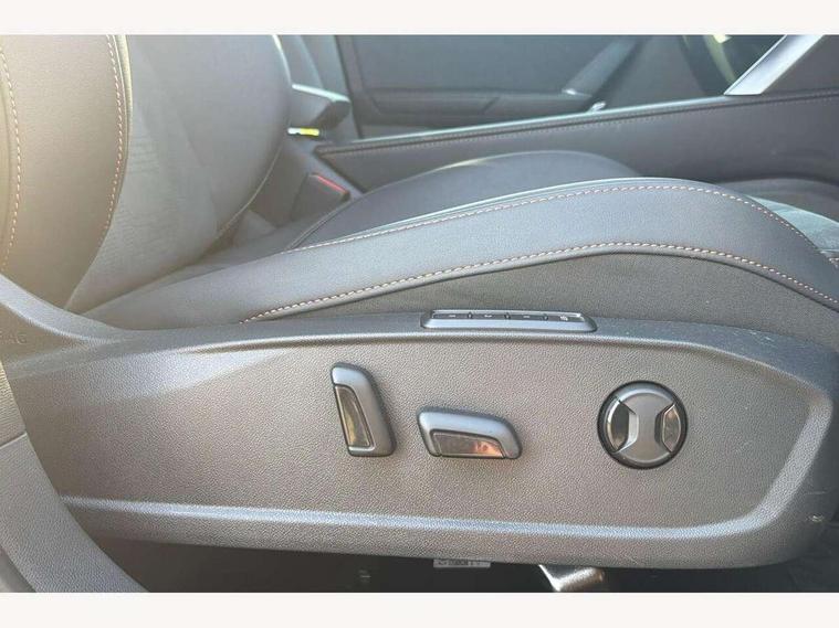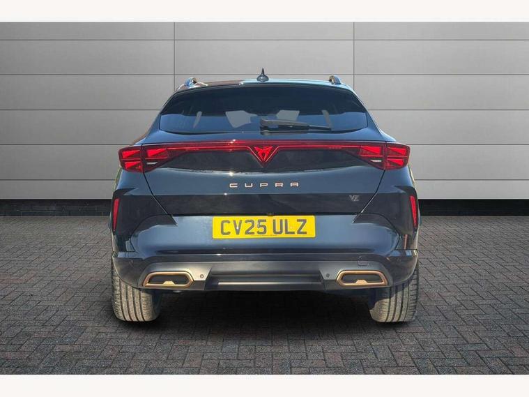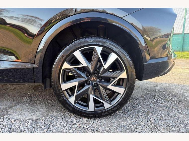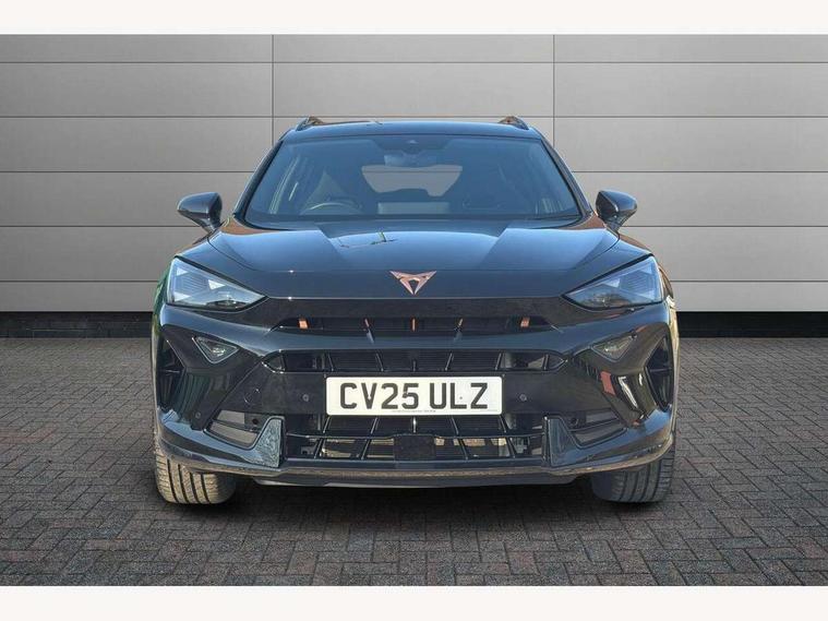 10.25" digital cockpit and configurable dashboard, Adaptive cruise control with follow-to-stop and speed limiter, Advanced driver alert system, Driving profile selection, Dynamic road sign display, Emergency steering support with turn assist, Forward collision warning with automatic braking, Front and rear parking sensors, Full link phone integration, Lane assist, Progressive steering, Rear view camera, RPM, trip computer, outside temp gauge, instrument light brightness, low fuel warning light, lights on reminder, gearshift indicator, Service interval indicator, Start/stop system with regenerative braking, Virtual pedal and electric tailgate, Voice control system, Wired Android Auto, Wireless apple carplay, Wireless phone charger, CUPRA sport suspension, Electronic locking differential and dynamic traction support, 2 front and 2 rear USB type C sockets, Media system with navigation, 12.9" touchscreen display, voice control, DAB, steering wheel mounted controls, Auto dimming rear view mirror, Body colour door handles, Body coloured bumpers, Dark grey wing mirror, Daytime running light with automatic headlight control and coming home feature, Door panel ambient lighting, Dynamic headlight range control, Electric front/rear windows, Electrically adjustable heated and folding door mirrors with memory function, Gloss black roof rails and window surrounds, High beam assist, LED 3rd brake light, LED front fog lamps with cornering function, LED Headlights, LED Taillights with dynamic indicator, Rain sensing wipers, Rear diffuser with black simulated exhaust pipes, Rear fog lights, Rear side wing doors, Rear wash/wipe, Tinted rear windows, Welcome lights (within exterior mirror housing), 12V socket, 2 front and 2 rear reading lights, 3 seat bench in 2nd row, 60/40 split rear bench seat with armrest and mechanical seat release, Black headlining, Black interior roof lining, Cupra sports pedals, Dust/pollen filter, Electrically adjustable driver's seat with memory and lumbar support, Front and rear head restraints, Front centre armrest, Heated front seats, Heated supersports multifunction leather steering wheel with satellite buttons and gear shift paddles, Height/reach adjust steering wheel, Illuminated aluminium doorsteps, Illuminated interior front door sills, Illuminated sunvisor with mirror, Isofix, Leather dashboard, door insert and side trim panel, LED smart wraparound lighting, PVC/Dinamica microfiber upholstery + bucket seats, Satellite steering wheel, Single front passenger seat, Storage pockets on rear of front seats, Three zone climate control with control panel in rear, Variable luggage/load compartment floor, 3 point seatbelts on all rear seats, ABS, Brake control system - ESC and brake booster, Child proof door locks, Driver and front passenger airbags with front passenger airbag de-activation, Electronic parking brake, Front and rear disc brakes, Front side curtain airbags, Hill hold control, Public e-call, Seat belt reminder for front and rear seats, Tyre pressure monitoring system, Anti theft alarm system, KESSY Advanced - Keyless start, keyless entry with SAFELOCK, Locking wheel bolts, Copper and aluminium interior detailing, 19" Sandstorm machined sport black and silver alloy wheels,